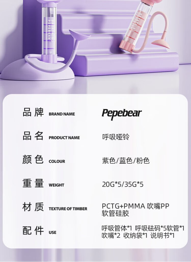 PEPEBEAR Breathing Dumbbell Abdominal Breathing Trainer Vital Capacity Abdominal Muscle Vest Line Pelvic Floor Muscle Facial Core Exercise-Purple