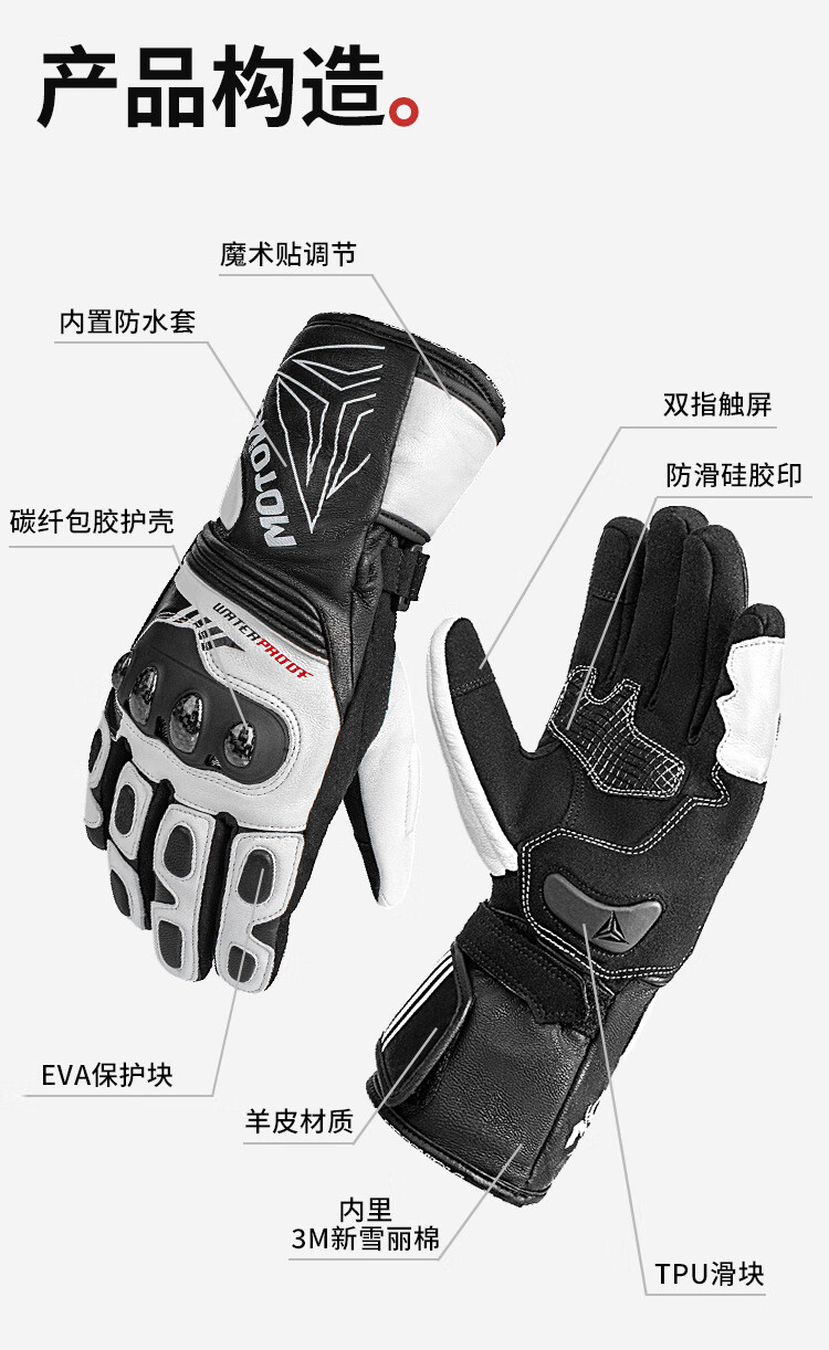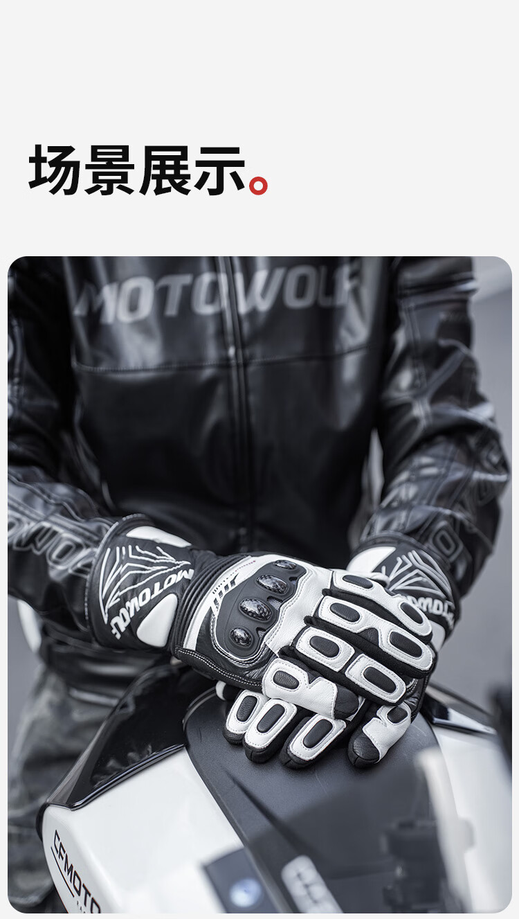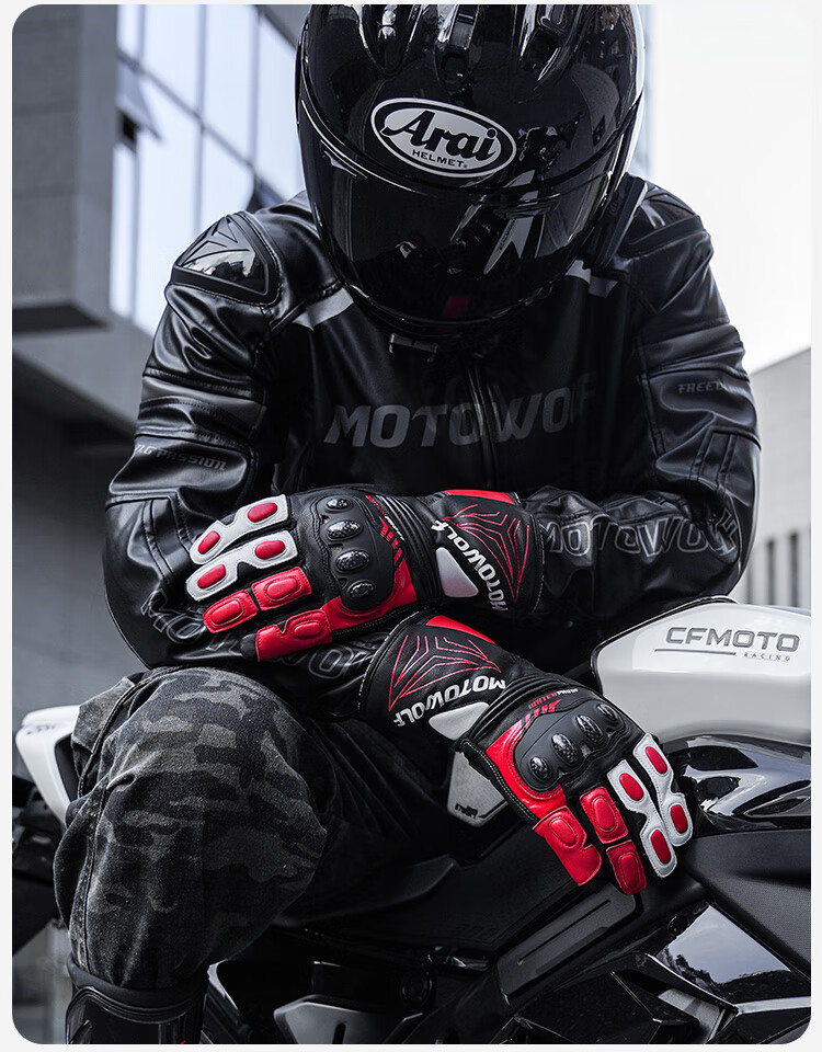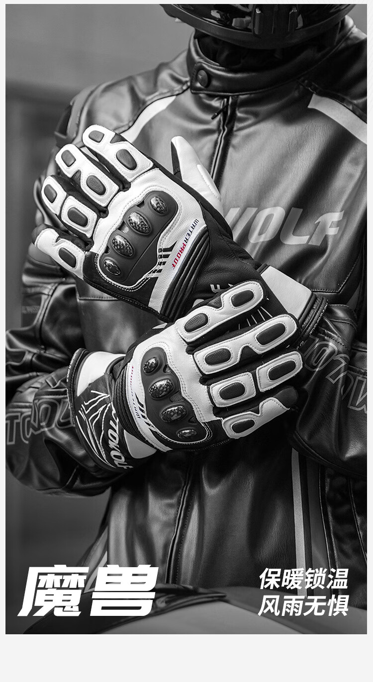 MOTOWOLF motorcycle gloves are warm in winter, thickened and velvet, waterproof, windproof and fall-proof, genuine leather motorcycle riding equipment