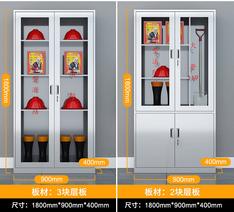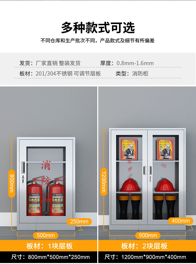 Hanhe stainless steel fire cabinet micro fire station fire equipment cabinet fire tools 201 stainless steel 1800*900*400 Tongbo