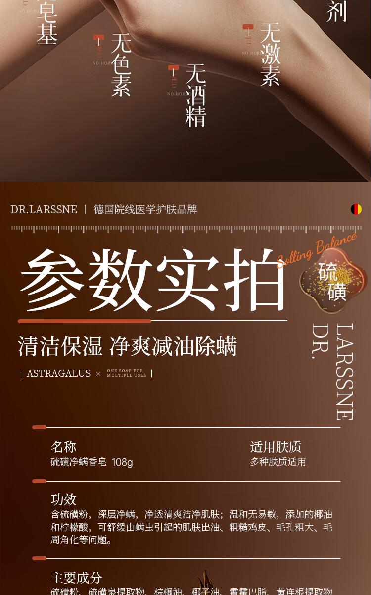 DR.LARSSNE Dr. Langson Sulfur Soap Mite Remover Soap Back Acne Soap Soap Wash Hair Wash Face Bath Three-in-One *3 Box