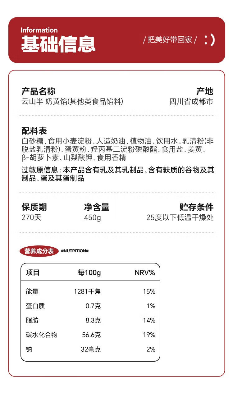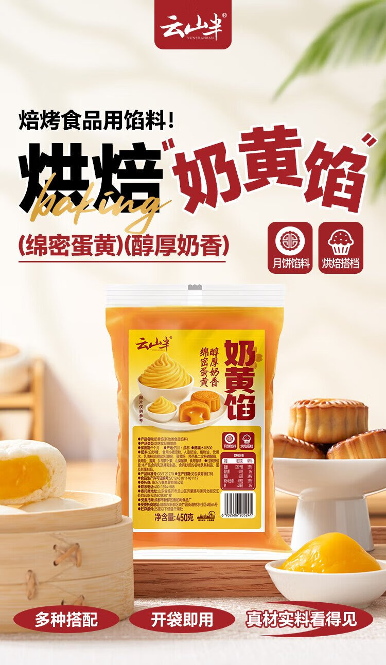 Yunshan Half Golden Sand Custard Filling 450g Mid-Autumn Festival mooncake filling bread egg yolk crisp custard bun filling baking ingredients