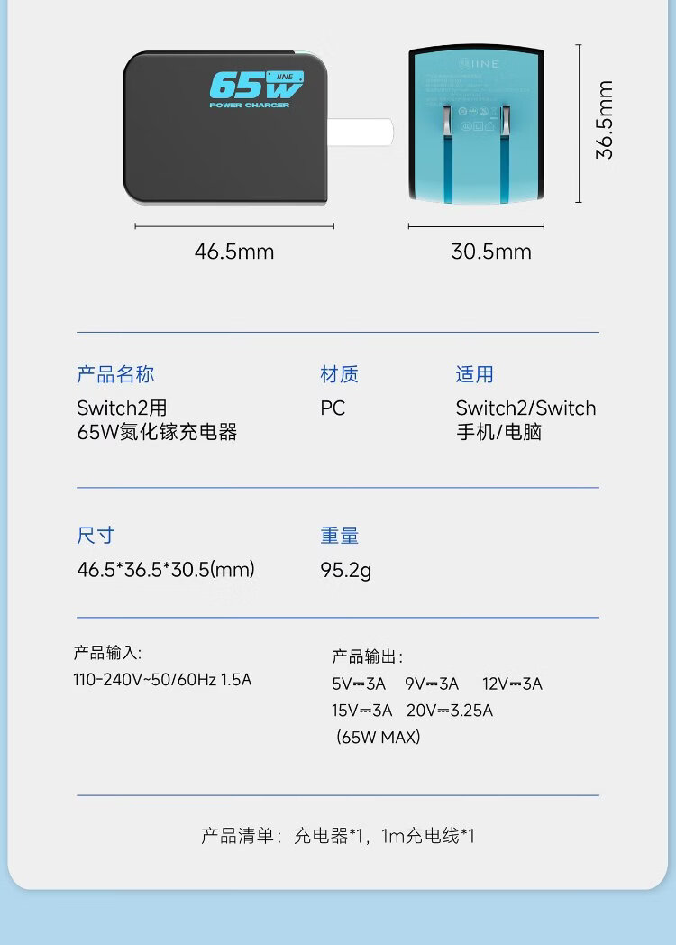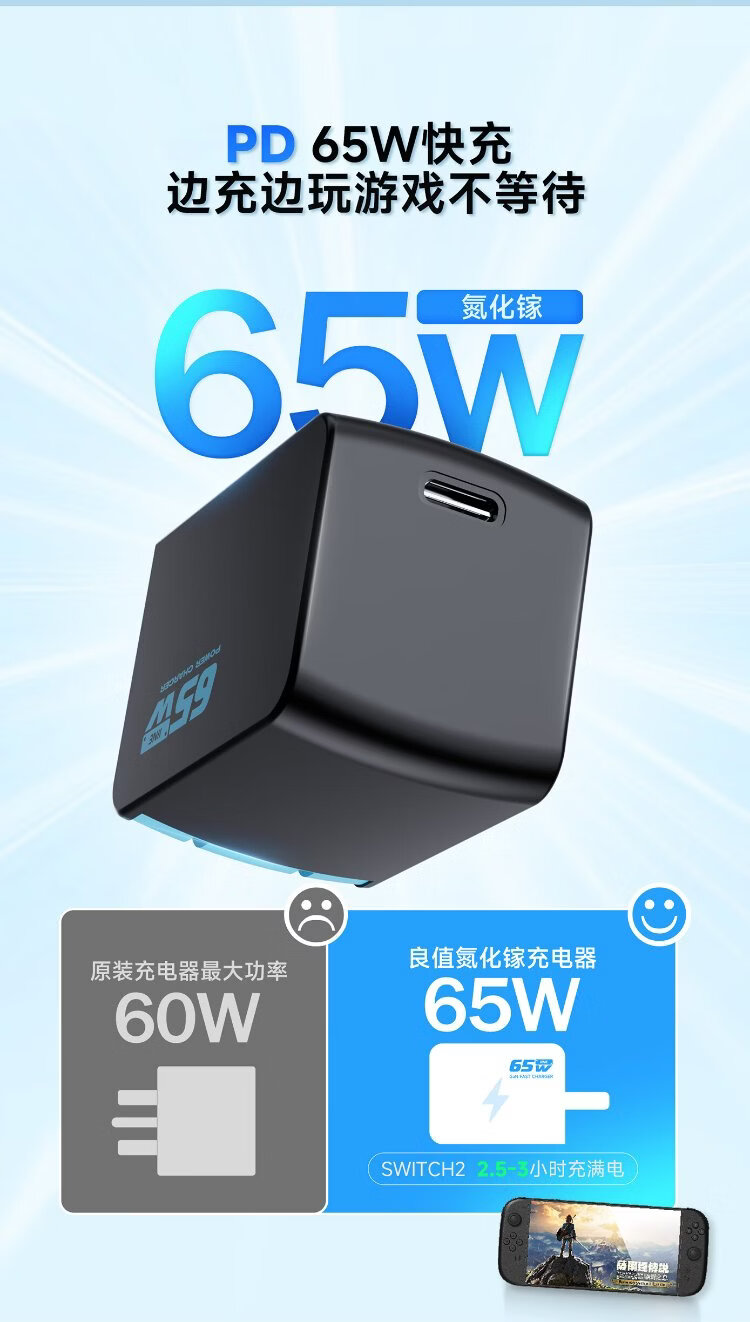 Good value (IINE) suitable for Nintendo Switch2 charger base power adapter Japan and Hong Kong international version universal typec charging head 65WPD fast charging NS2 accessories
