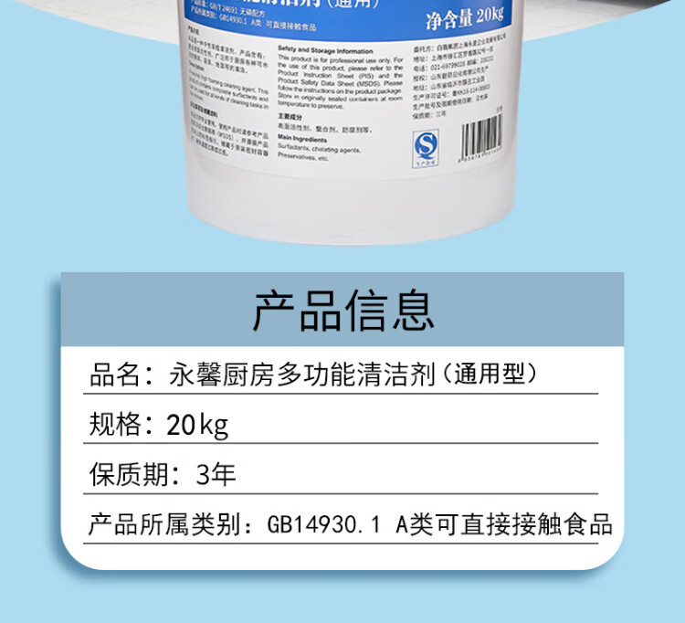 Yongxin White Cat Group Kitchen Multi-Function Cleaner (Universal Type) Dishwashing Liquid Large Bucket 20kg