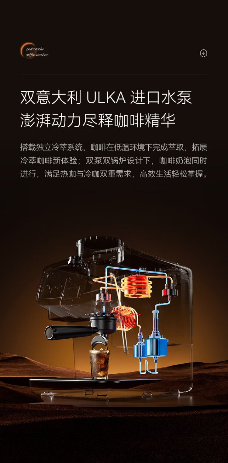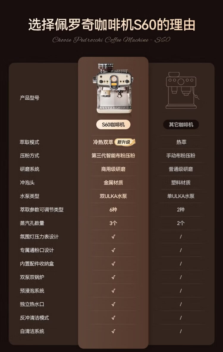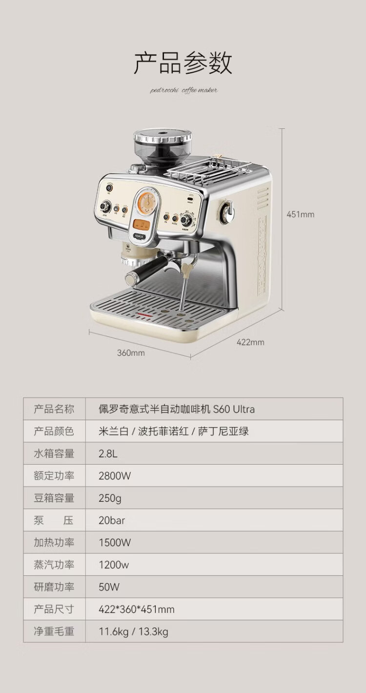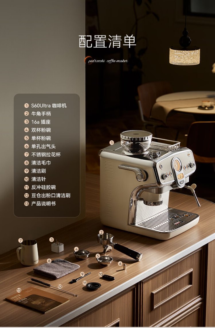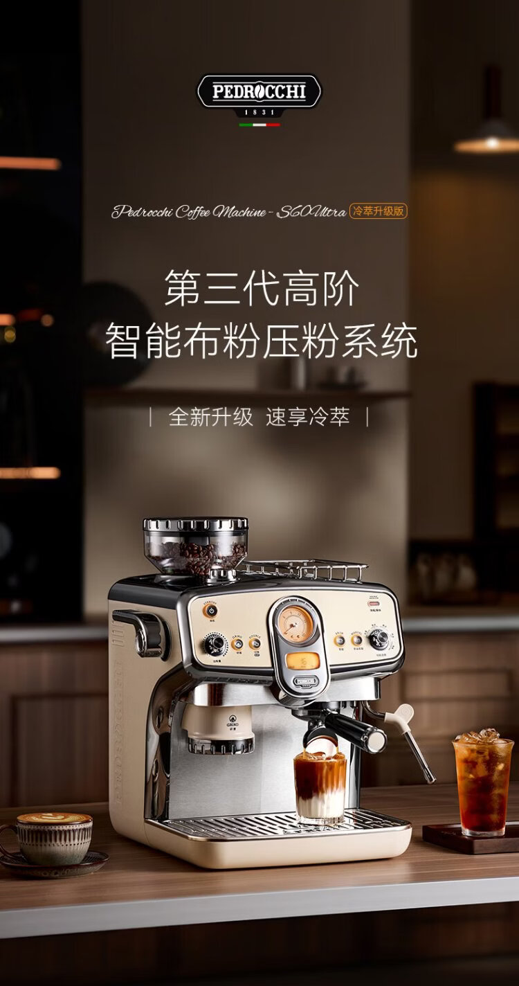 Pedrocchi coffee machine Italian semi-automatic grinder all-in-one small American-style home and business dual-use smart cloth pressed powder S60 Ultra cold brew version