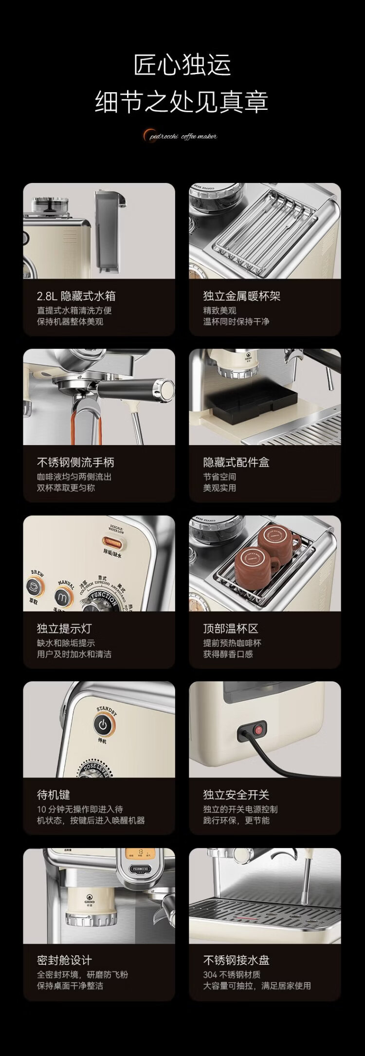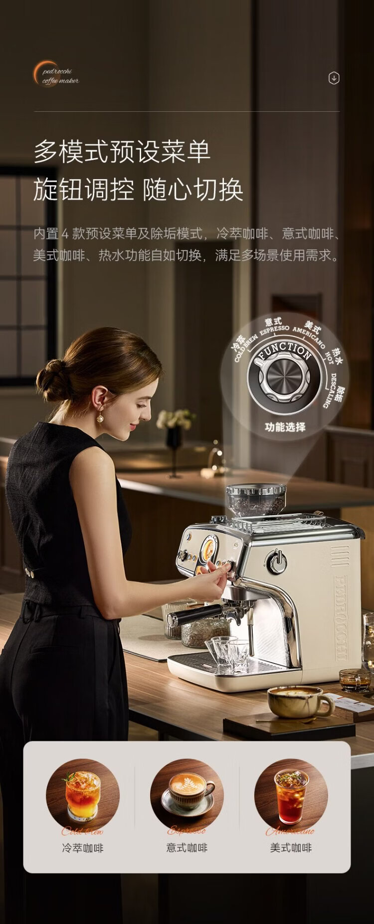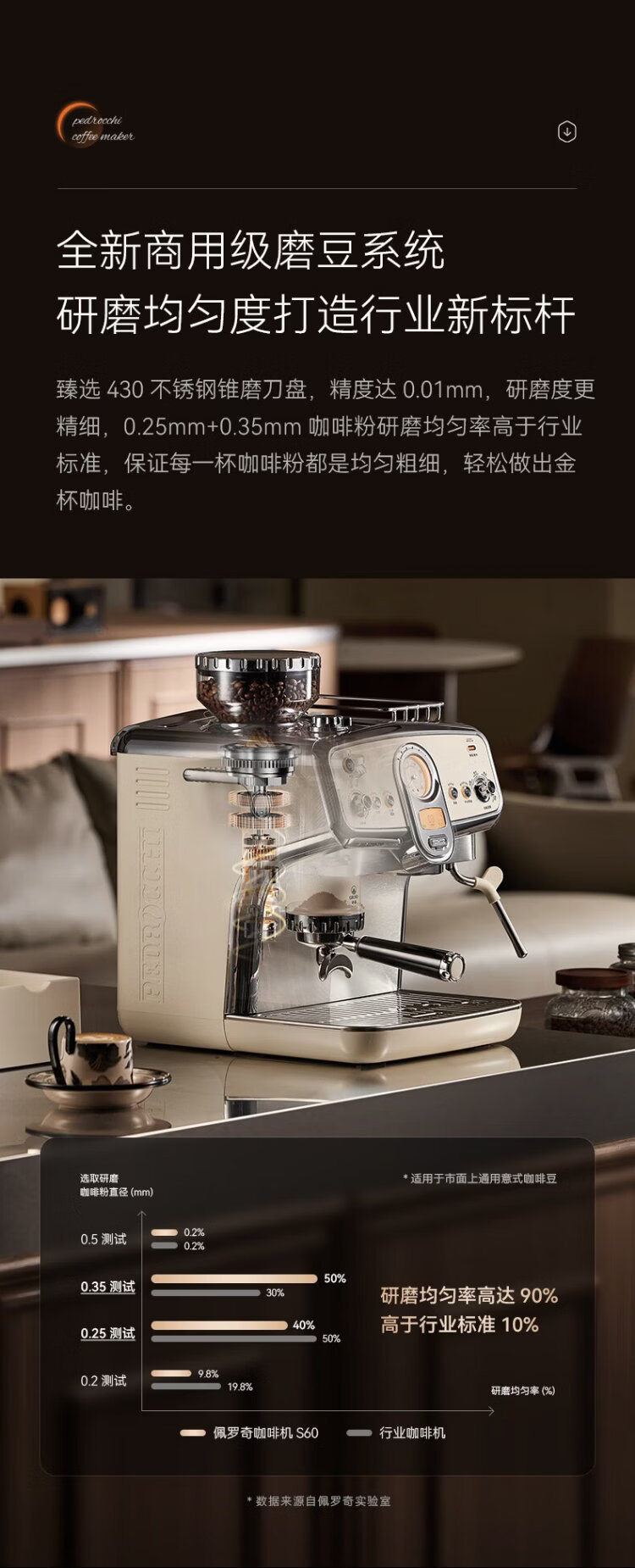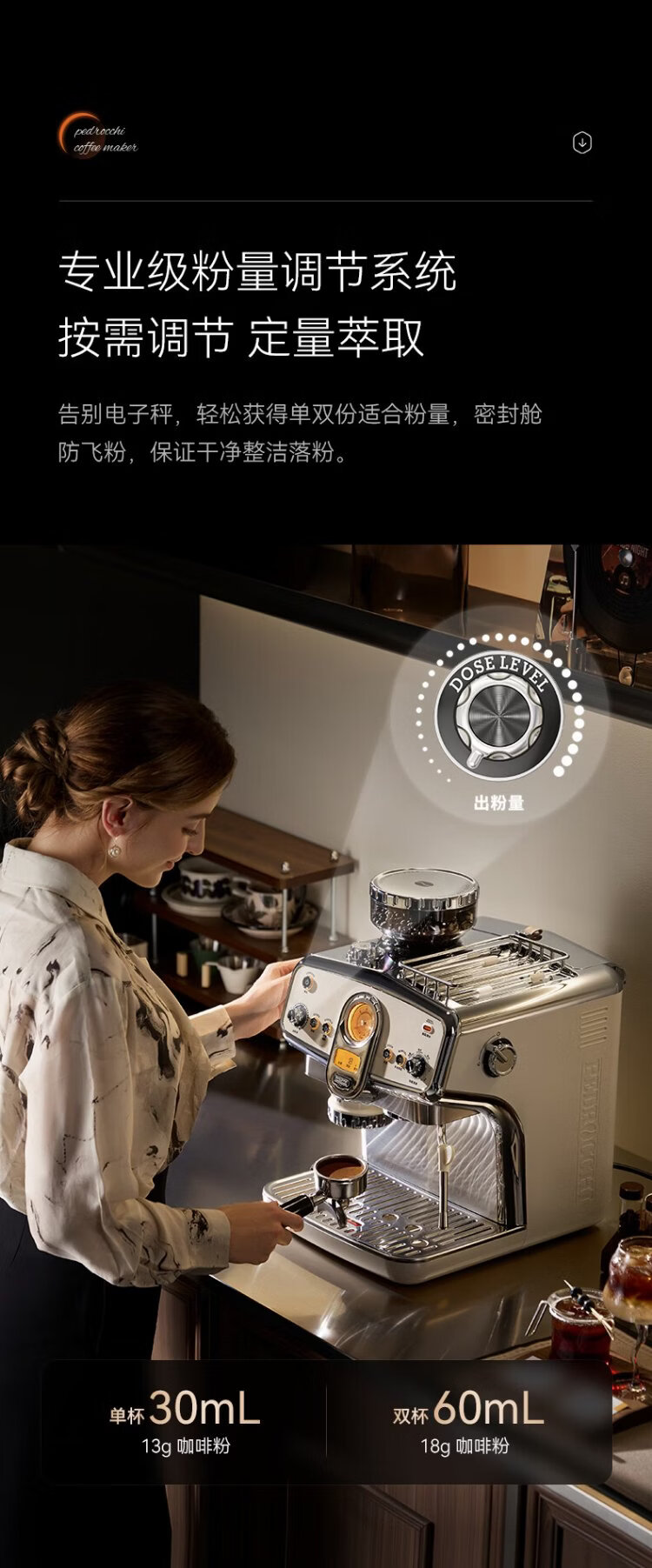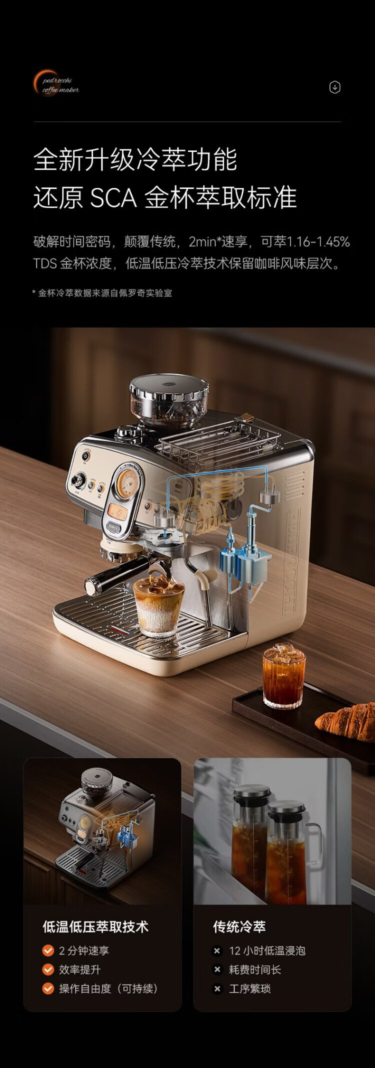 Pedrocchi coffee machine Italian semi-automatic grinder all-in-one small American-style home and business dual-use smart cloth pressed powder S60 Ultra cold brew version