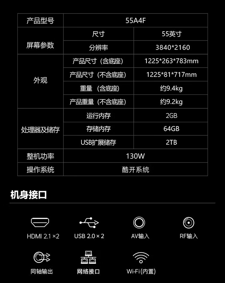 Skyworth TV 55A4F 55-inch TV percentile mini led state subsidy first-level energy efficiency LCD home appliances tablet games trade-in