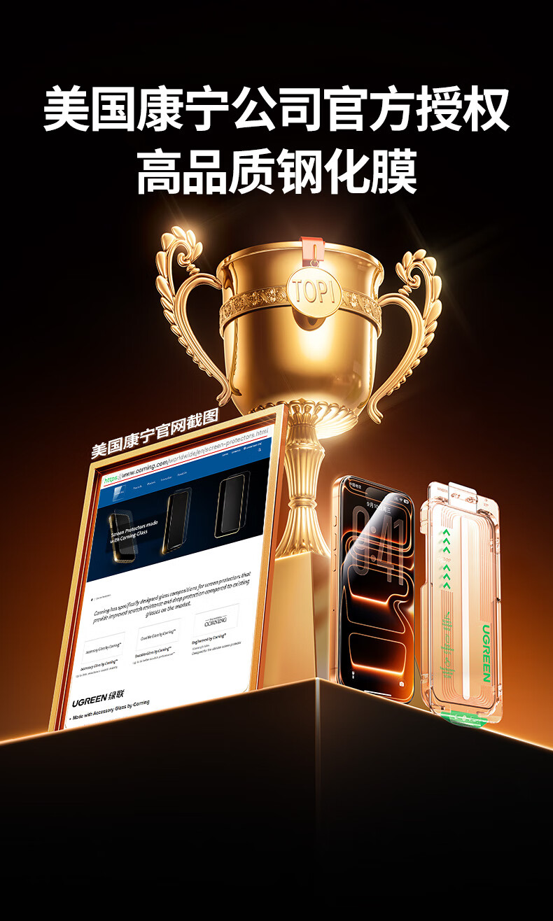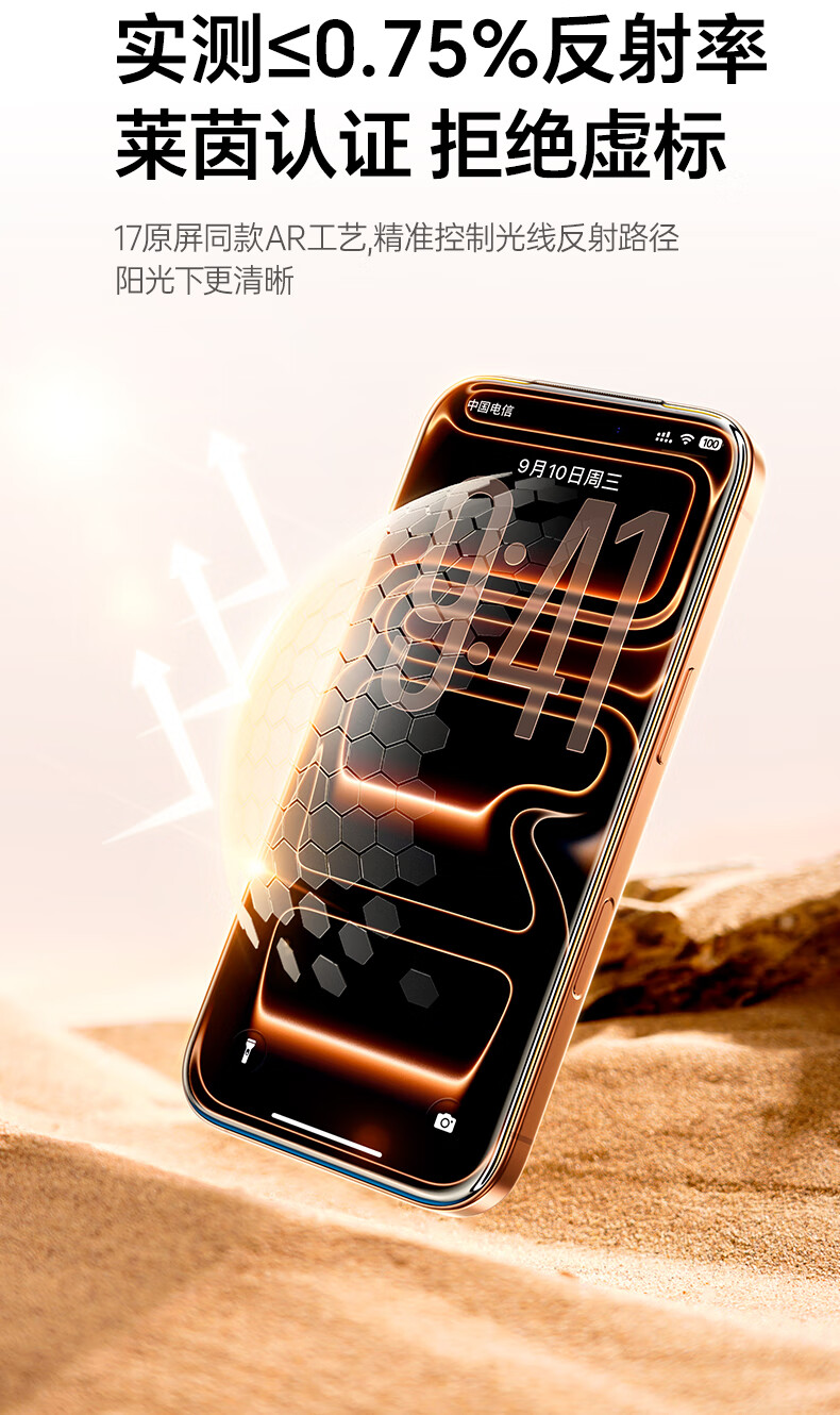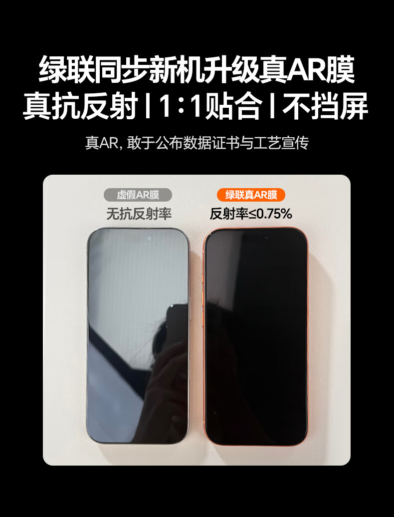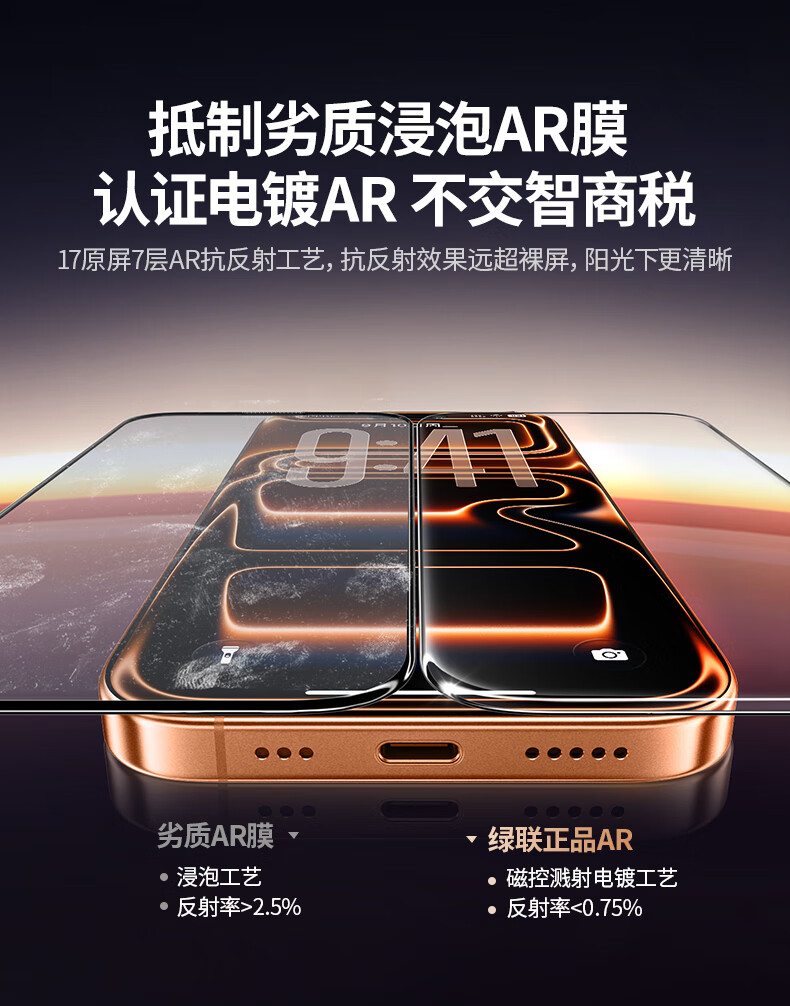Green Alliance AR Corning film, true AR anti-reflective | Rheinland certification, suitable for iPhone17ProMax tempered film, Apple 17ProMax mobile phone film, anti-fingerprint, anti-fall, dust-free warehouse