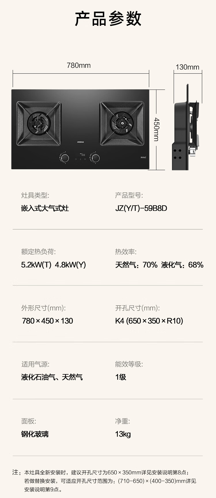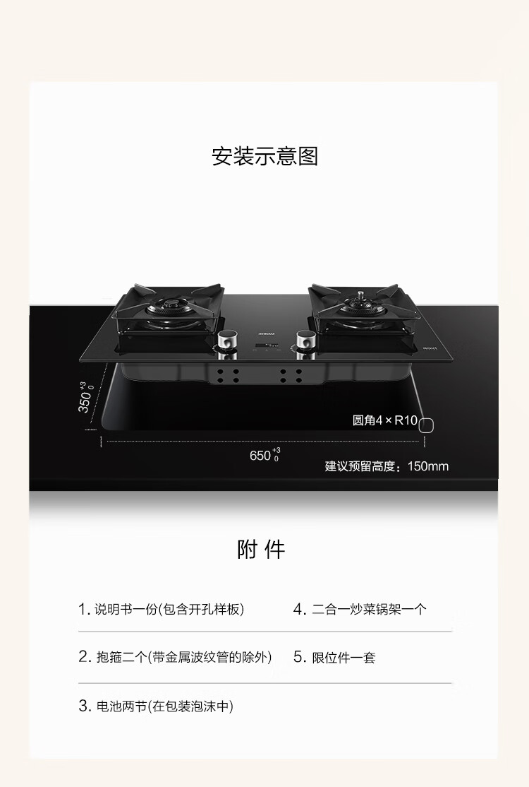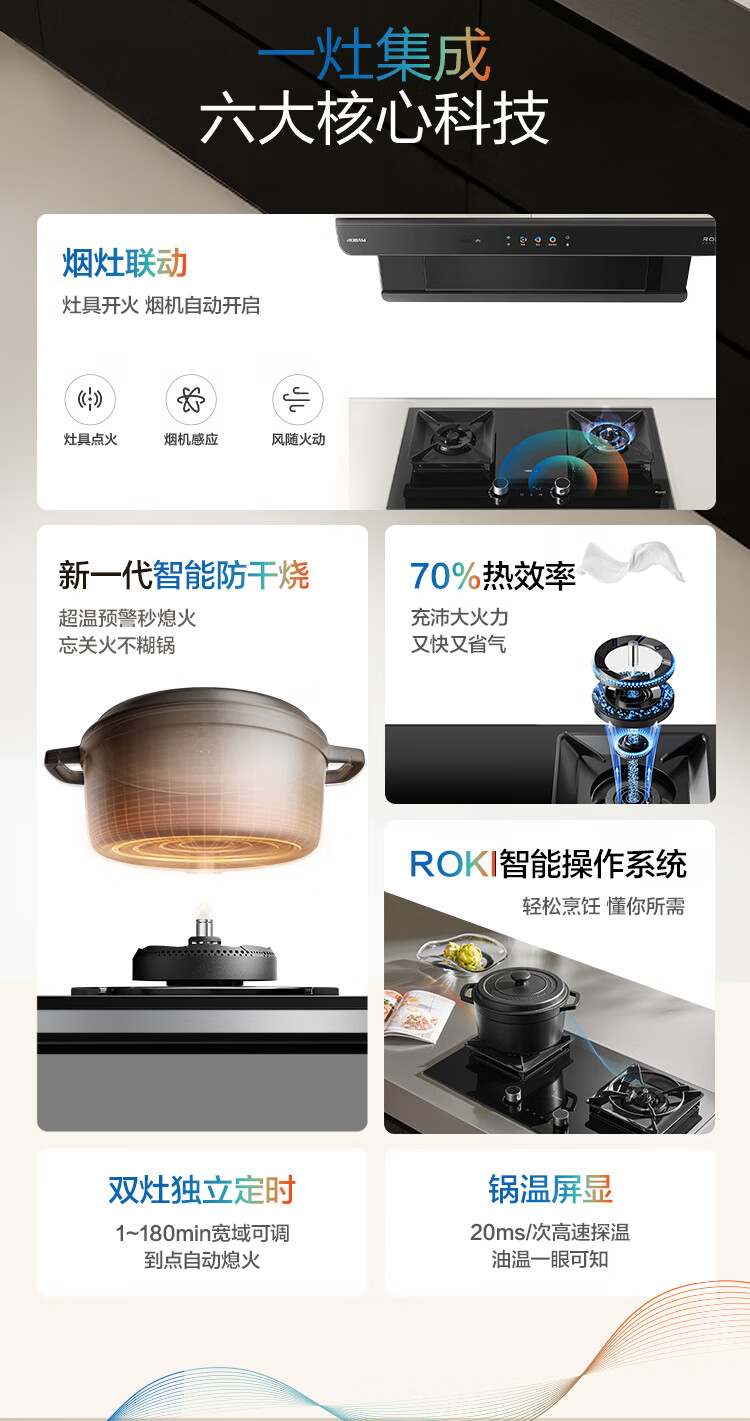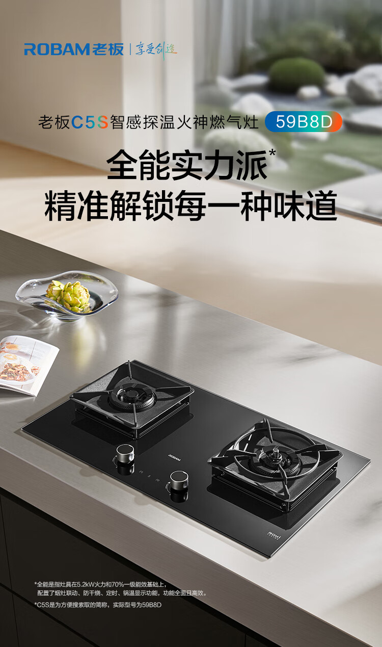 Robam's new all-purpose top-equipped Vulcan stove C5S natural gas timed anti-dry stove gas stove smoke stove linkage gas stove embedded double stove 59B8D
