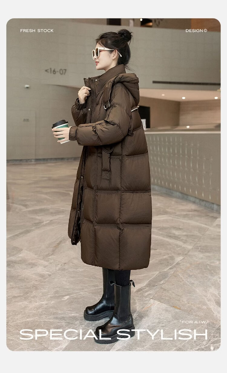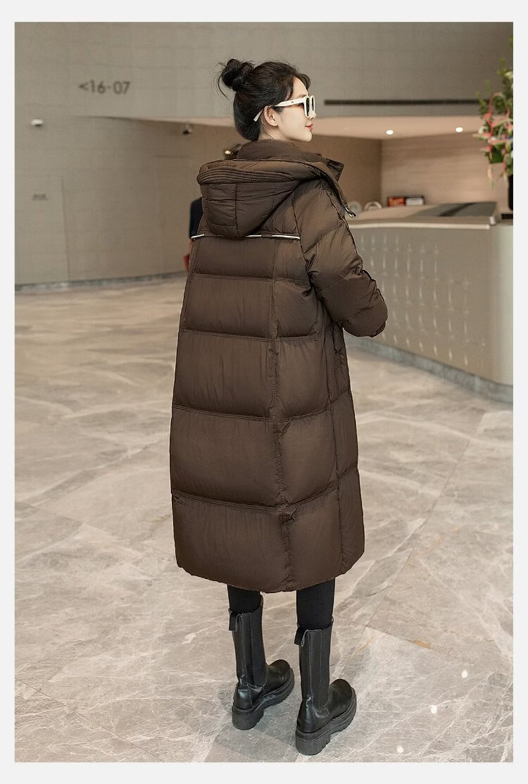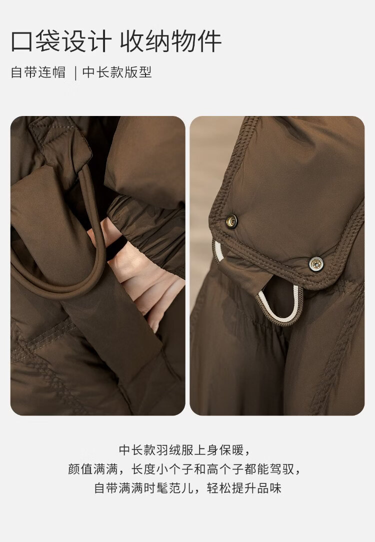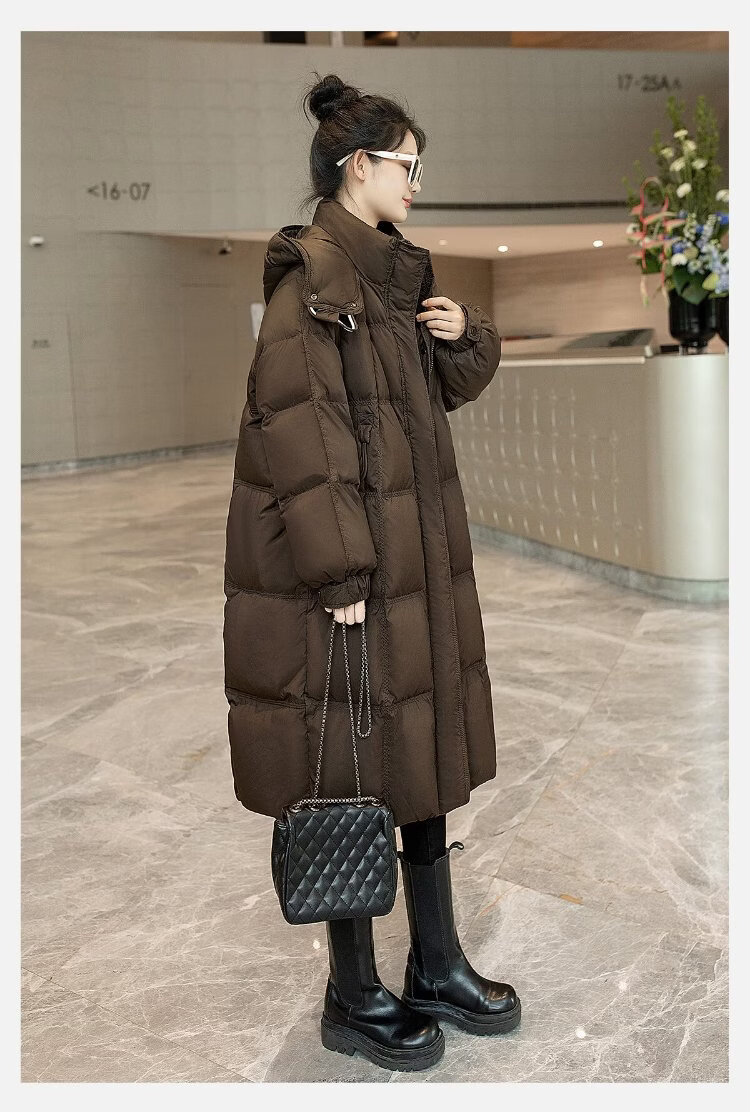 Sibaishe 90 velvet mid-length down jacket for women 2025 winter new style loose hooded long-sleeved jacket