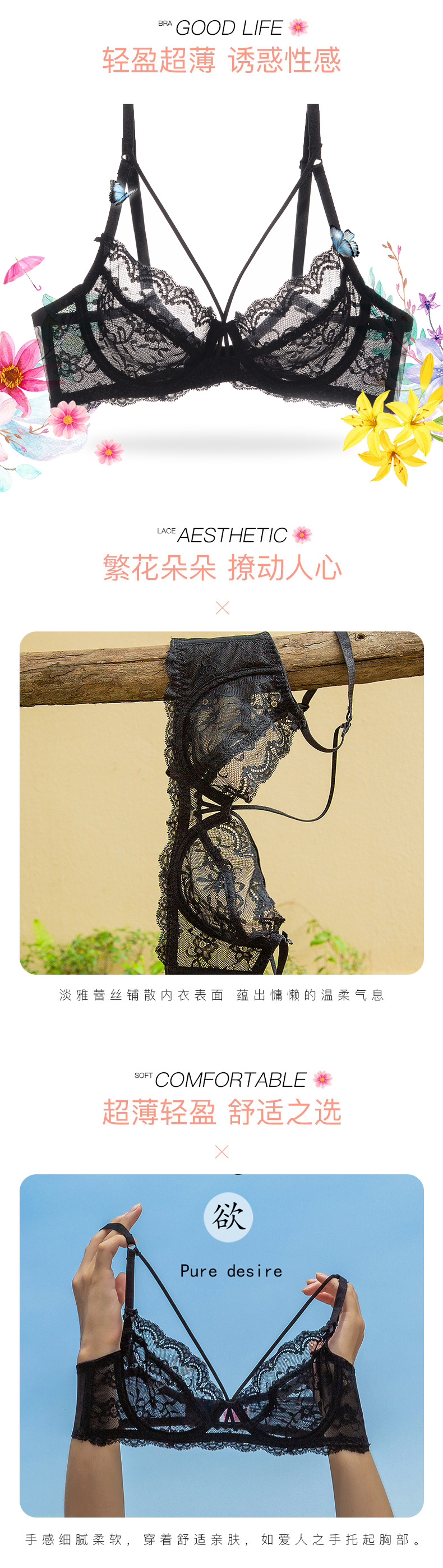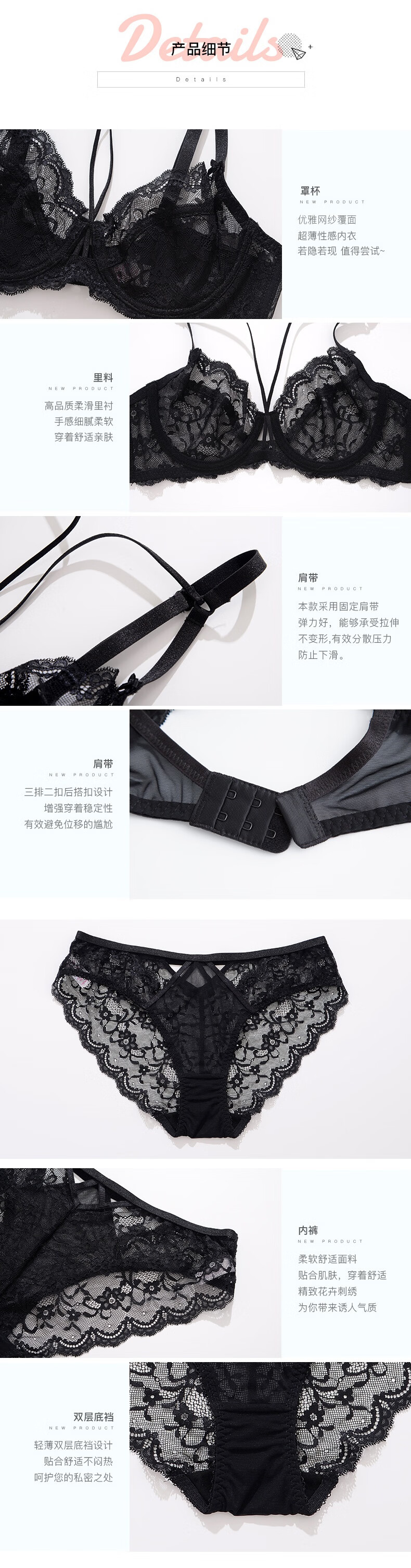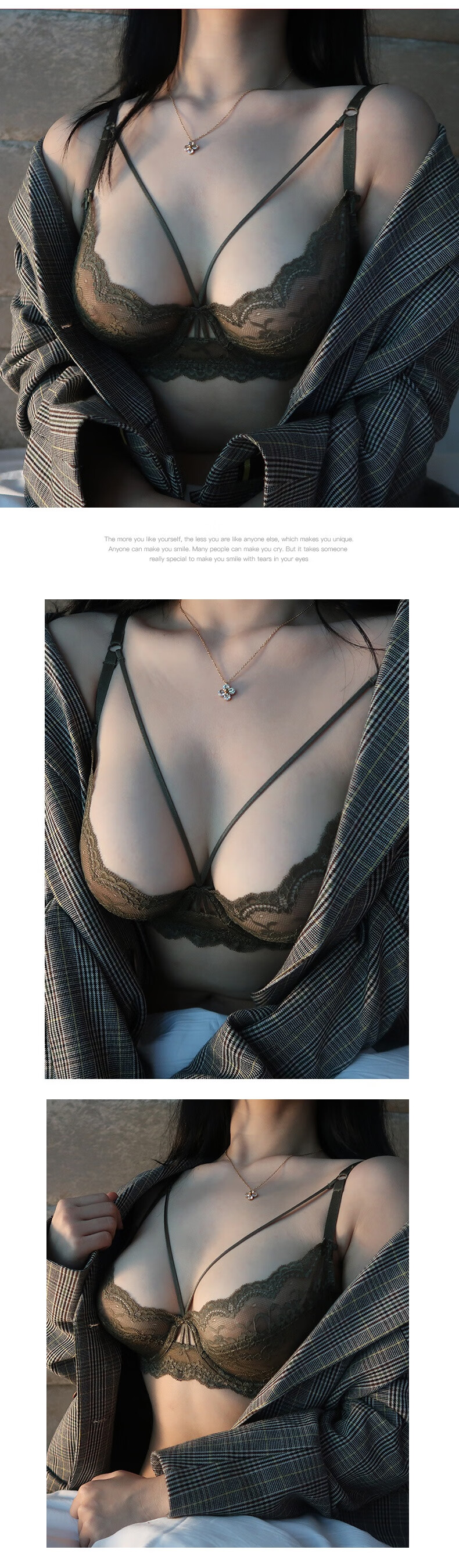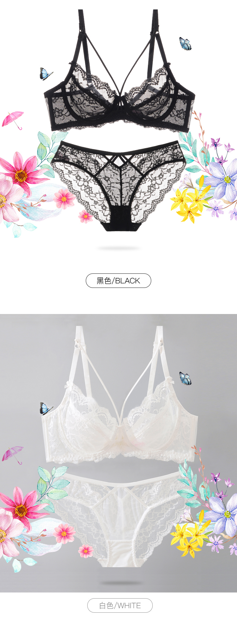Xuansha Victoria Brand Underwear Set Sexy Bra Lace Transparent Bra Temptation Large Size Push Up Big Breasts Make Smaller White (Bra + Panties) 75B