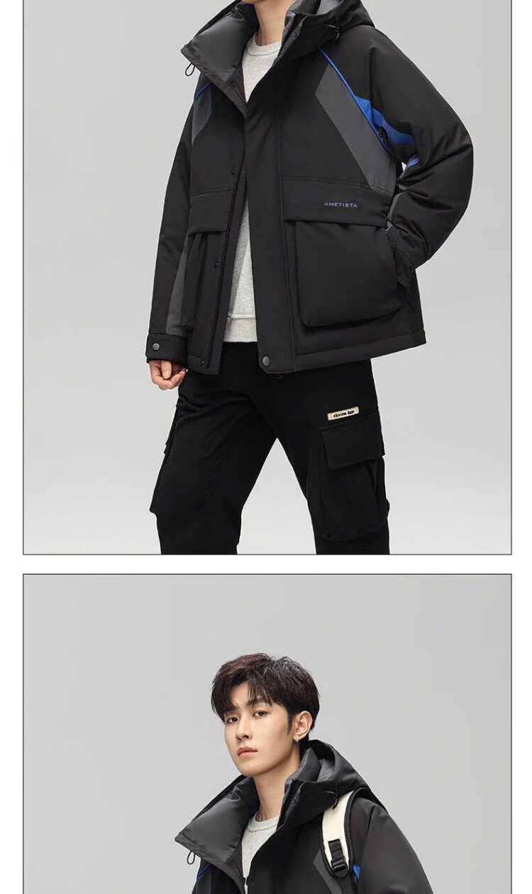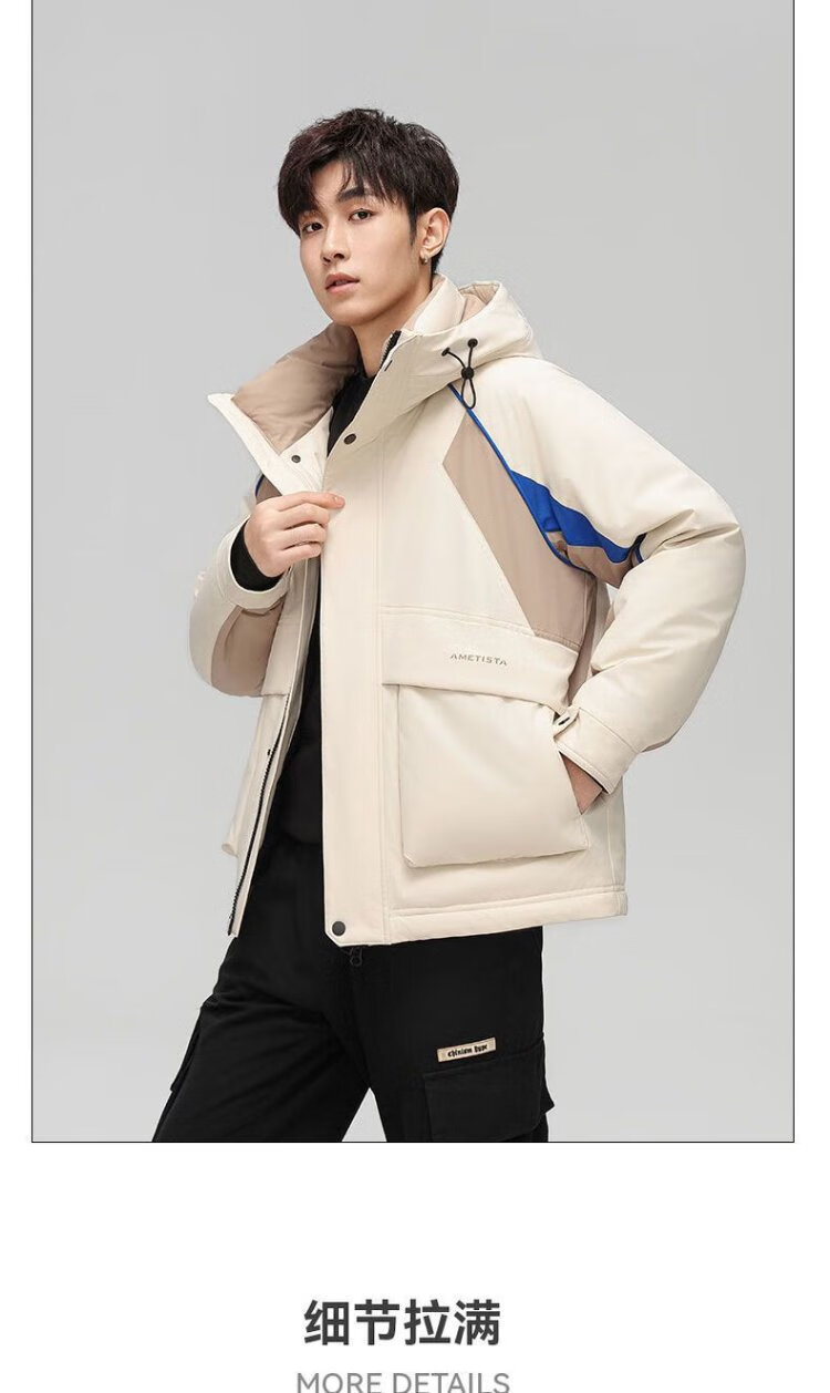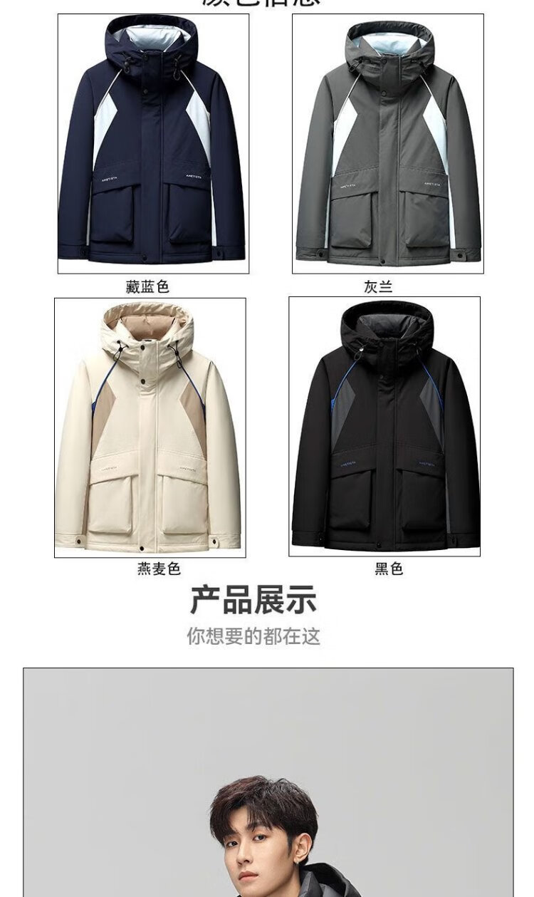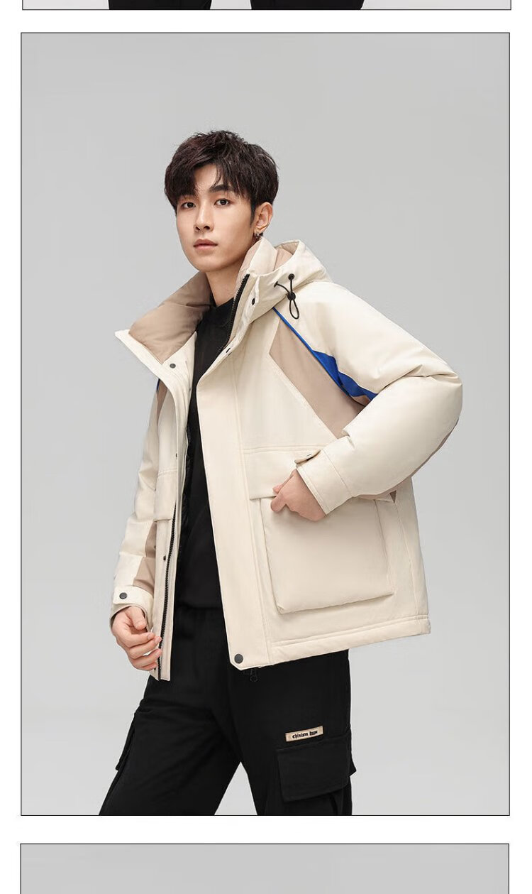 Yaya 2025 Winter Men's Hooded Thickened Warm Workwear Down Jacket Fashionable Versatile Handsome Coldproof Jacket for Men