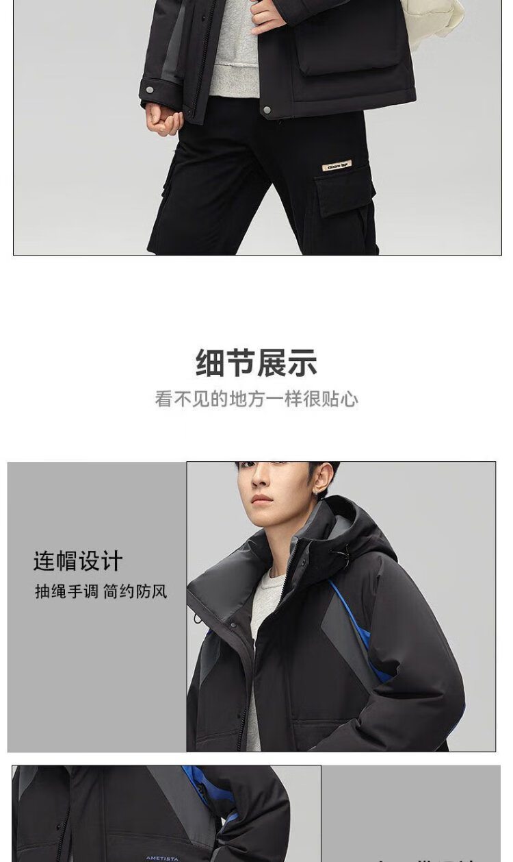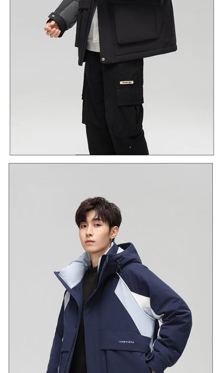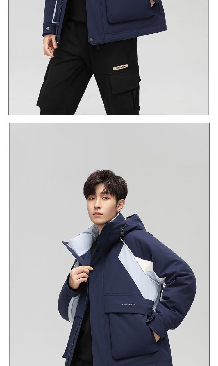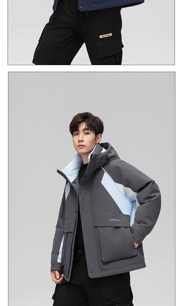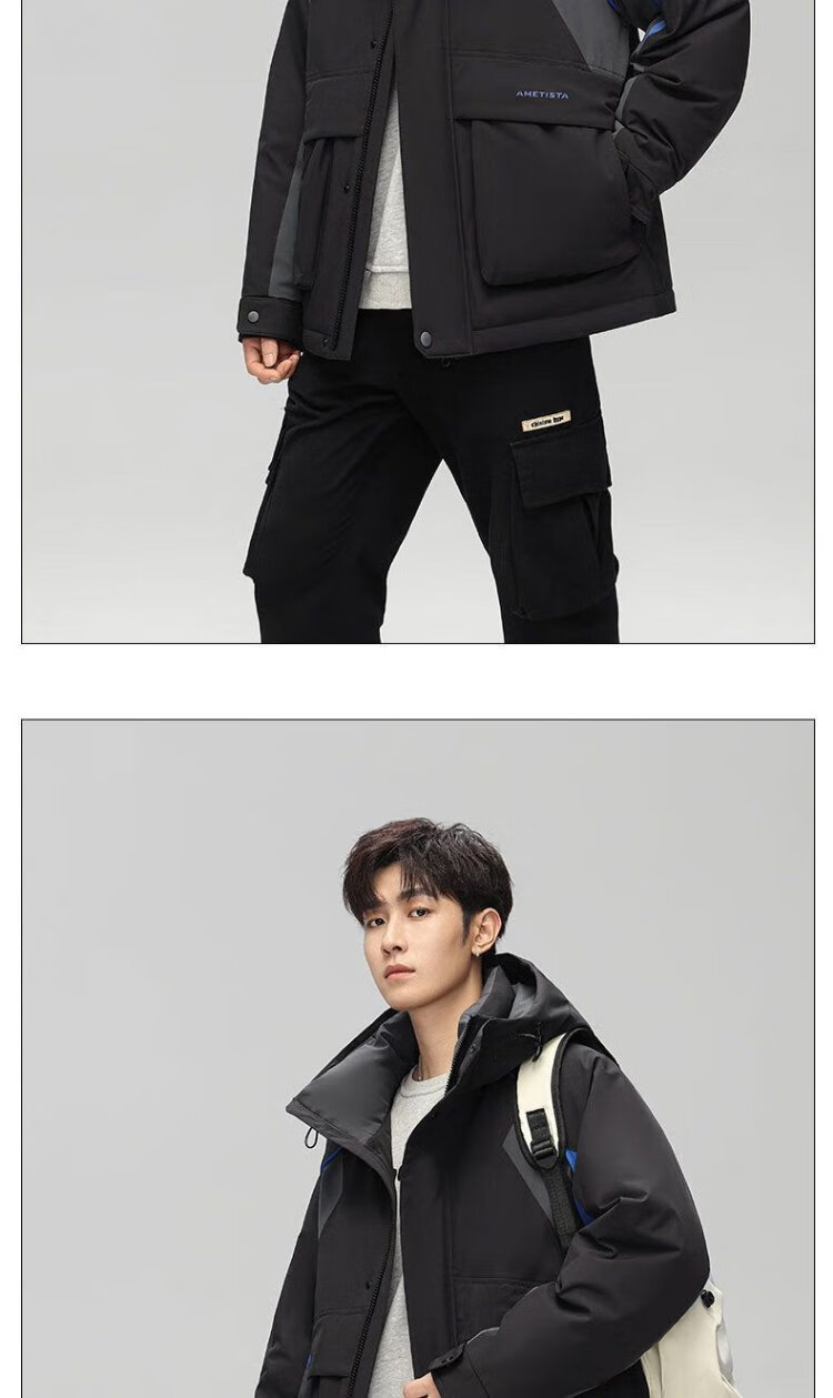 Yaya 2025 Winter Men's Hooded Thickened Warm Workwear Down Jacket Fashionable Versatile Handsome Coldproof Jacket for Men