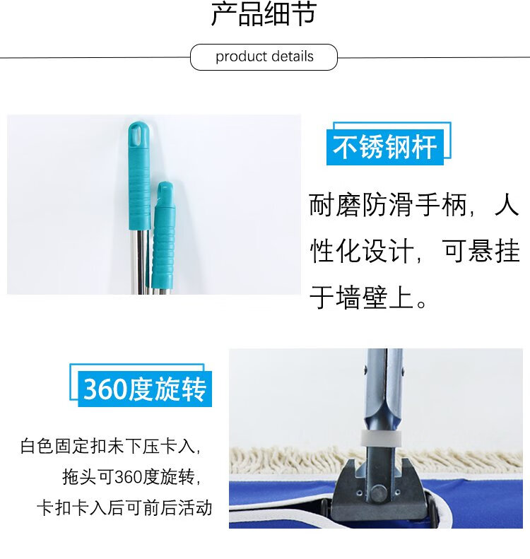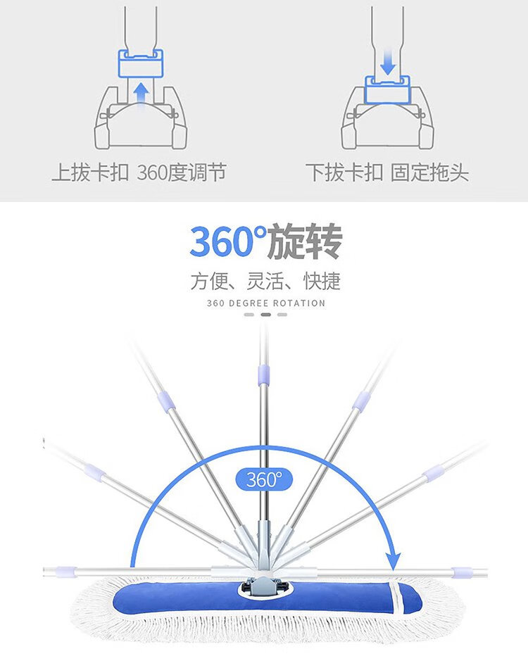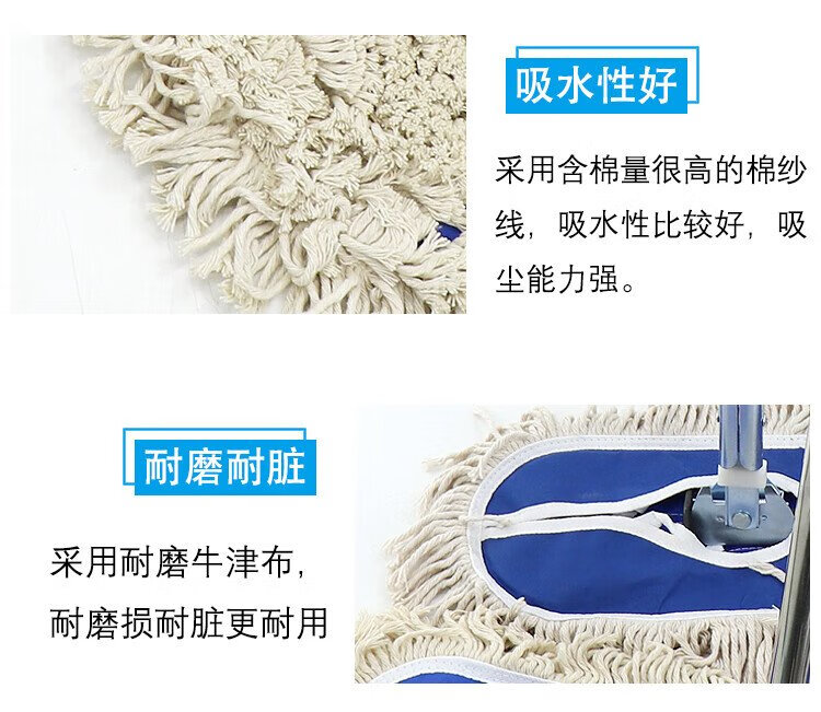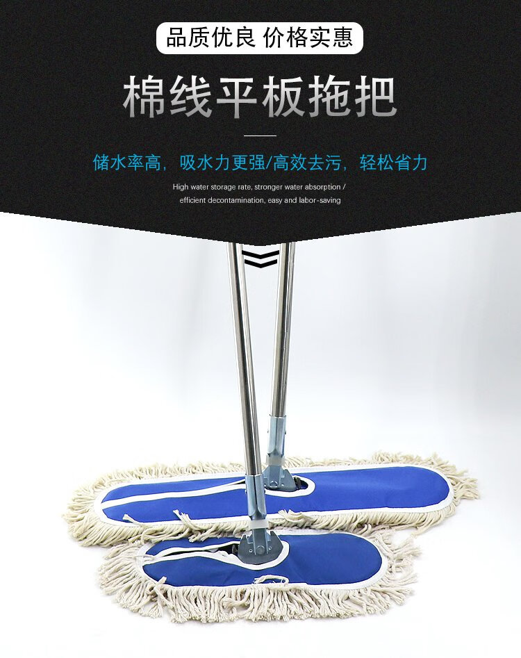 Hesdig JG-163 flat mop replacement cloth, large dust push mop head, absorbent cotton mop cloth, 60cm replacement cloth (blue) 2 pieces