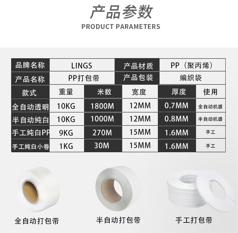 LINGS semi-automatic PP packing tape 1208 hot melt packing tape special hot melt packaging tape for semi-automatic and fully automatic baling machine plastic PP manual strapping tape