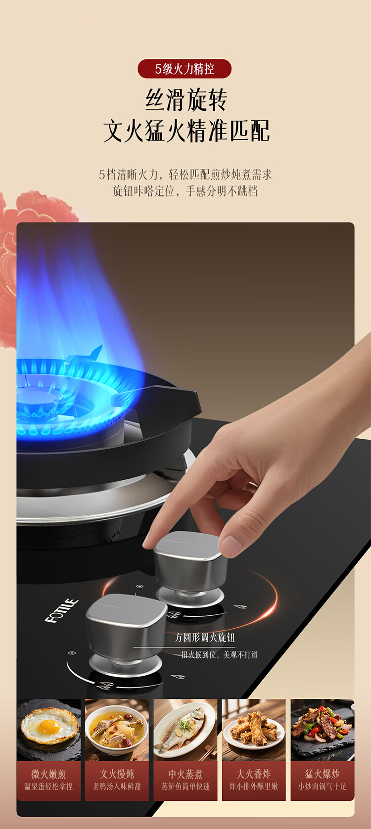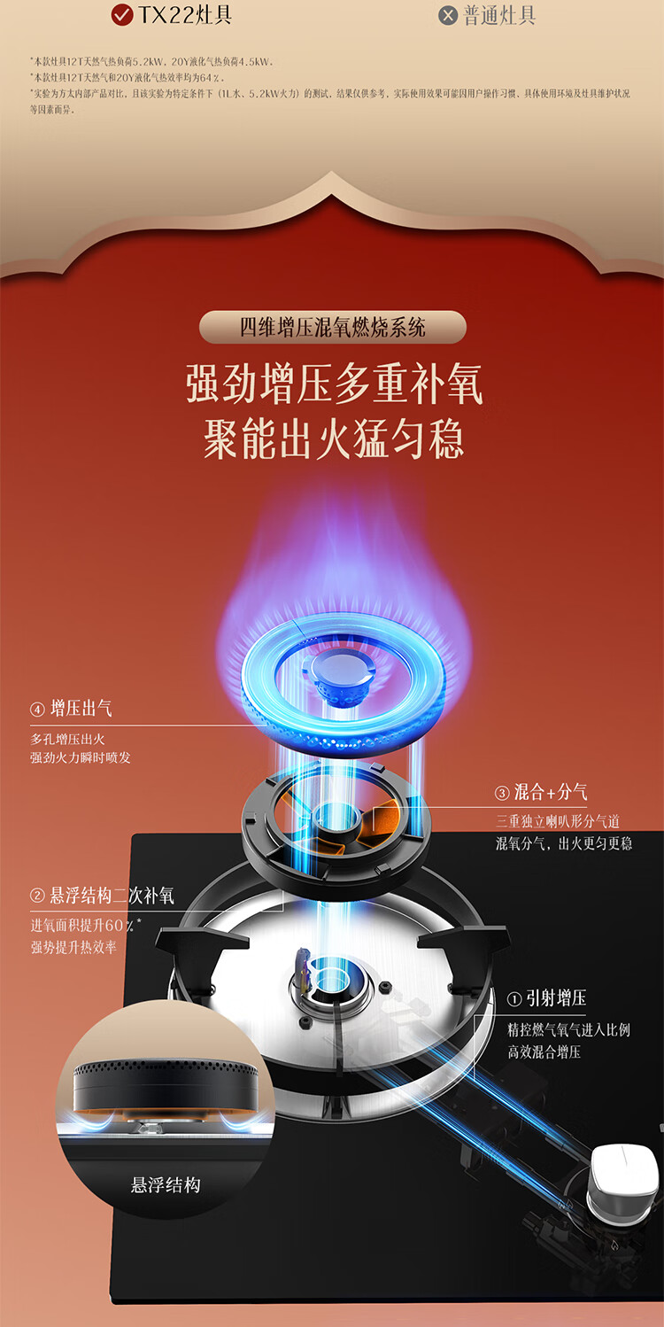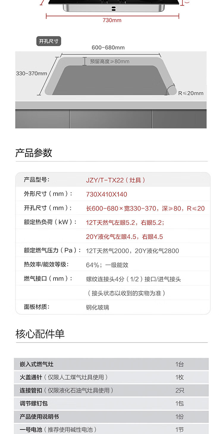 FOTILE Gas Stove Natural Gas Household Embedded 5.2kW* Fierce Fire Gas Stove Easy to Clean and Adjustable TX22