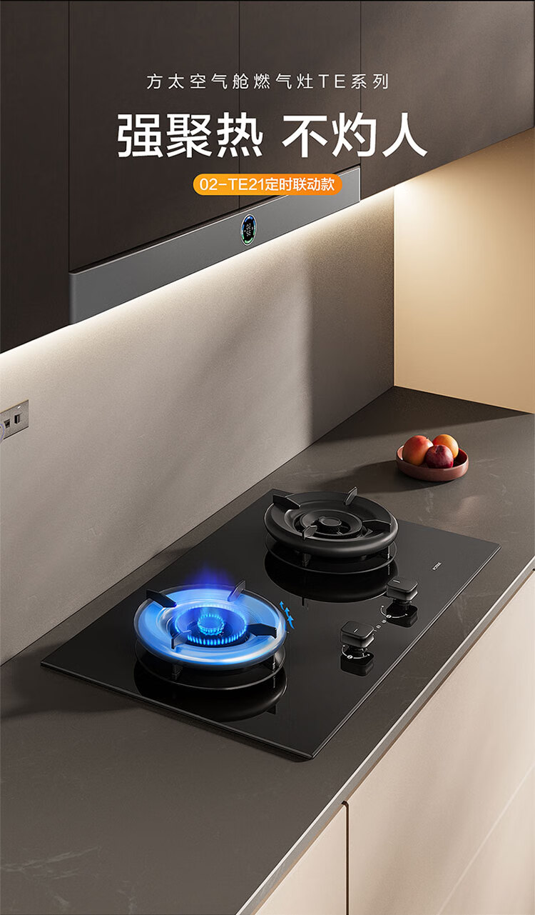 FOTILE New Timing Stove Gas Stove Natural Gas 5.2kW*70% Thermal Efficiency Fierce Fire Can Smoke Stove Linkage Easy to Clean 02-TE21