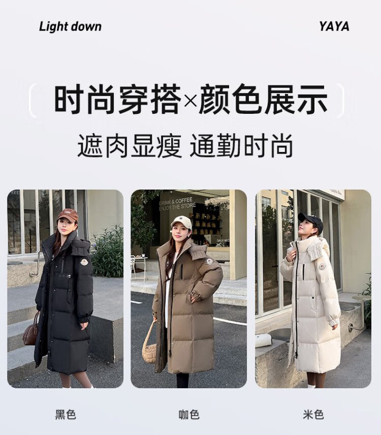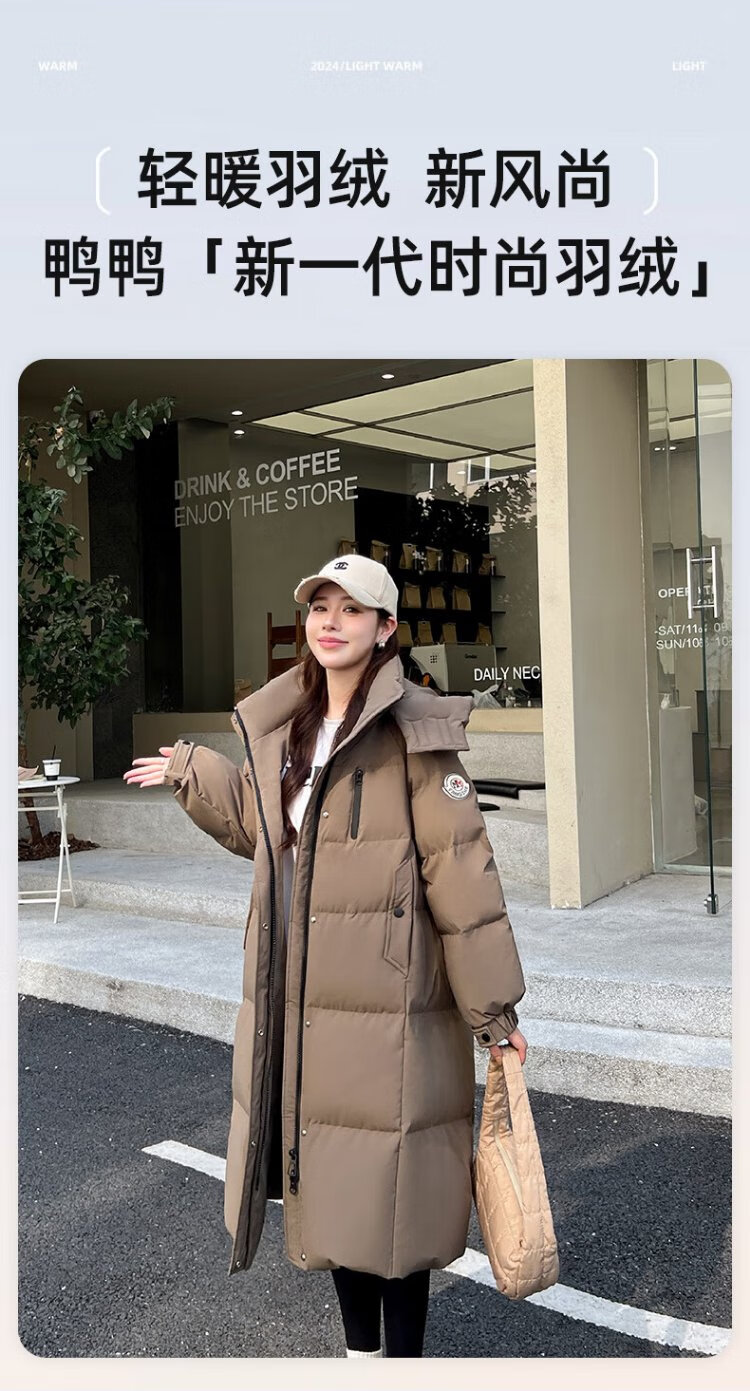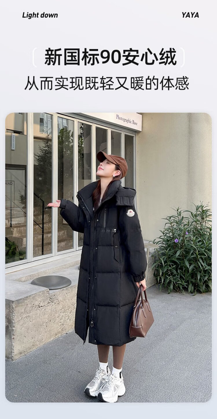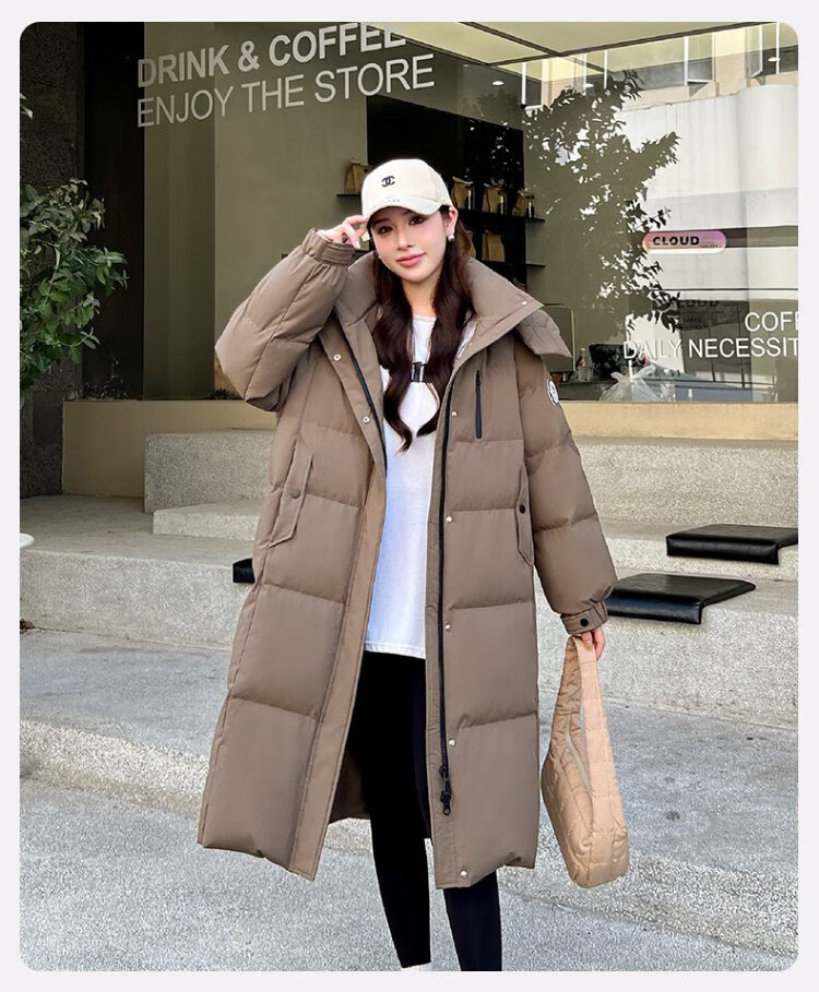 YAYA Down Jacket Women's 2025 Winter New Product Long Versatile Hooded Warm 90 Duck Down Thick Jacket Brown 2XL