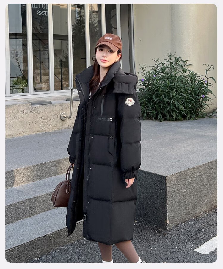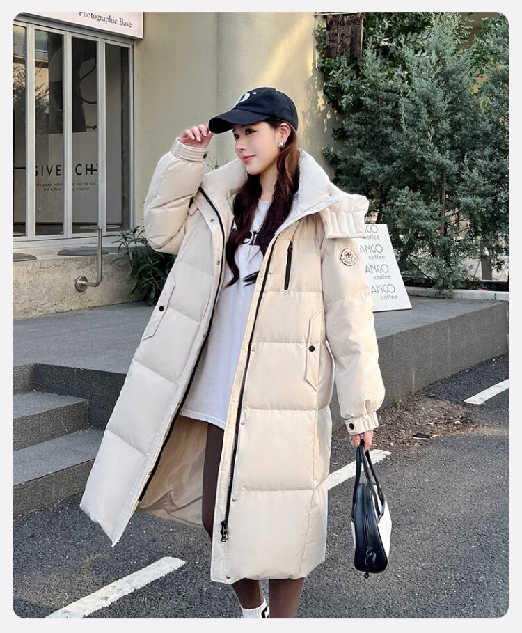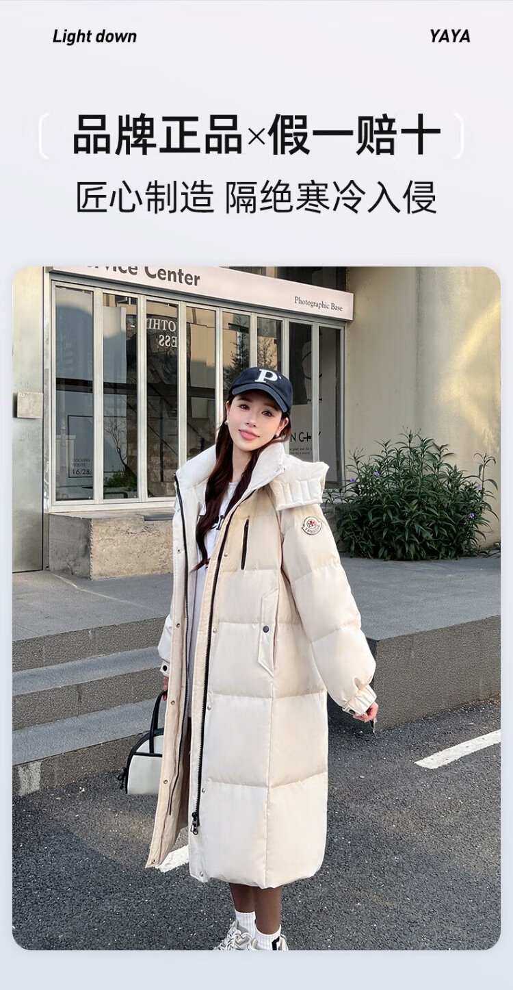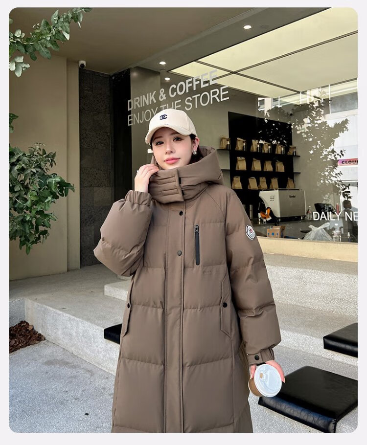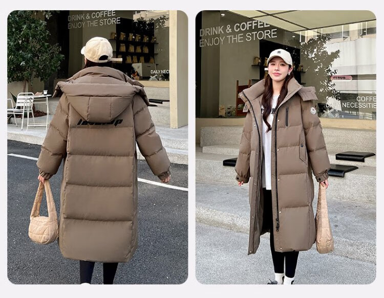 YAYA Down Jacket Women's 2025 Winter New Product Long Versatile Hooded Warm 90 Duck Down Thick Jacket Brown 2XL