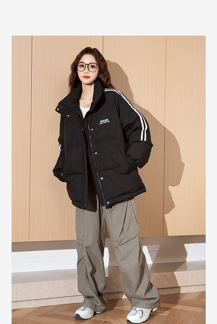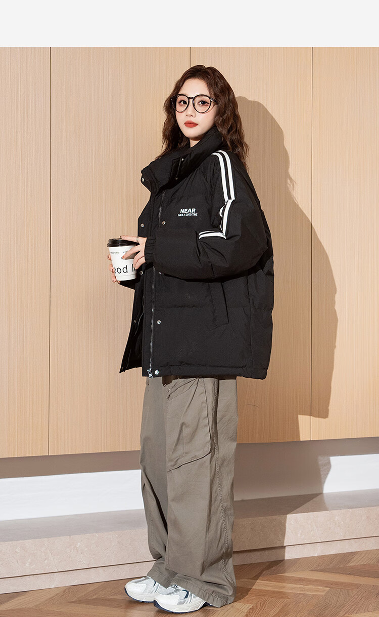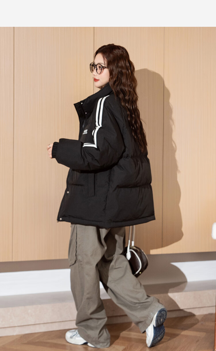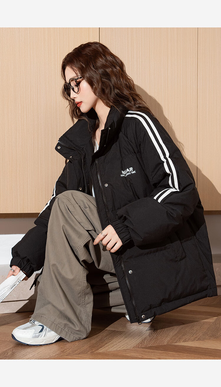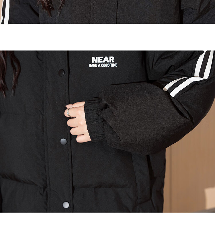 TonLion 2025 Winter Women's Contrast Color Strip Small Details on the Left Chest One Hand Long Down Jacket