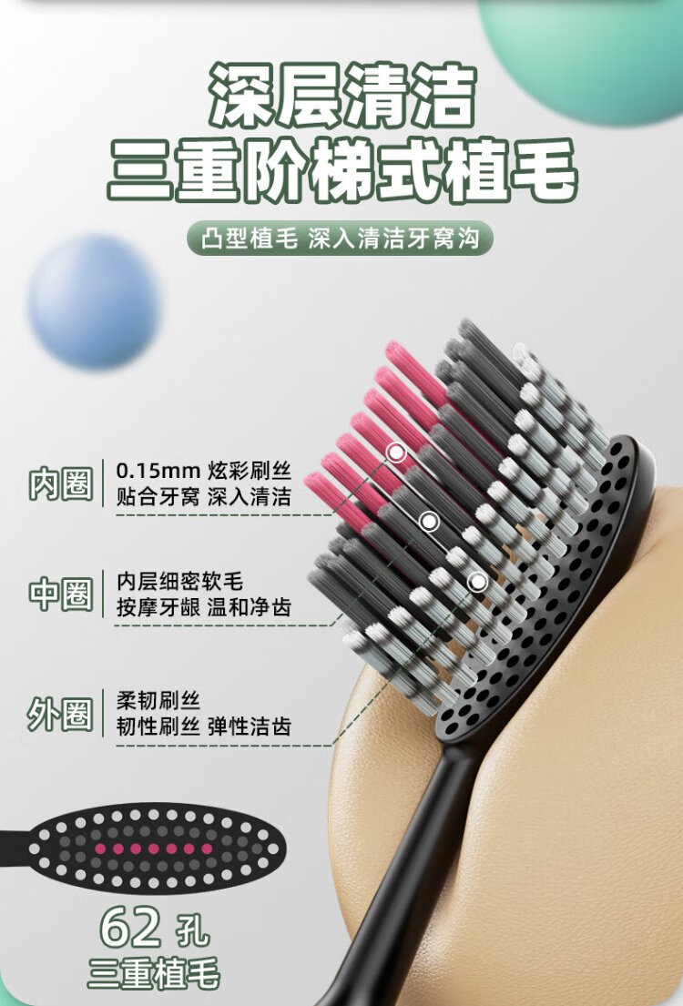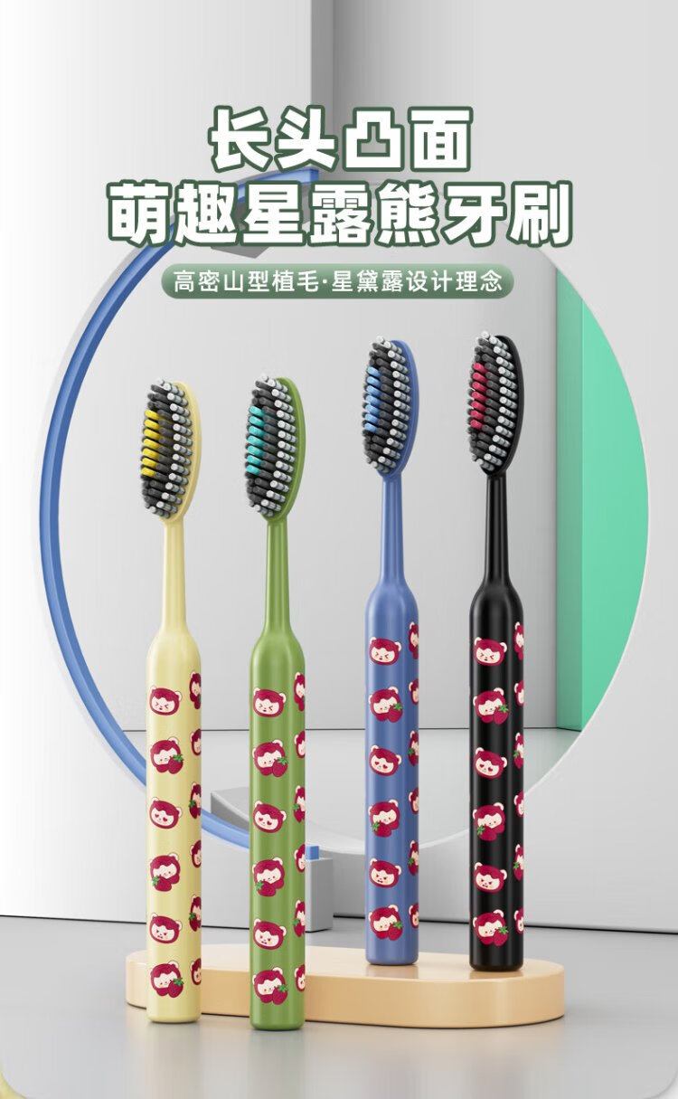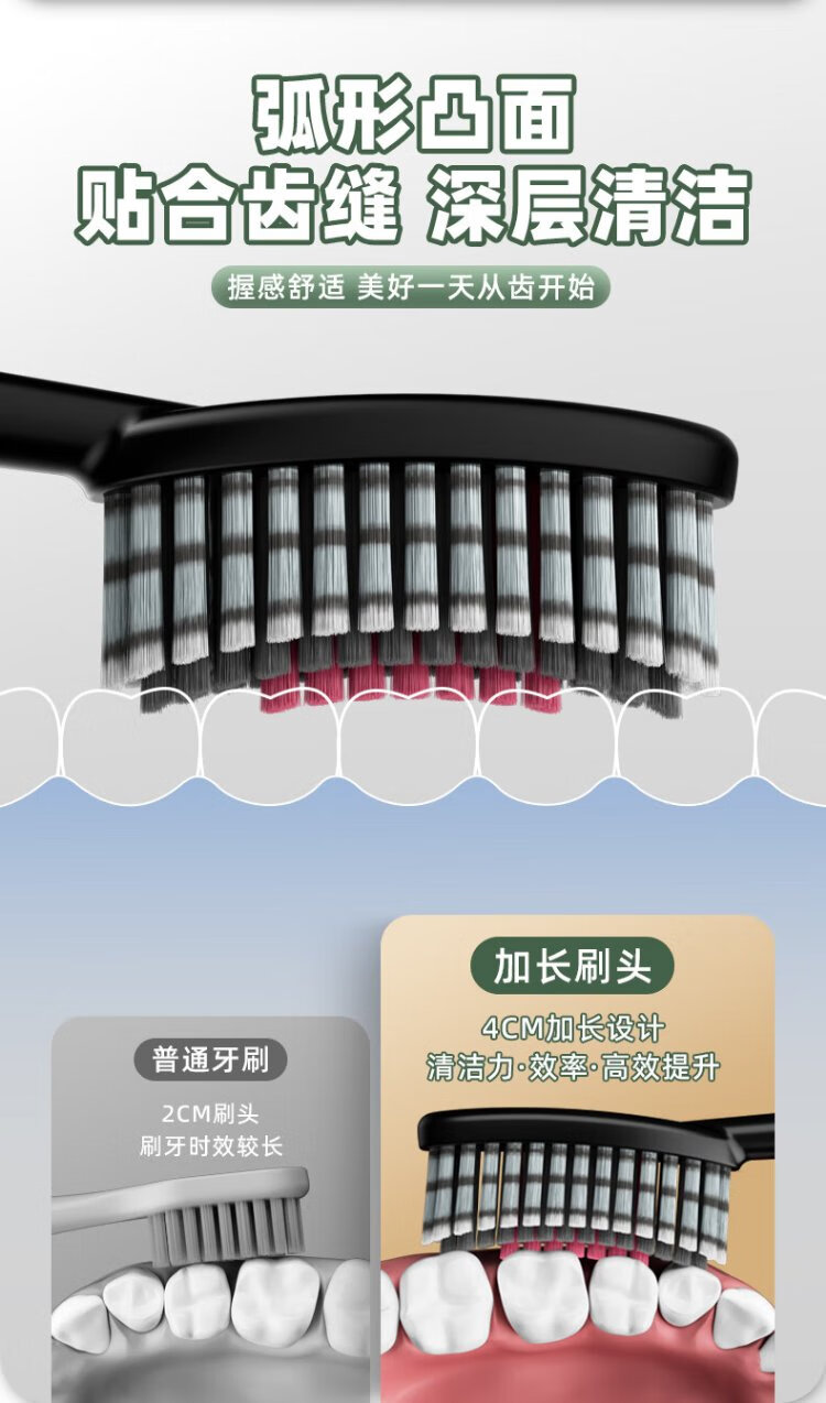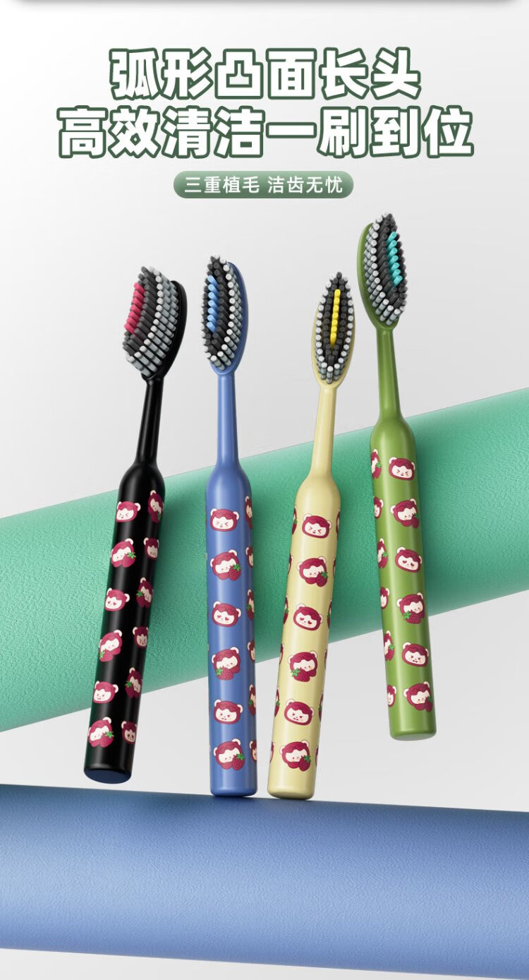 Colonia 4 long head convex toothbrushes, adult household soft-bristled high-end curved brush heads, extended family size