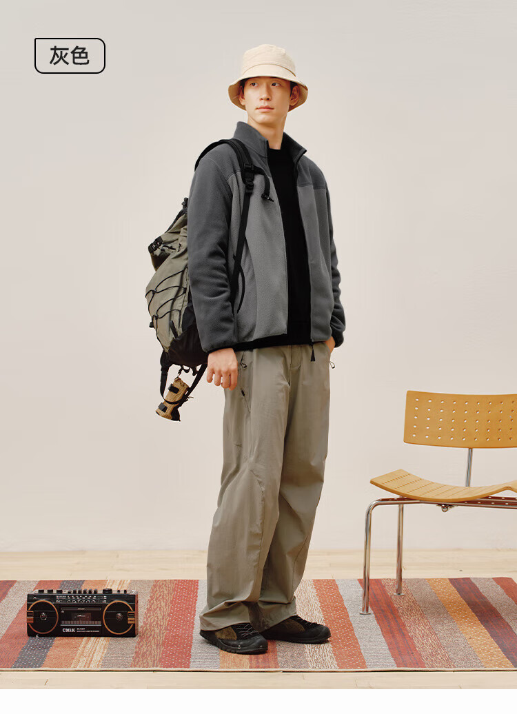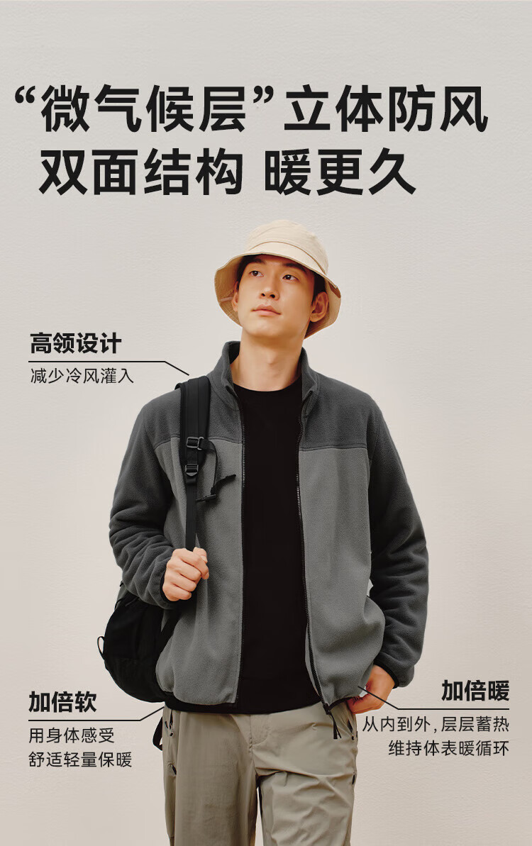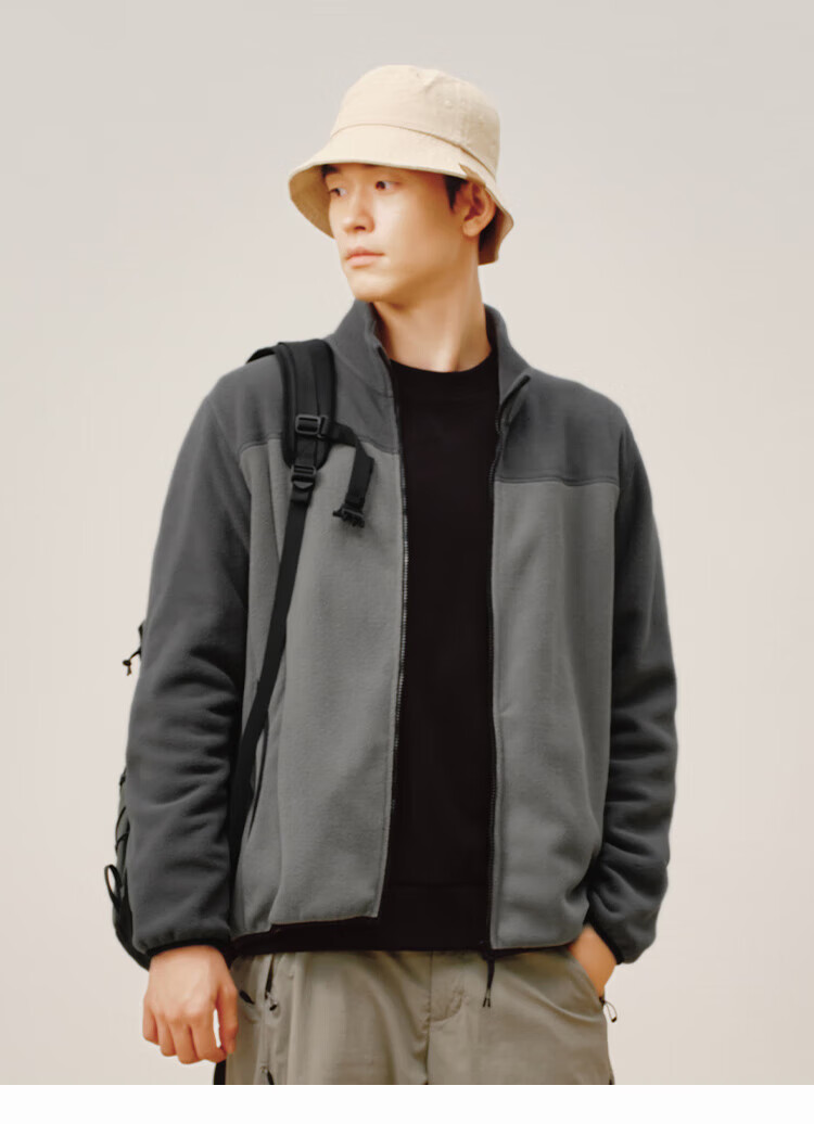 Jingjing Tokyo jacket men's assault polar fleece clothes women's winter new fleece jacket New Year dark gray + light gray L