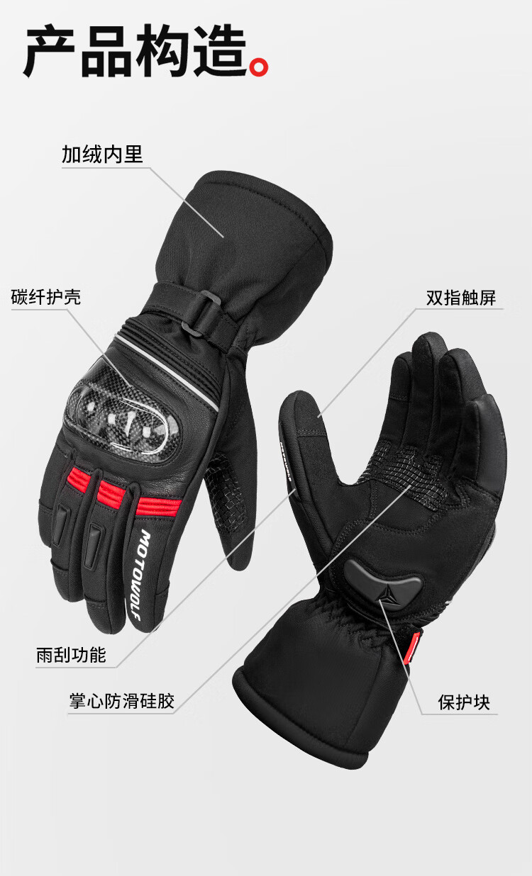 Modo Wolf Winter Motorcycle Gloves Thickened and Velvet Warm, Waterproof, Windproof and Fallproof Carbon Fiber Shell Motorcycle Riding Equipment