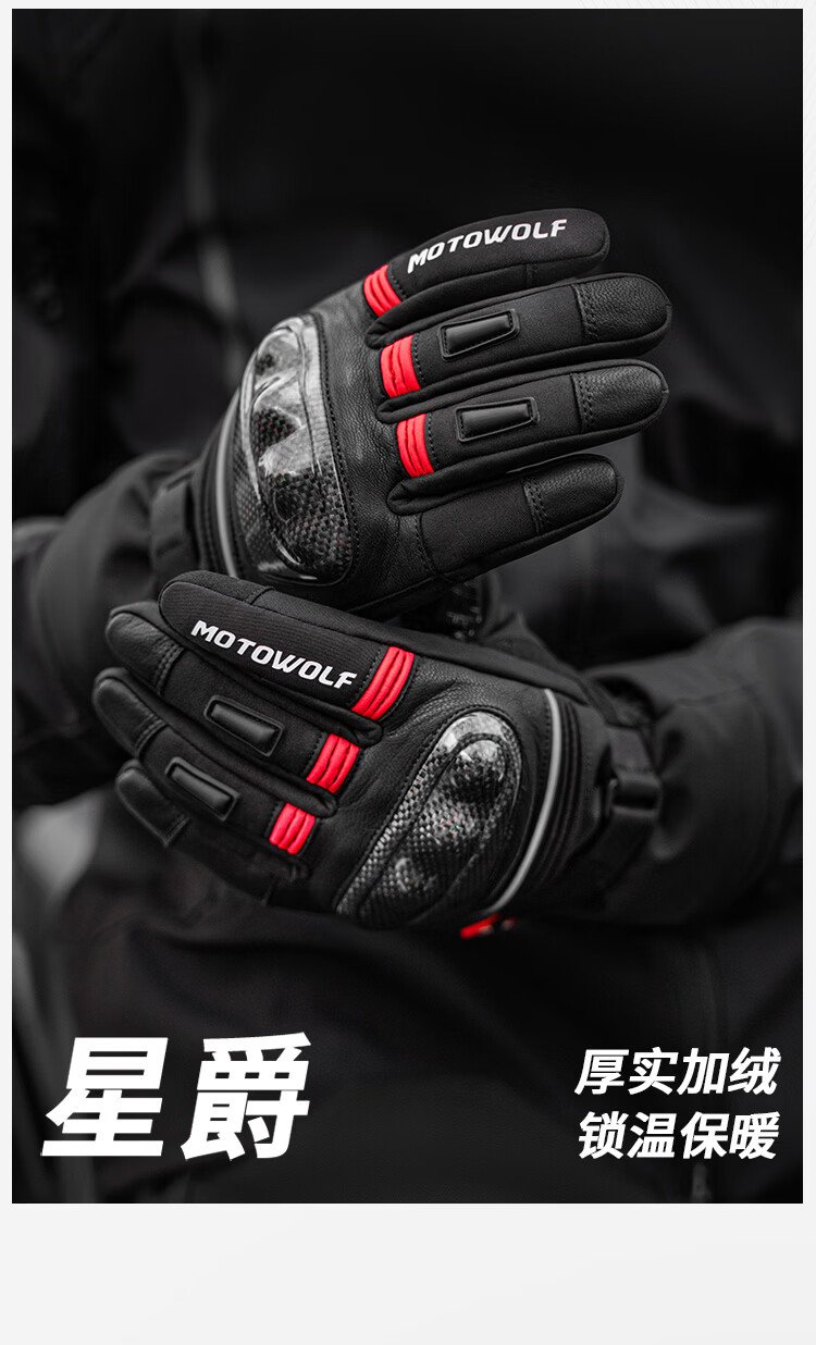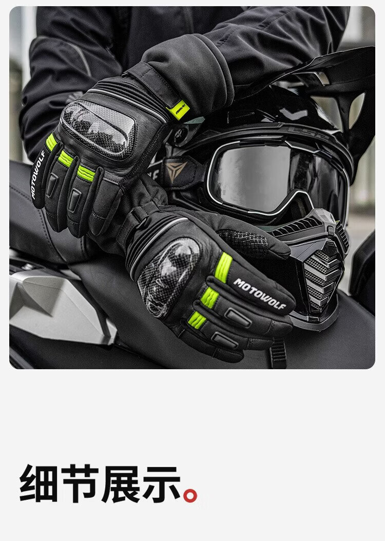 Modo Wolf Winter Motorcycle Gloves Thickened and Velvet Warm, Waterproof, Windproof and Fallproof Carbon Fiber Shell Motorcycle Riding Equipment