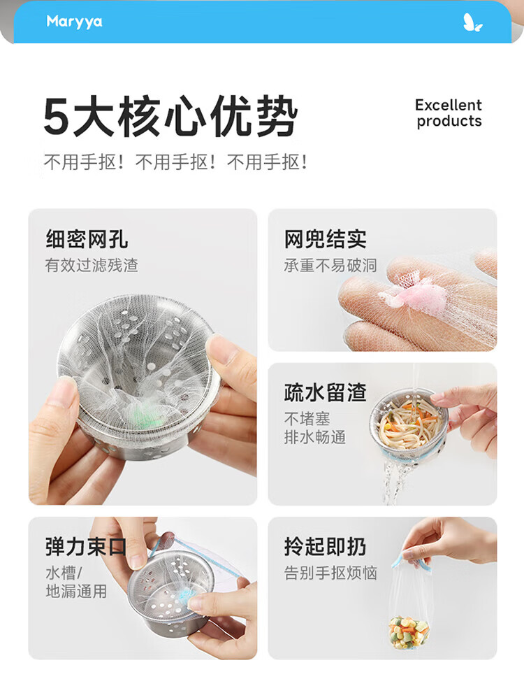 Meliya sink filter 100 pieces kitchen sewer floor drain sink vegetable basin disposable mesh bag