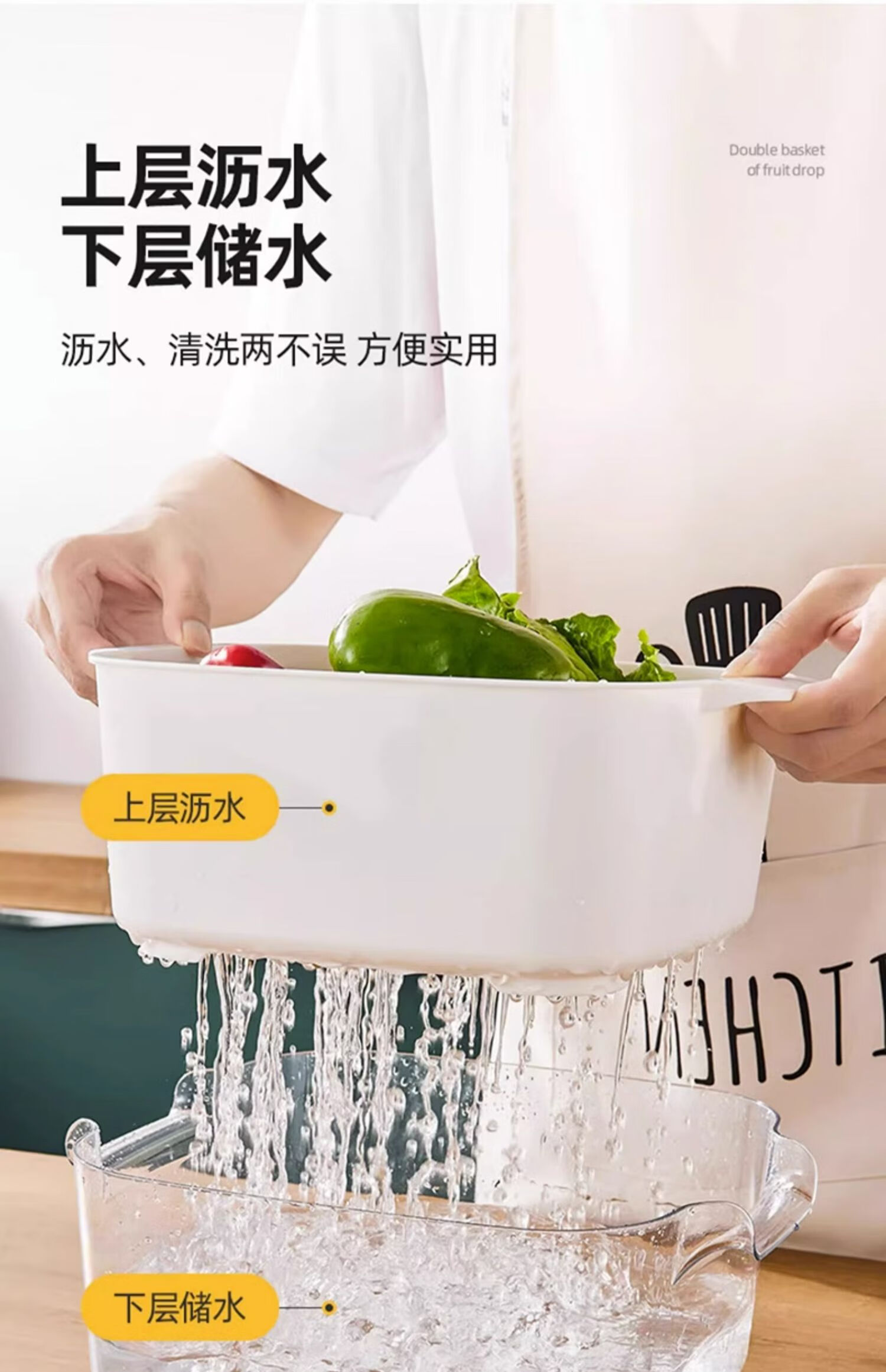 MUYA double-layer vegetable sink drain basket multi-functional kitchen household new fruit plate living room washing vegetable basket