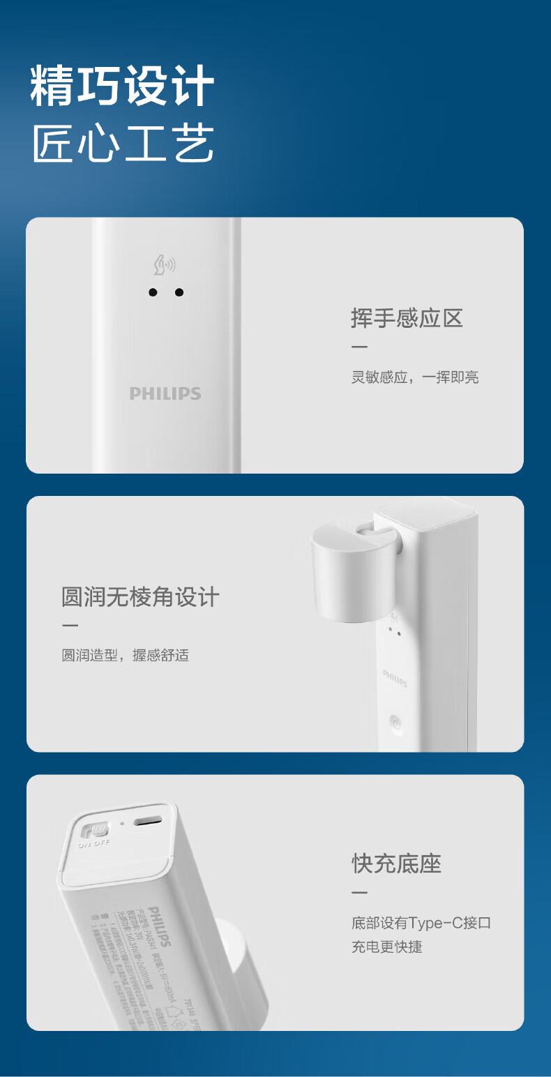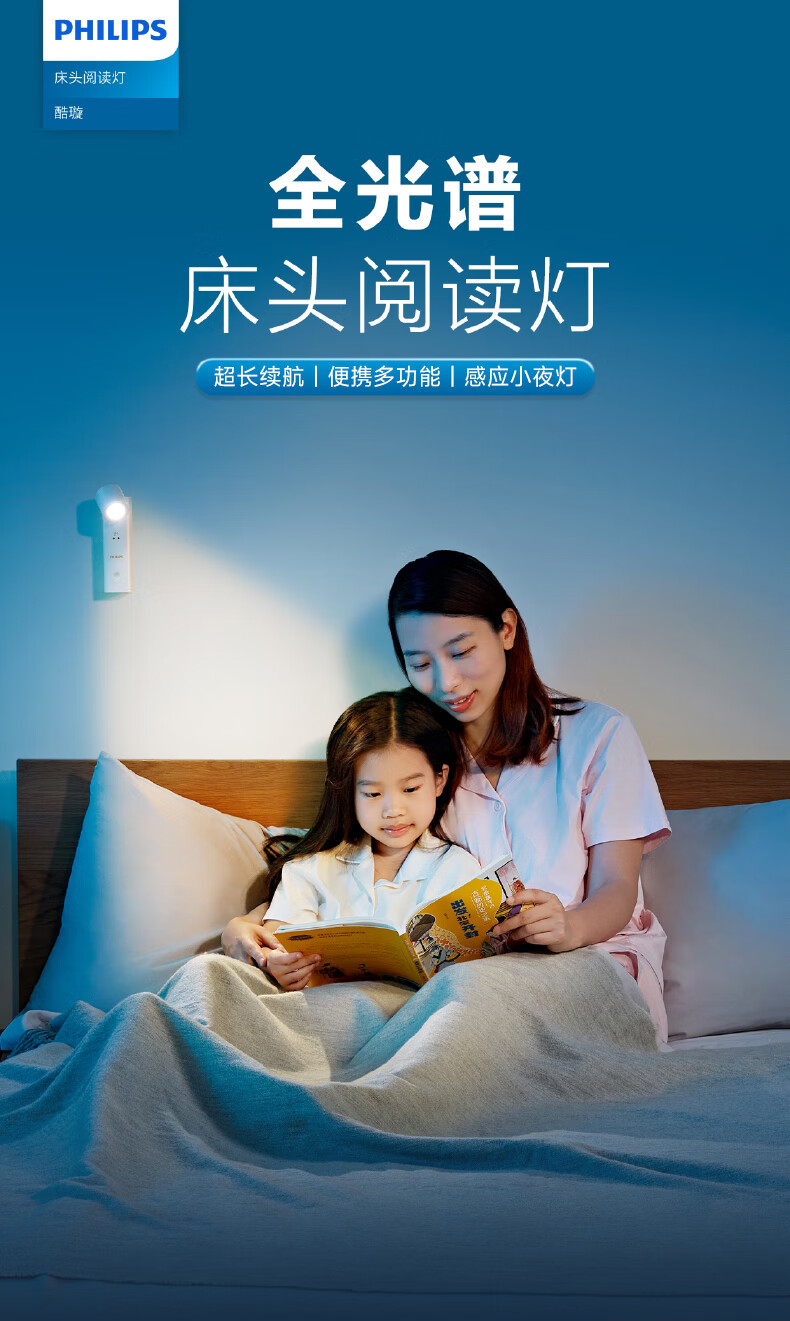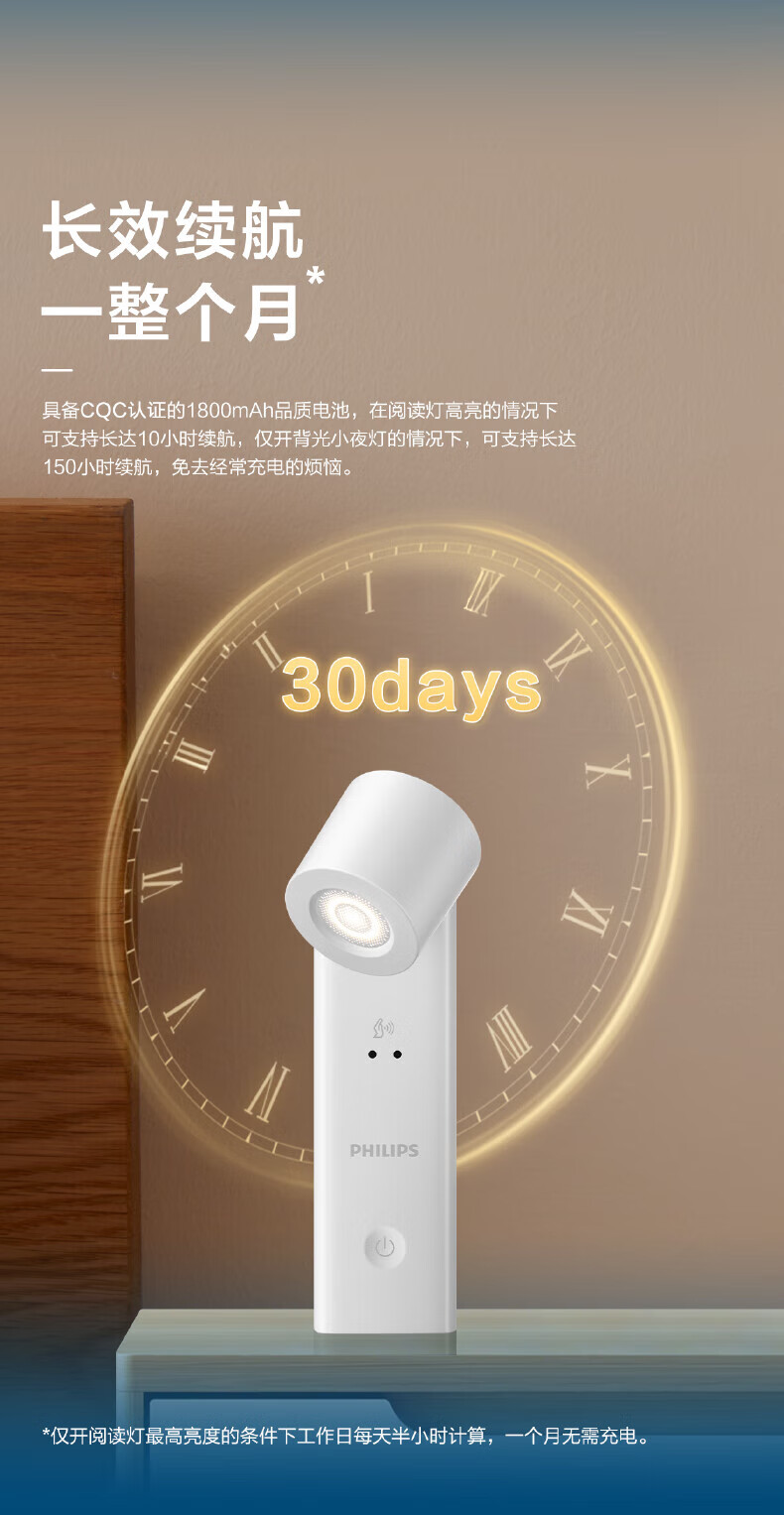 Philips (PHILIPS) full spectrum bedside lamp reading night light portable charging induction touch ultra-long battery life basic version 1200 mAh touch switch