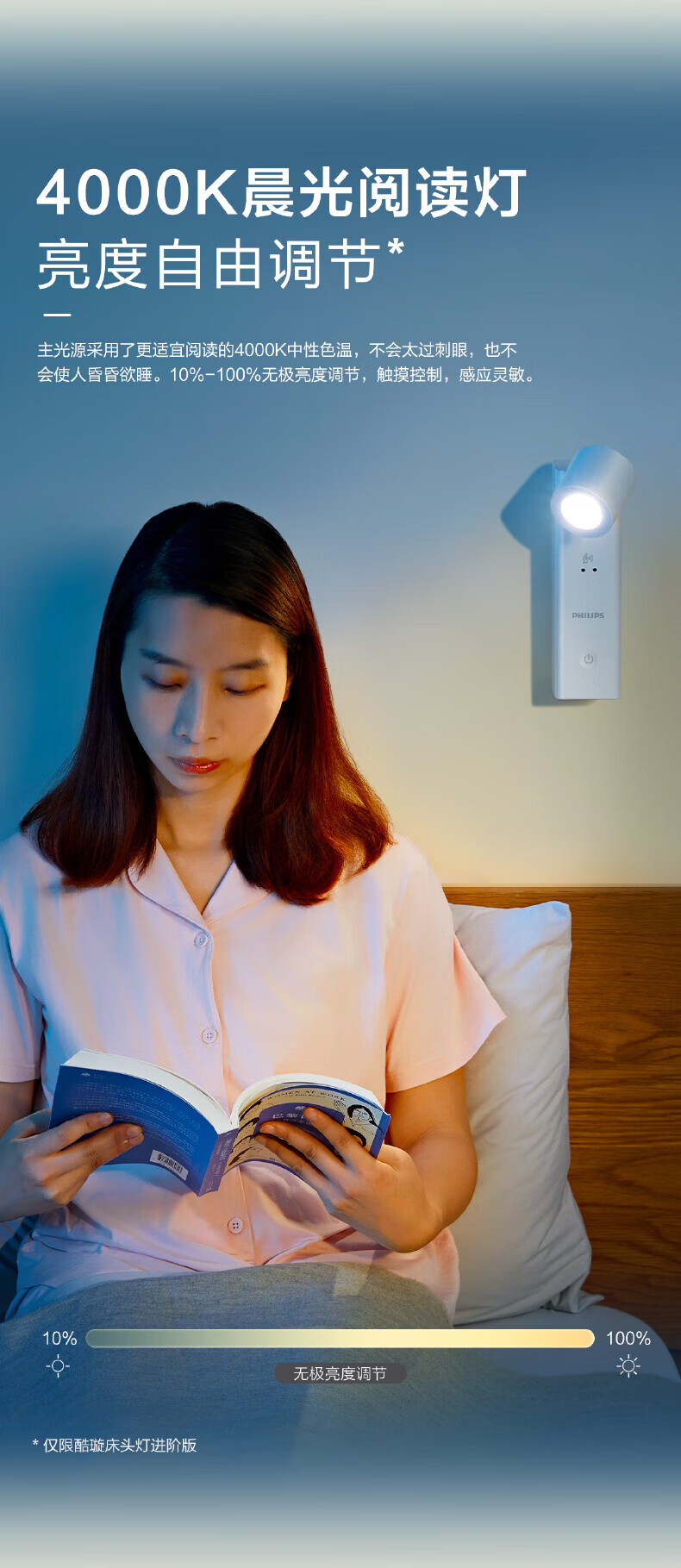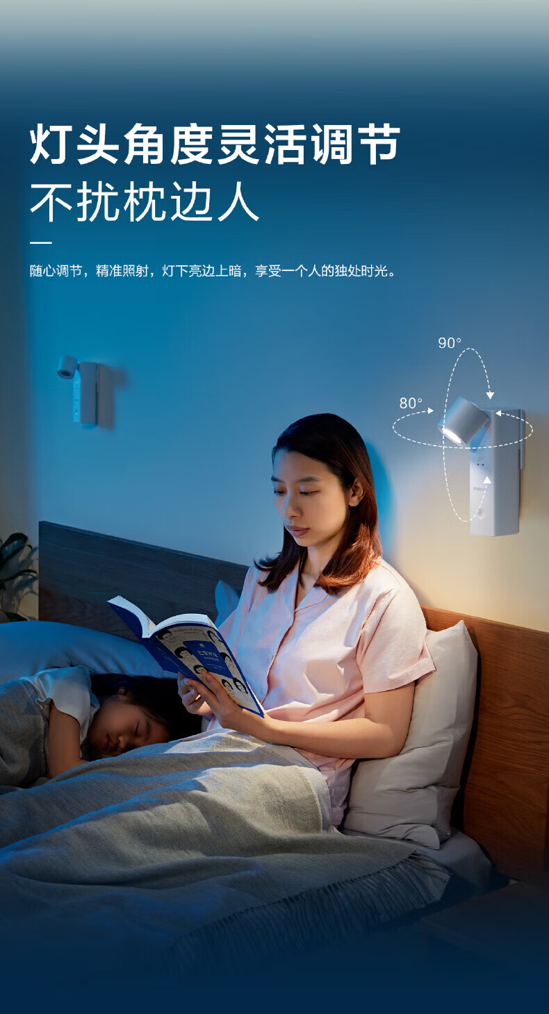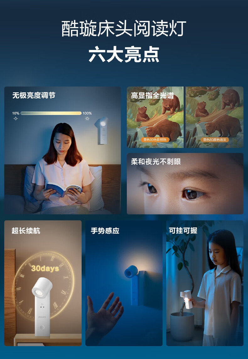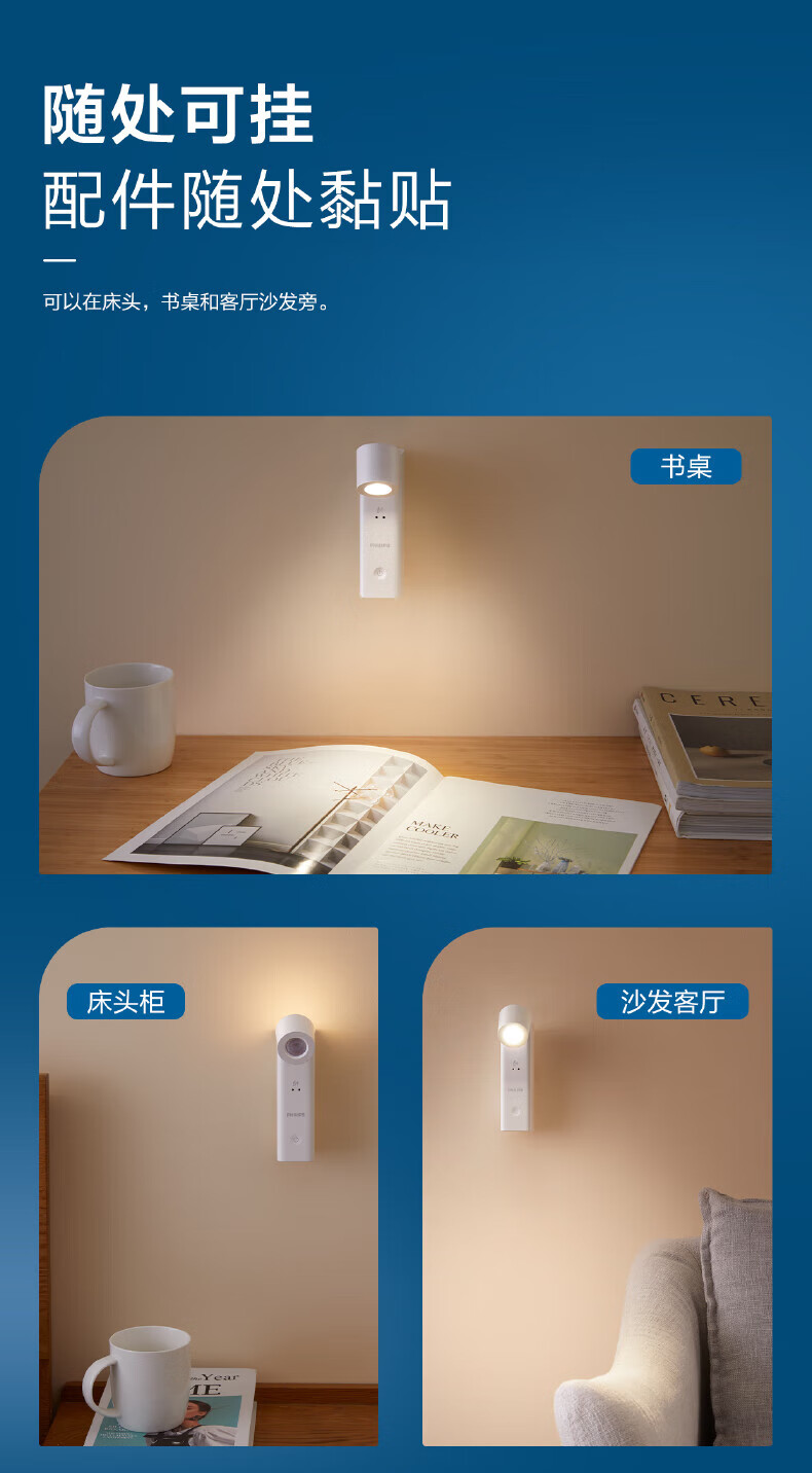 Philips (PHILIPS) full spectrum bedside lamp reading night light portable charging induction touch ultra-long battery life basic version 1200 mAh touch switch