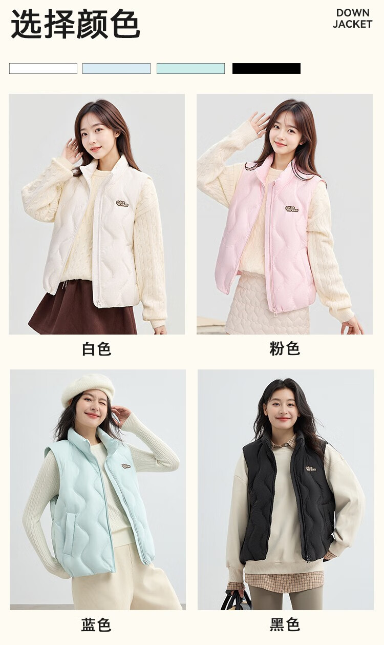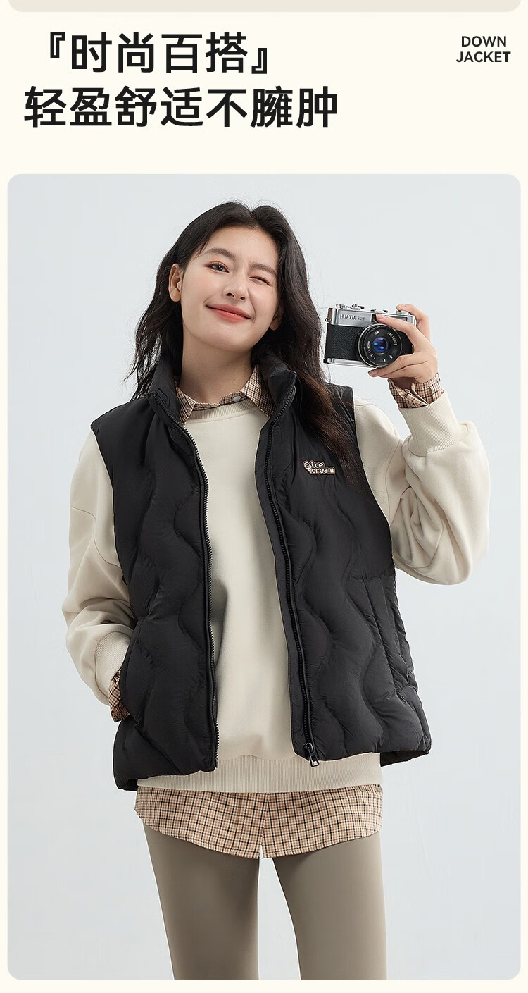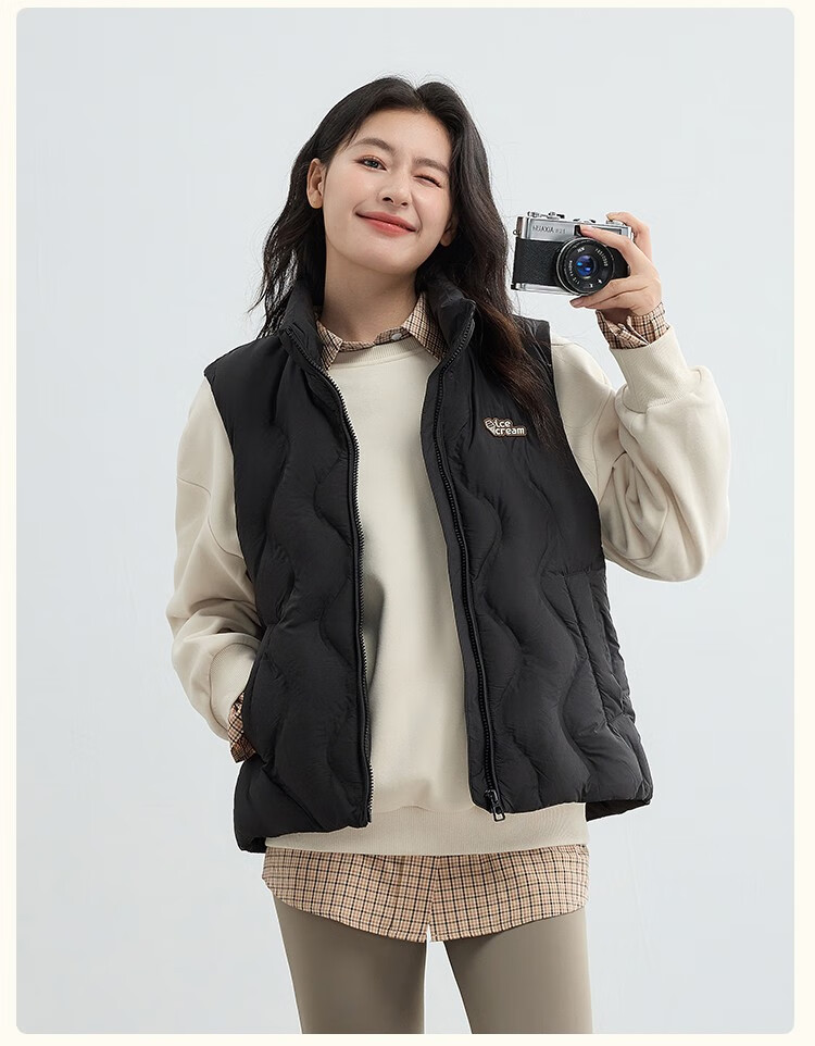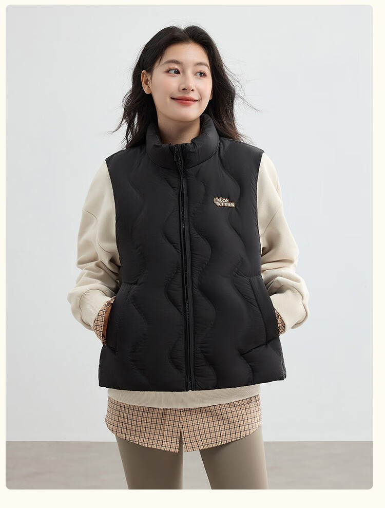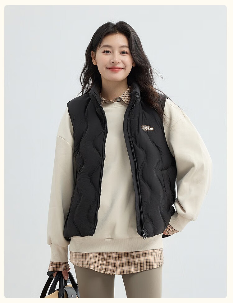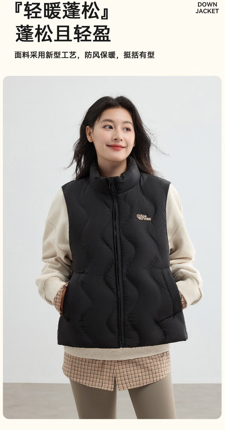 YAYA Down Vest Women's 2025 New Fashion Stand Collar Korean Style Casual Warm Vest Can Be Weared Outside Black L