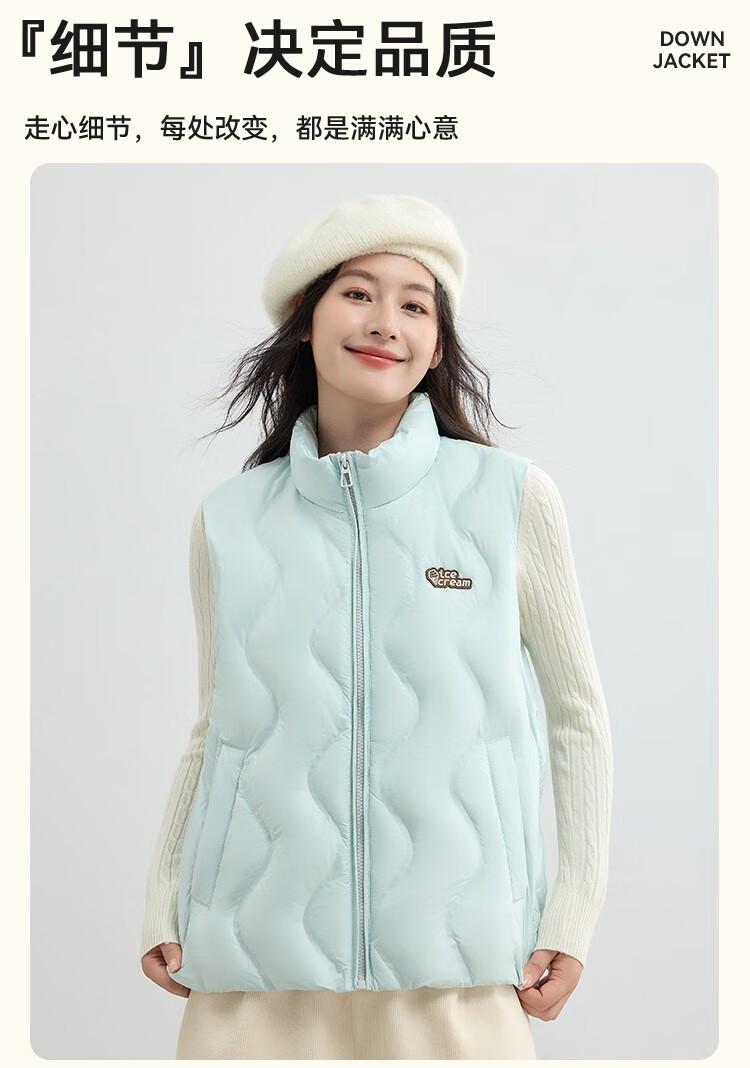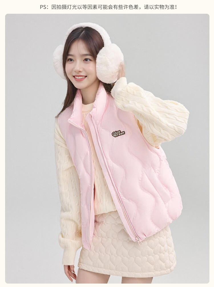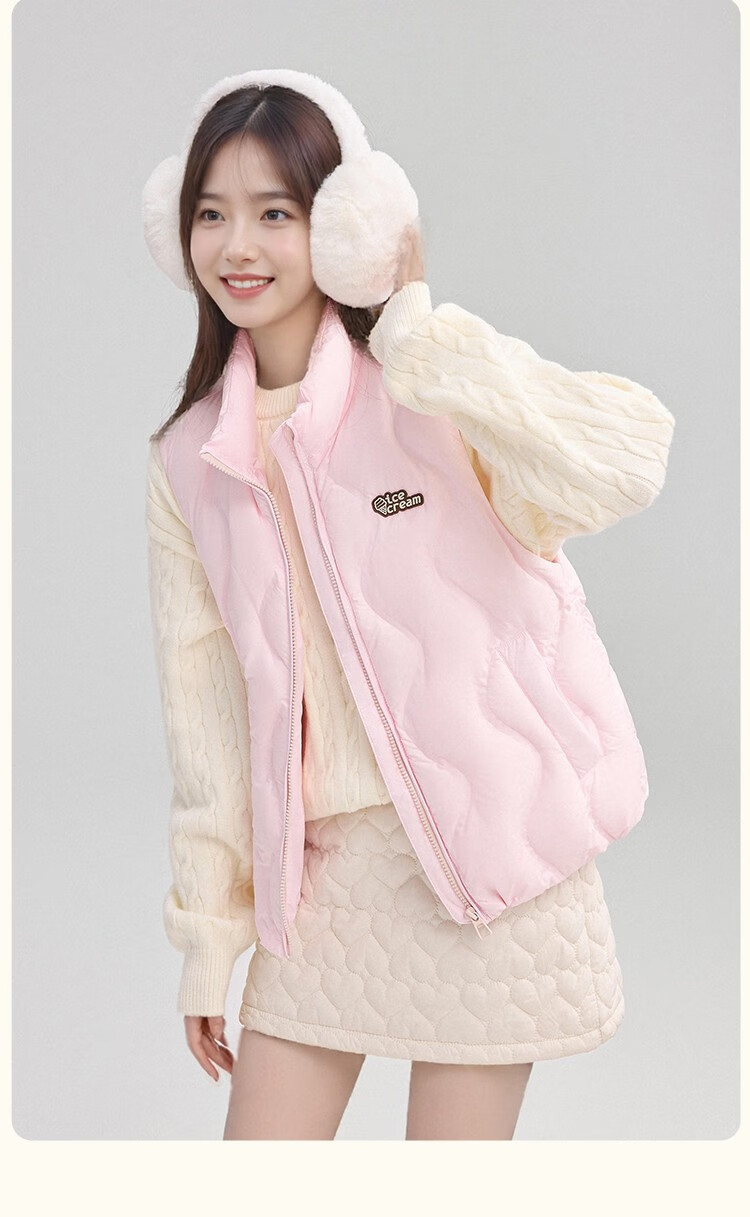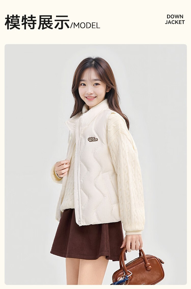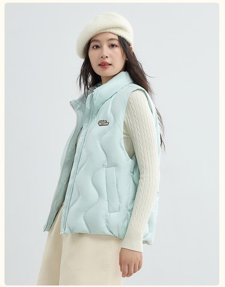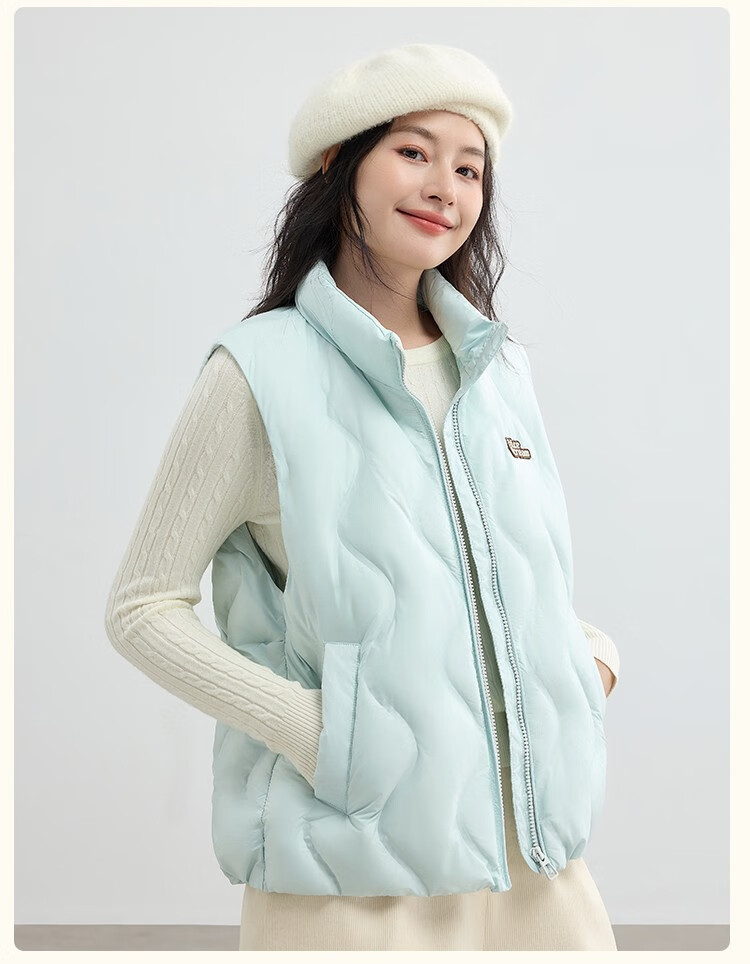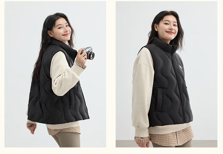 YAYA Down Vest Women's 2025 New Fashion Stand Collar Korean Style Casual Warm Vest Can Be Weared Outside Black L