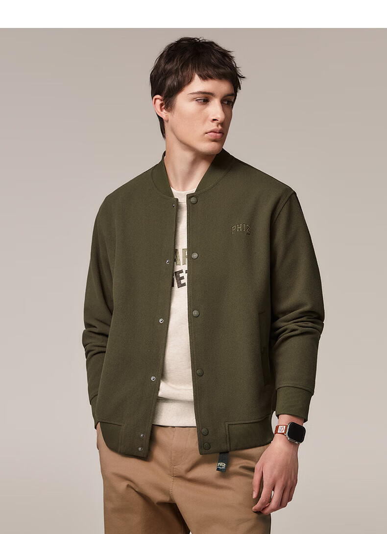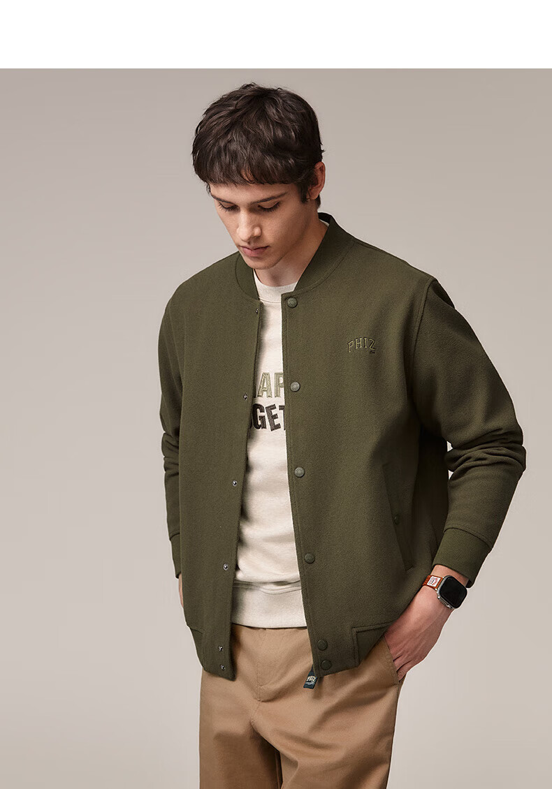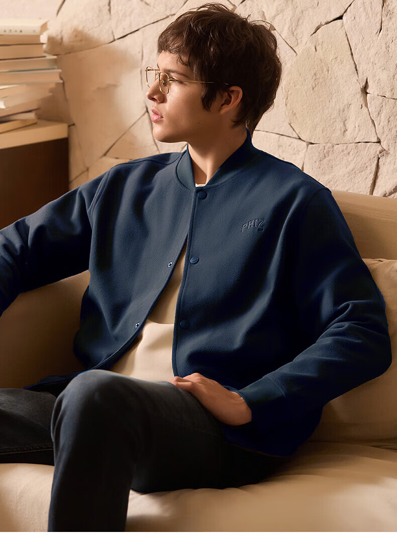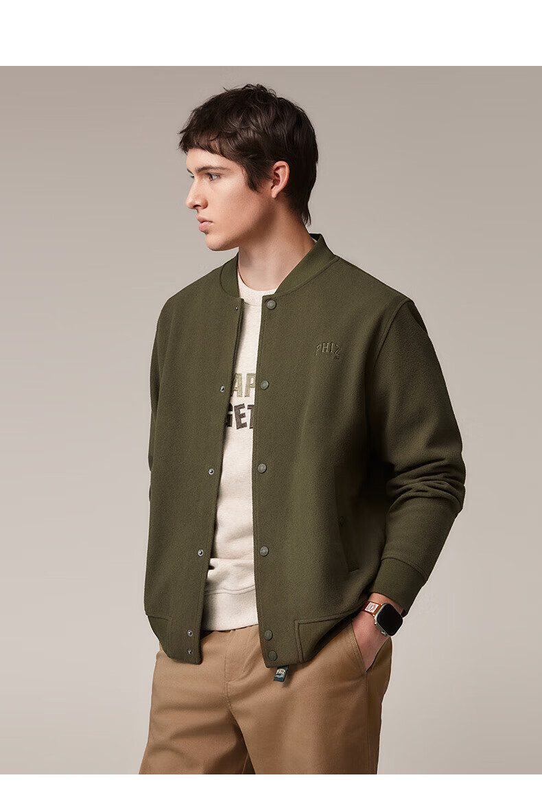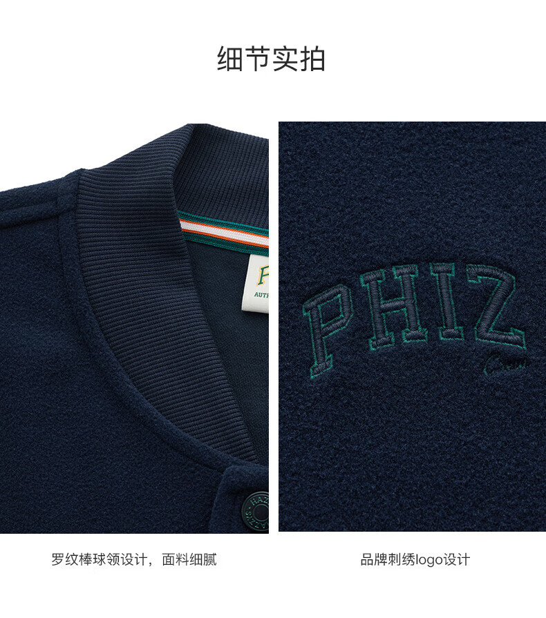 HAZZYS Men's Autumn and Winter Polar Fleece Loose Jacket PHIZ Series Baseball Collar MA-1 Jacket
