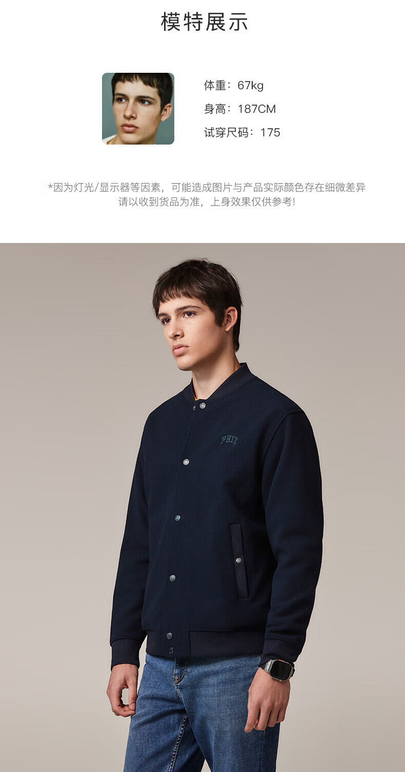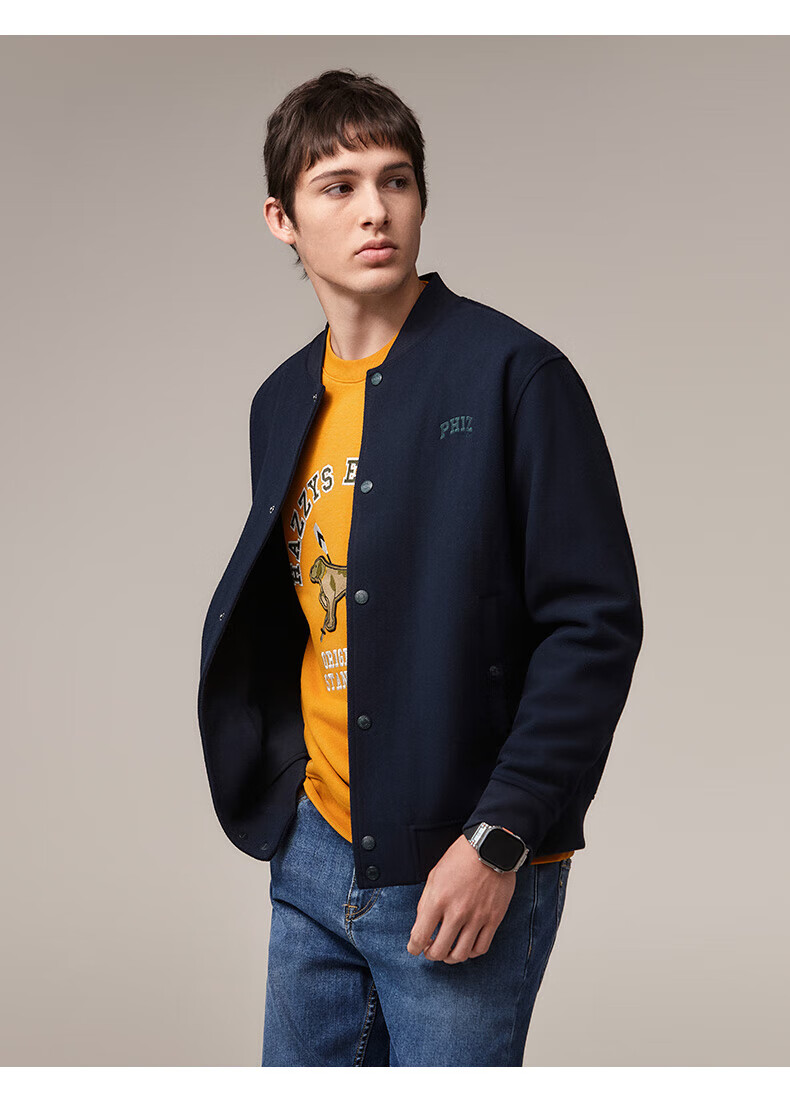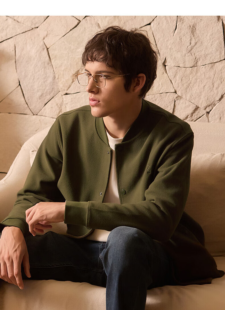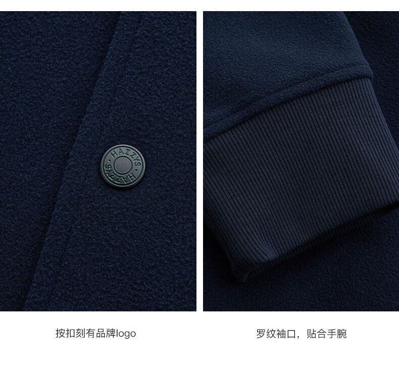 HAZZYS Men's Autumn and Winter Polar Fleece Loose Jacket PHIZ Series Baseball Collar MA-1 Jacket