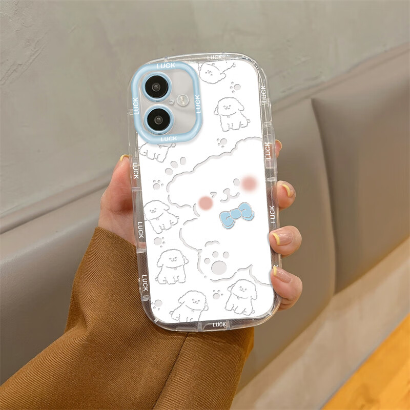 Jiang Ming is suitable for Apple 17 mobile phone case, lens, all-inclusive iphone17 protective cover, high-end anti-fall airbag, Internet celebrity creative cartoon men and women protection soft shell line puppy with lanyard