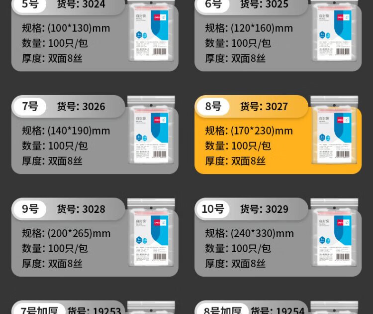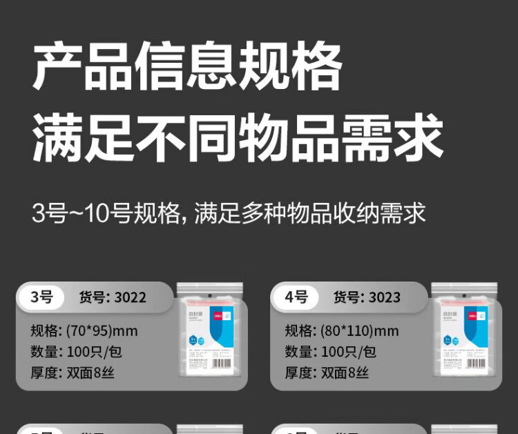 Deli food ziplock bag No. 8 17*23 thick transparent mobile phone mask sample seal bag packaging seal bag plastic bag 3027