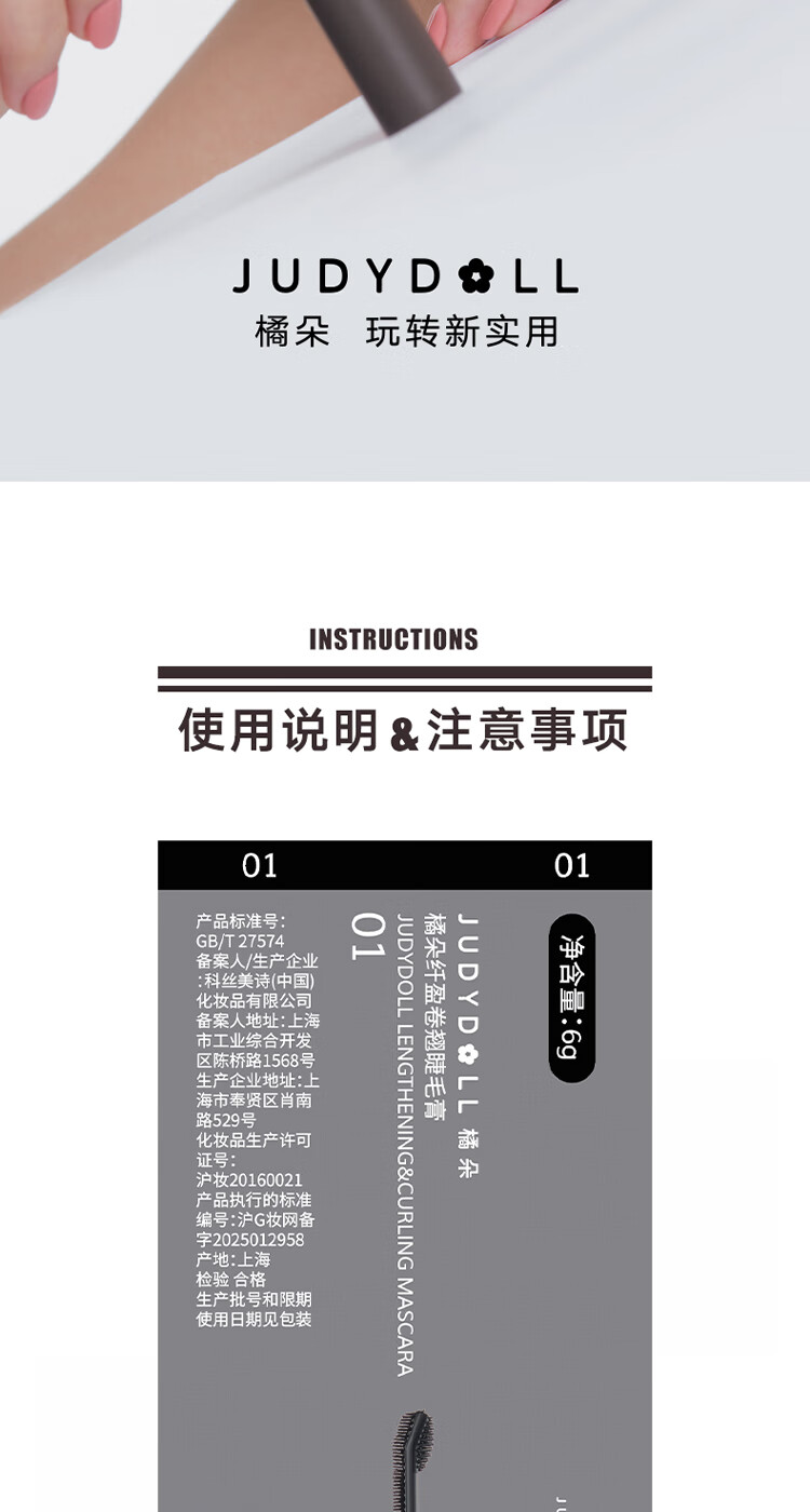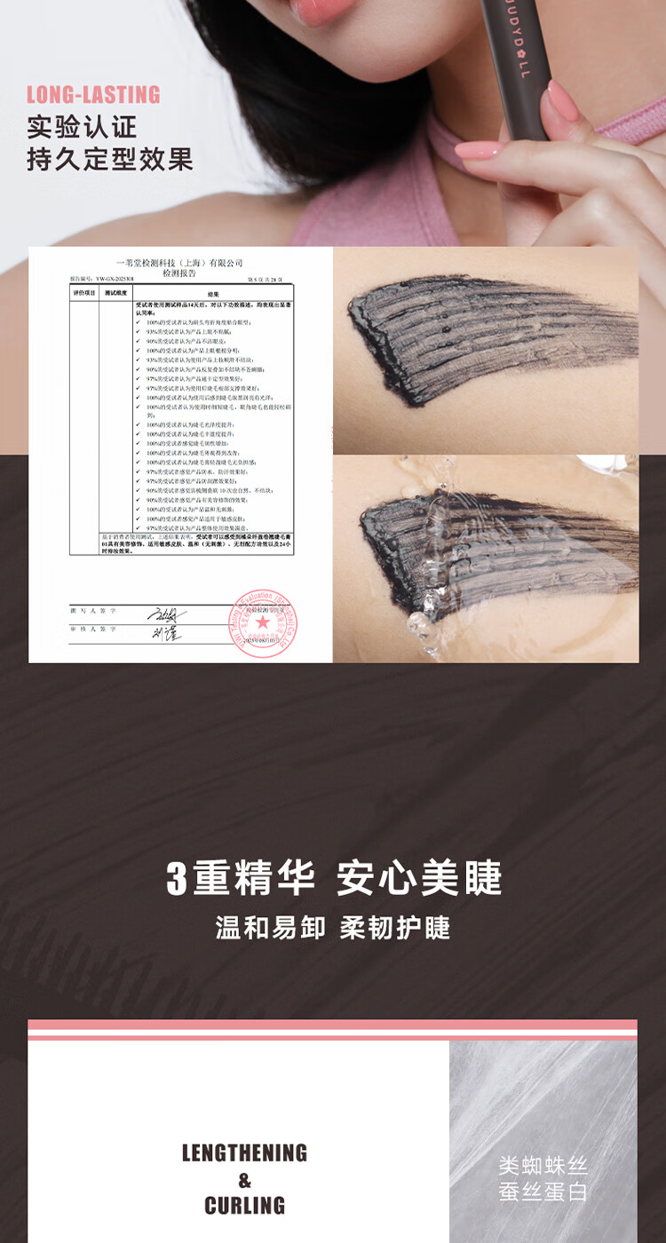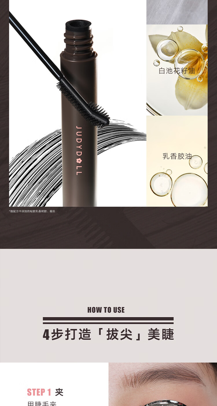 Judydoll slim curling mascara, long, quick-drying, long-lasting, silicone brush head, anti-sickness, New Year's gift #Black