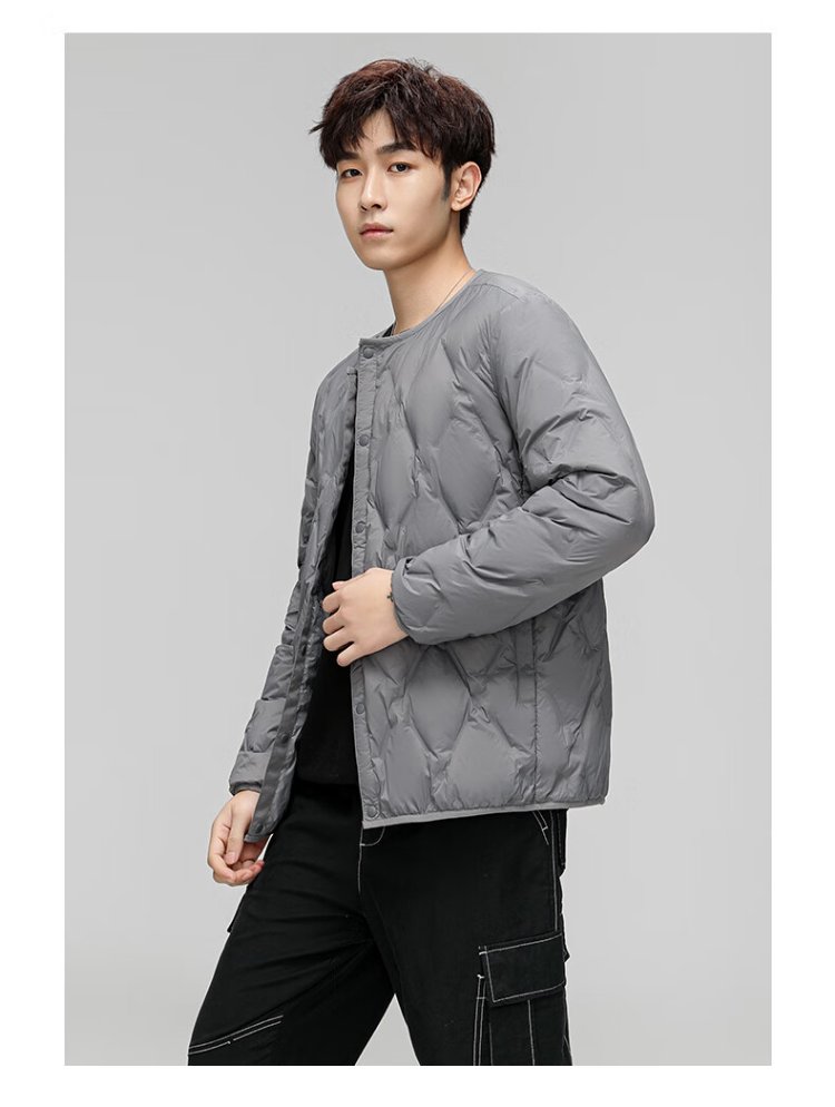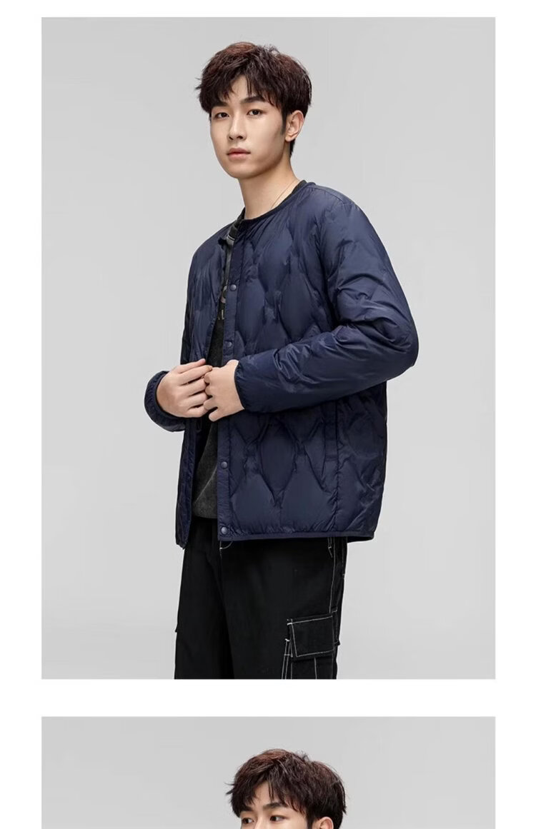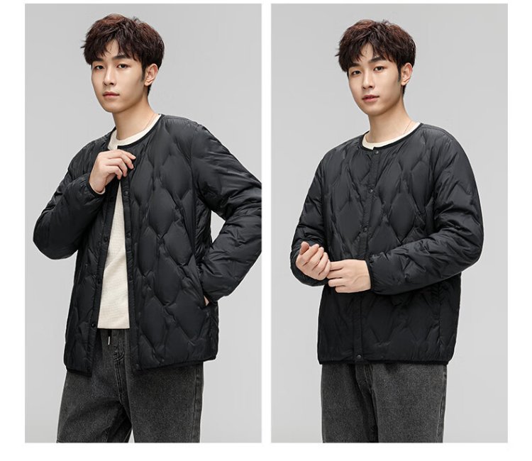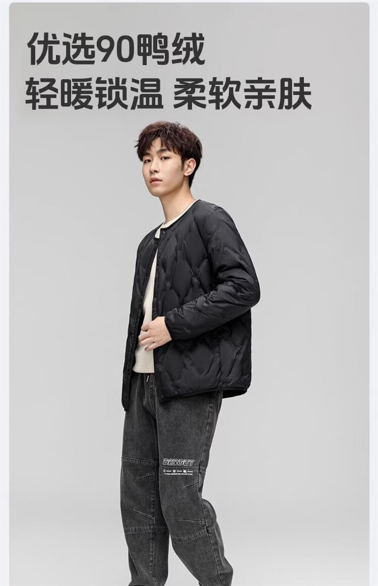 HY&CO light down jacket men's short autumn and winter loose simple round neck ultra-thin liner duck down warm jacket L black