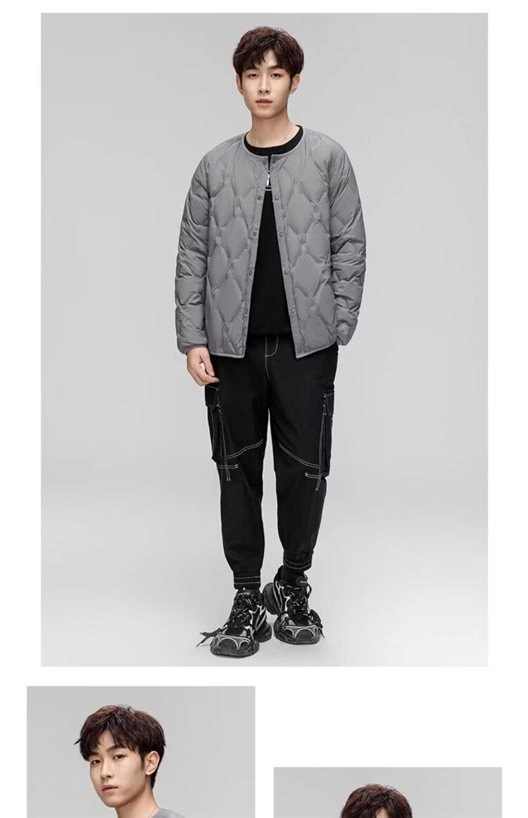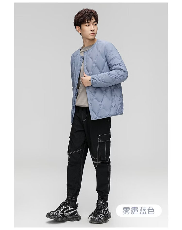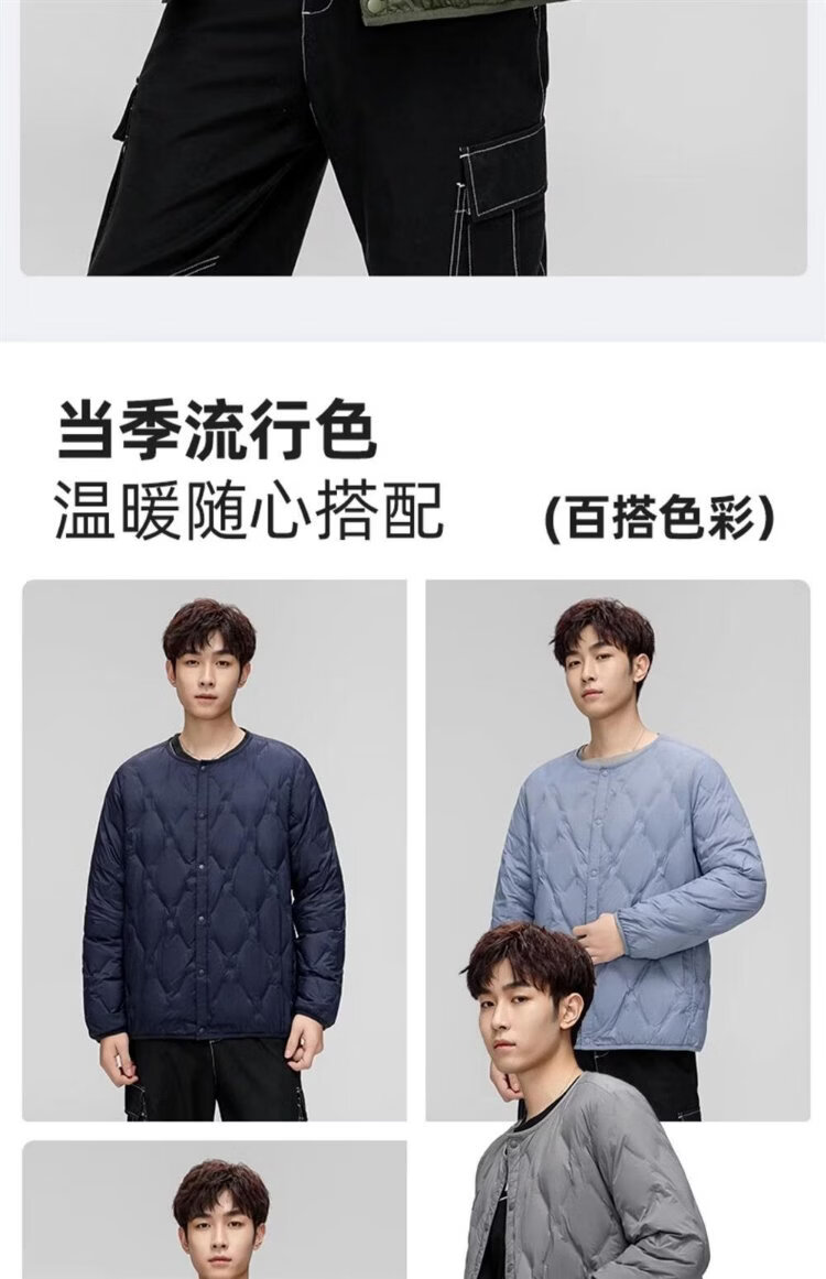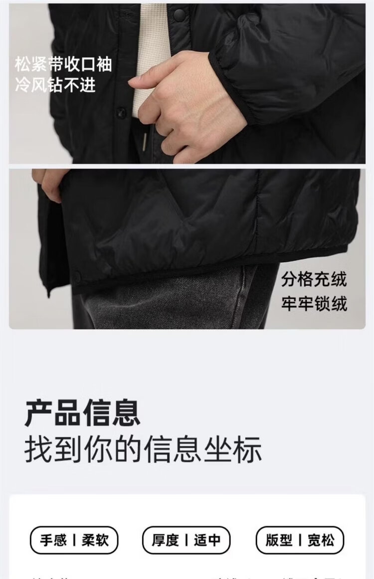 HY&CO light down jacket men's short autumn and winter loose simple round neck ultra-thin liner duck down warm jacket L black