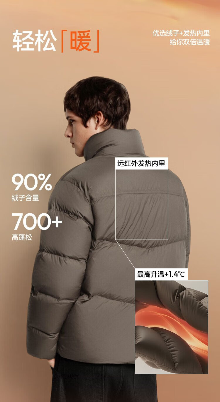 Semir Easy | Down Jacket Men's Winter 90 Down Fleece Heating Three-Proof Jacket 2025 Couple Stand Collar 109725113201