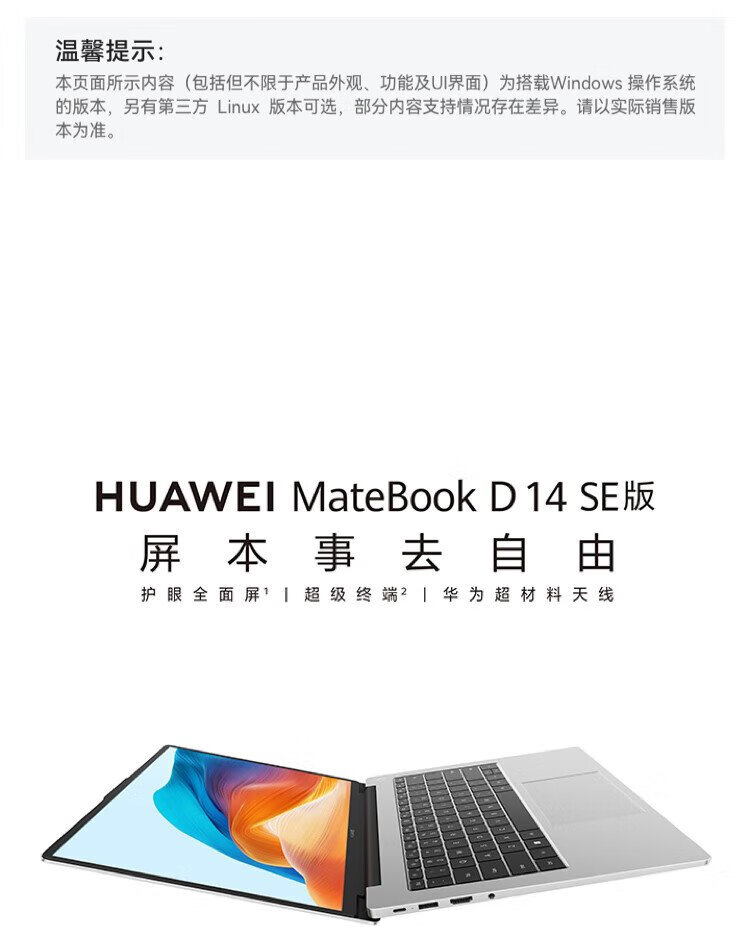 90% new Huawei MateBook D 14 SE Linux version, 20% national subsidy, thin and light laptop 12th generation Core processor i5 16G 512G Haoyue Silver