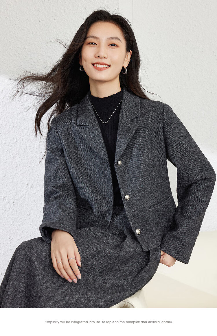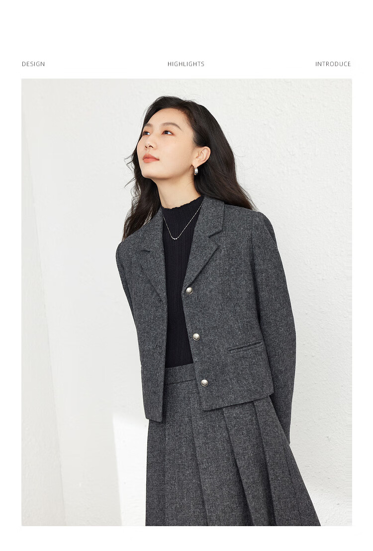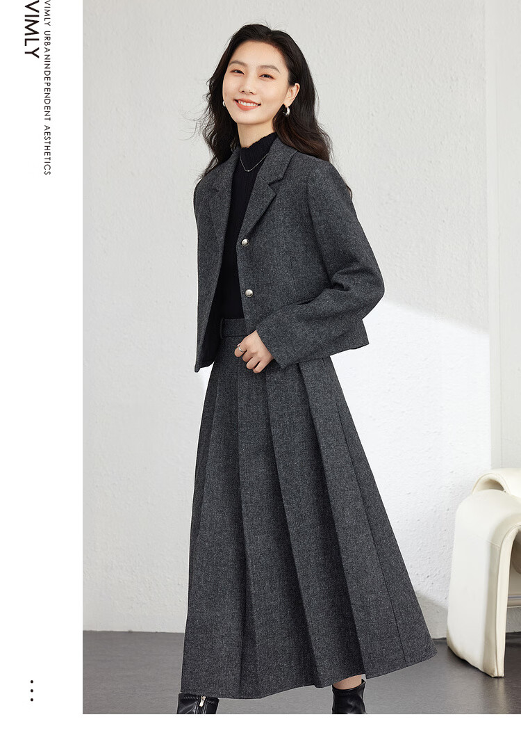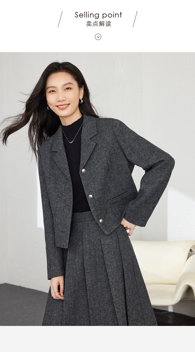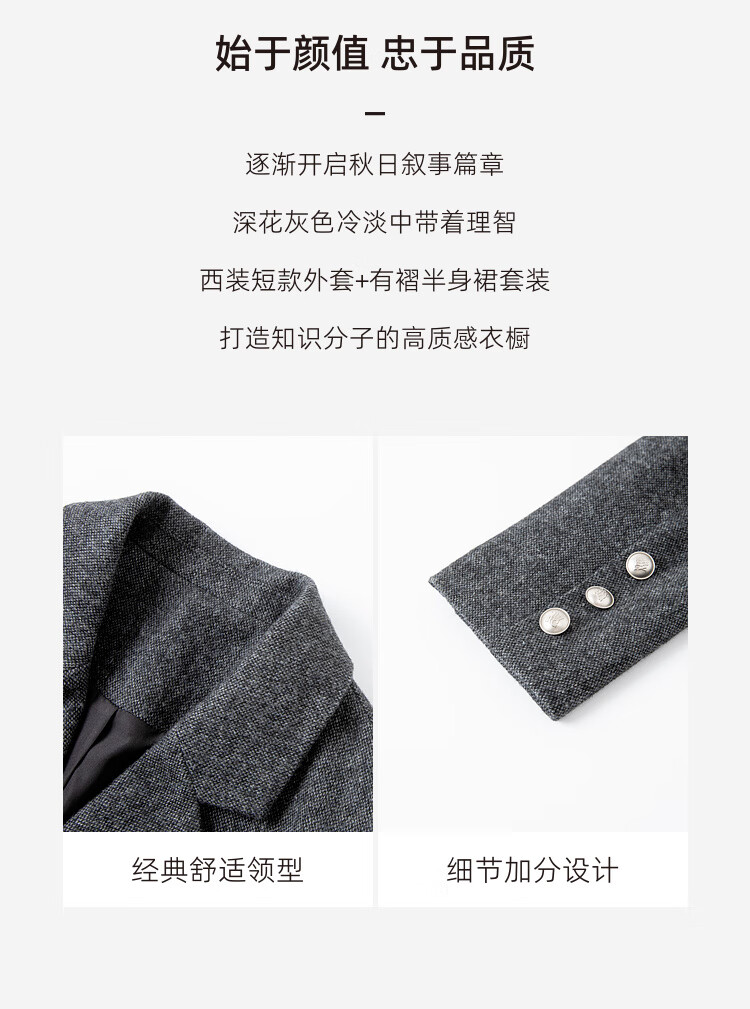 Fanciman wool suit suit for women autumn and winter new high-end light luxury wool suit dark floral gray XL
