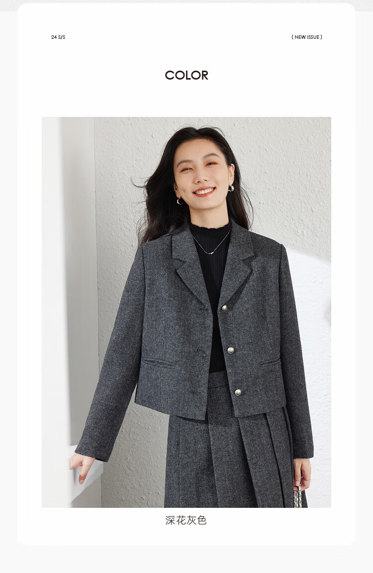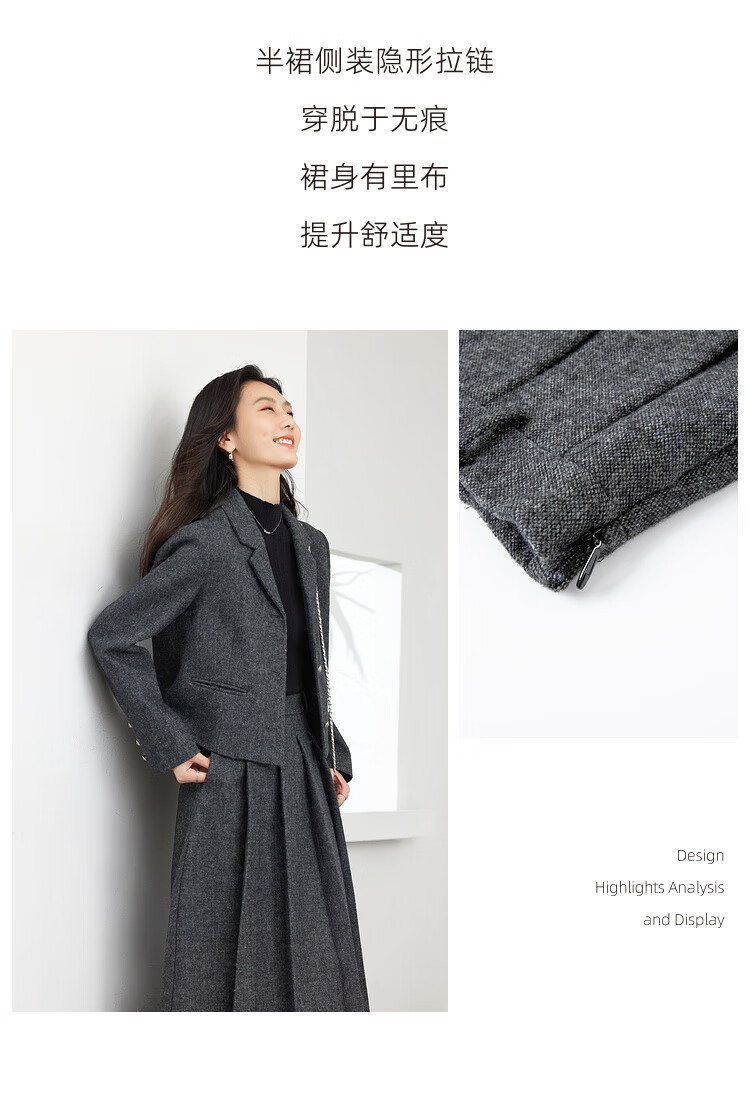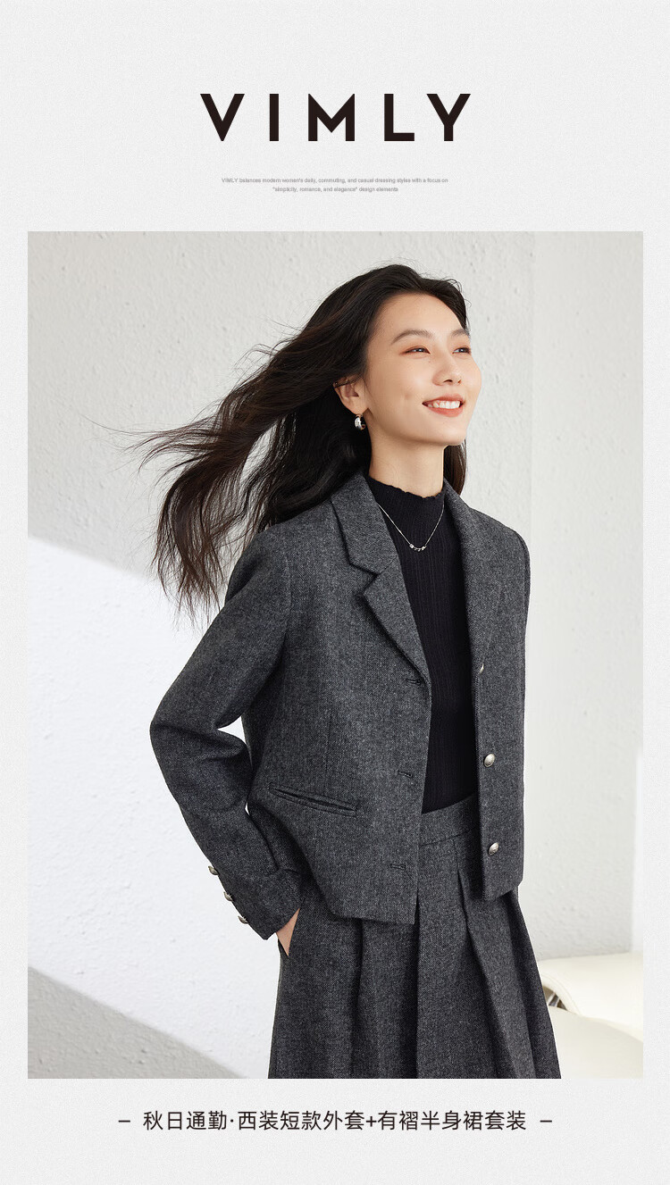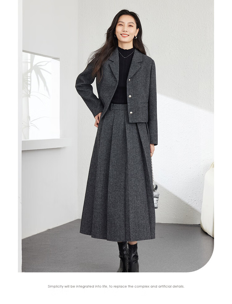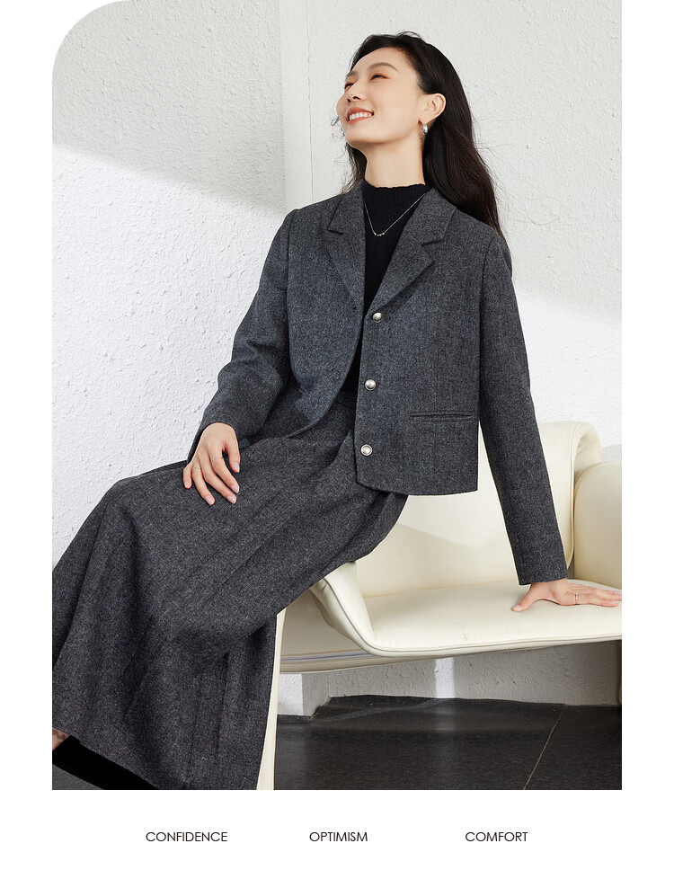 Fanciman wool suit suit for women autumn and winter new high-end light luxury wool suit dark floral gray XL