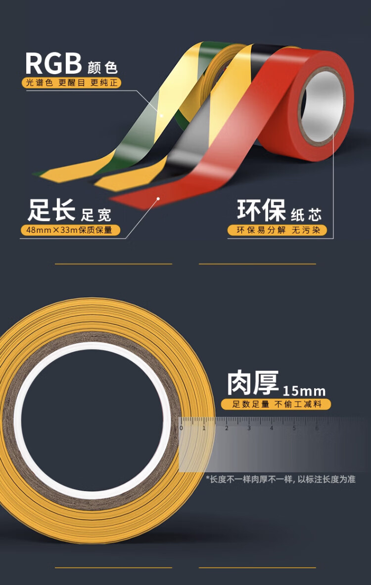 Hudun red tape PVC warning tape identification safety line zebra crossing warning tape isolation tape ground protective film tape workshop marking wear-resistant floor tape 60mm*33 meters R6033
