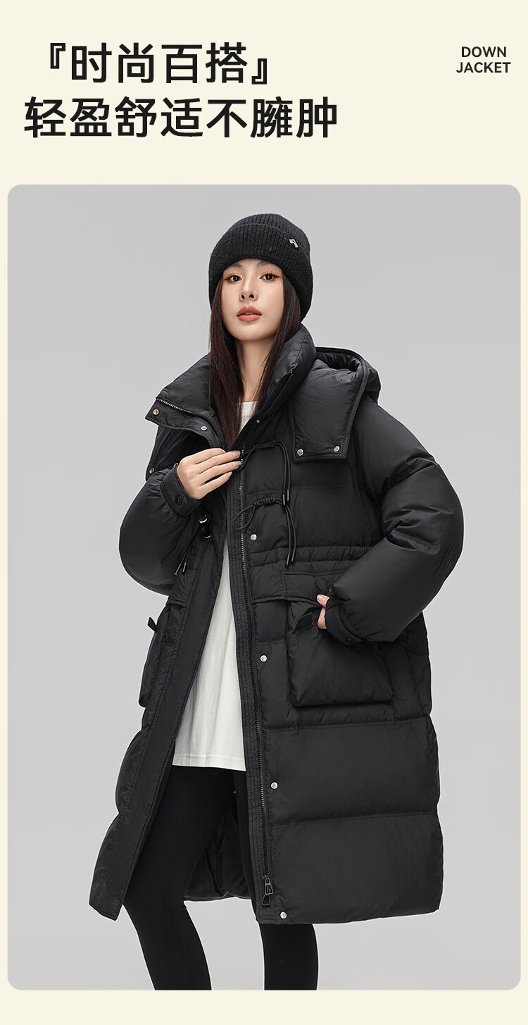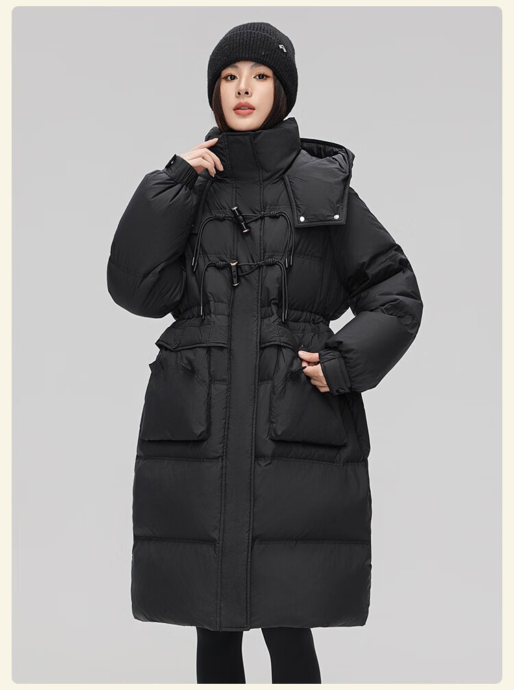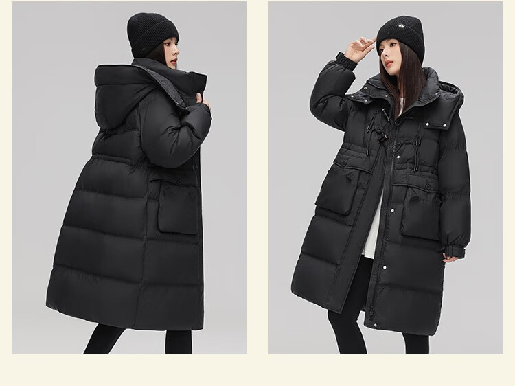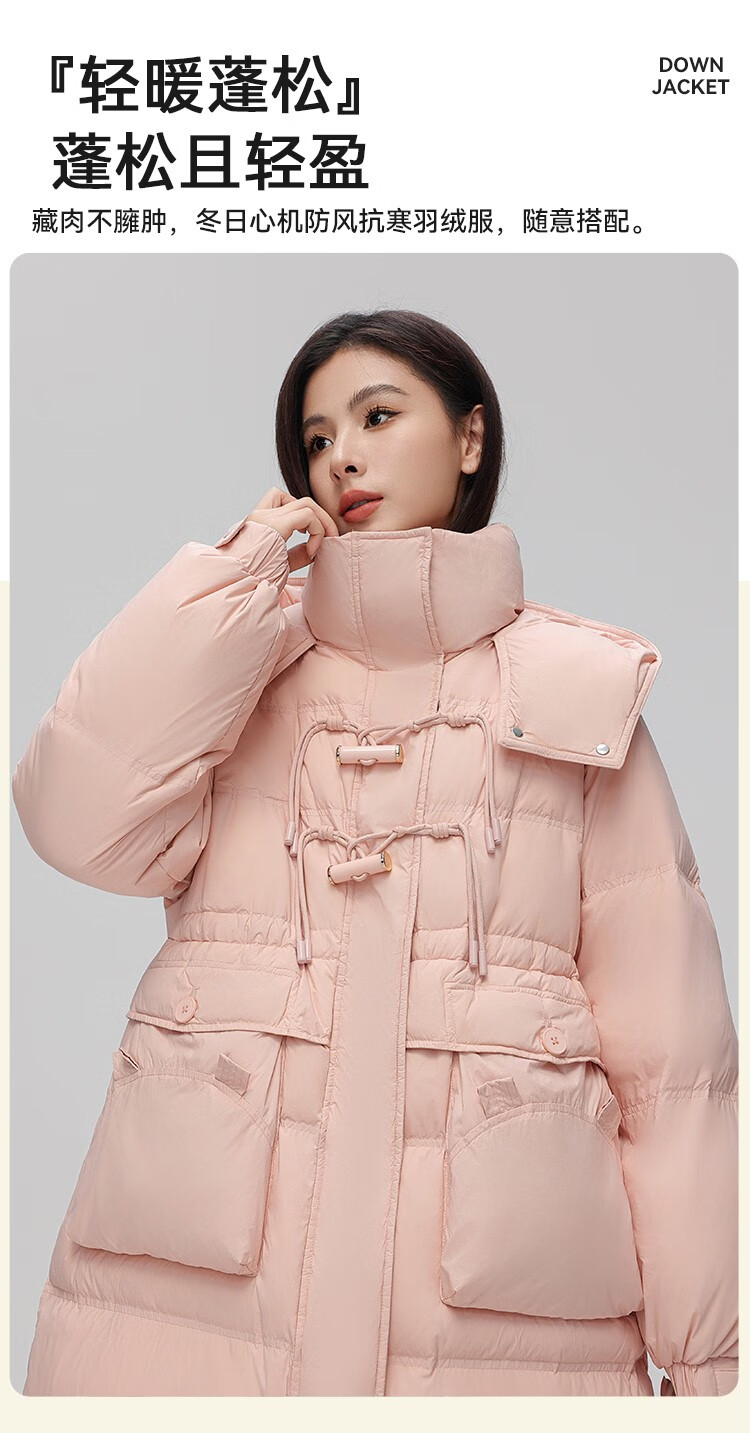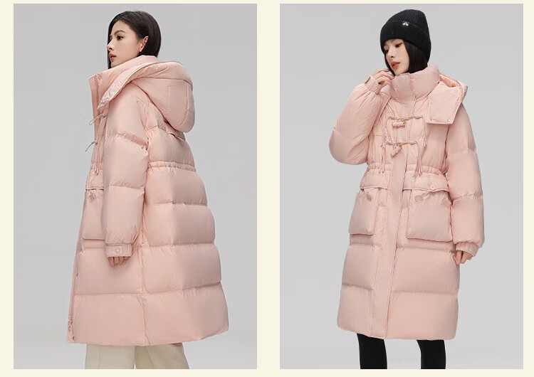 YAYA Down Jacket Women's Pink 2025 Winter New Hooded Mid-Length Extremely Cold Warm Thick Jacket Black M