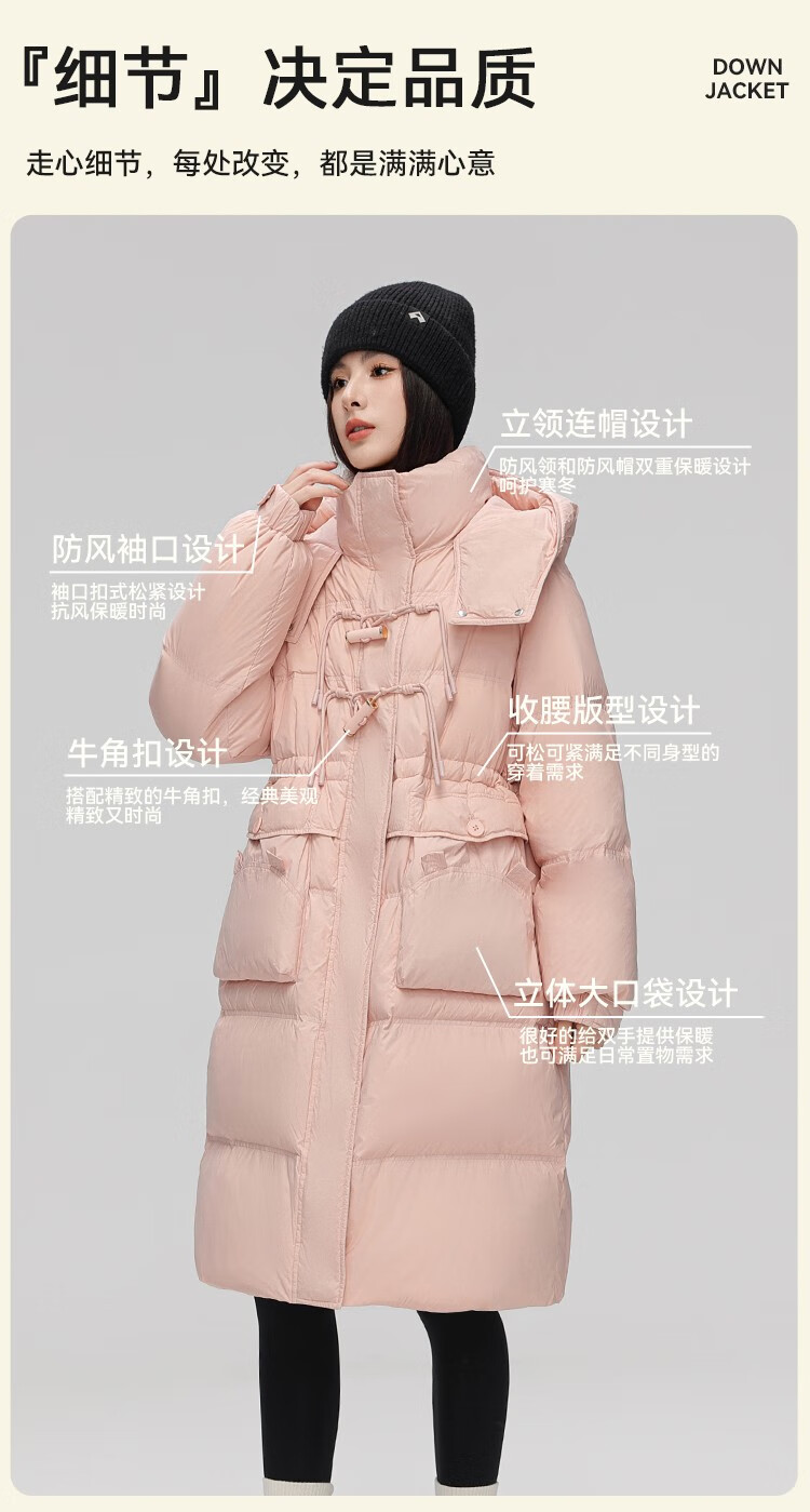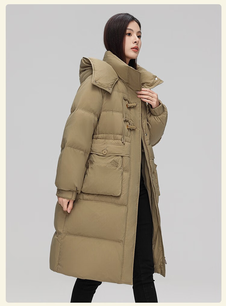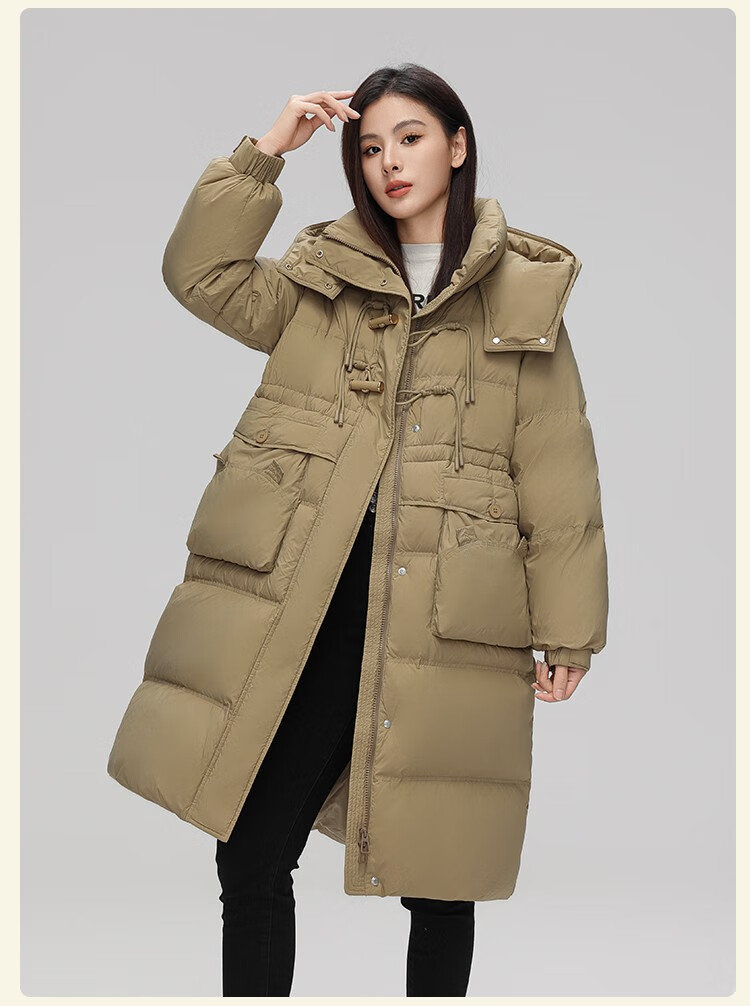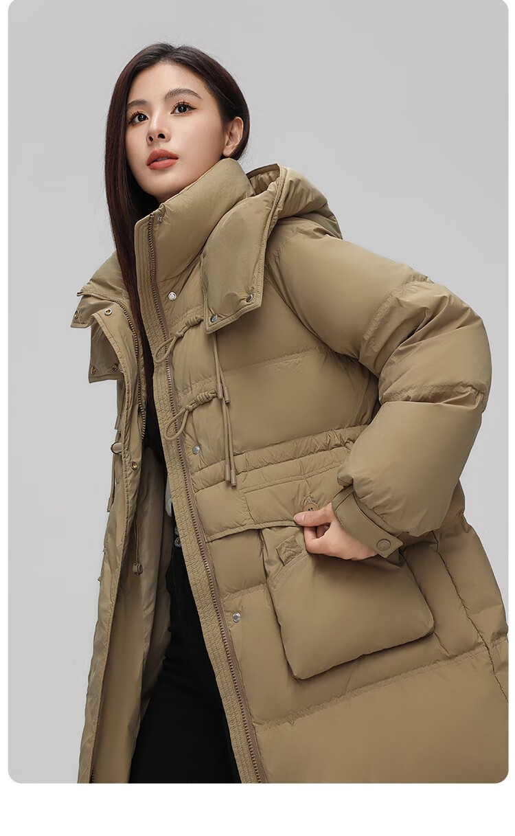 YAYA Down Jacket Women's Pink 2025 Winter New Hooded Mid-Length Extremely Cold Warm Thick Jacket Black M