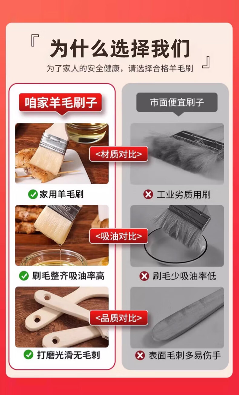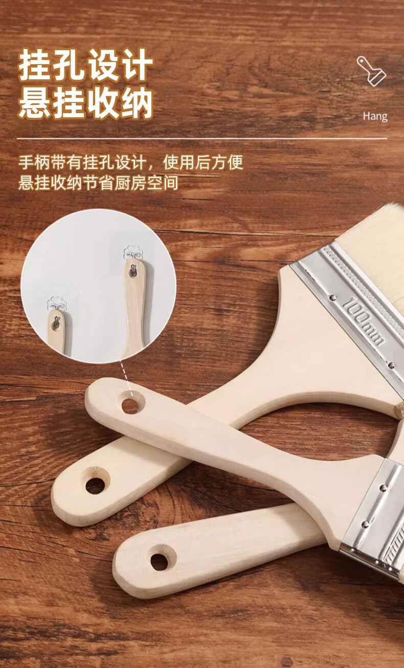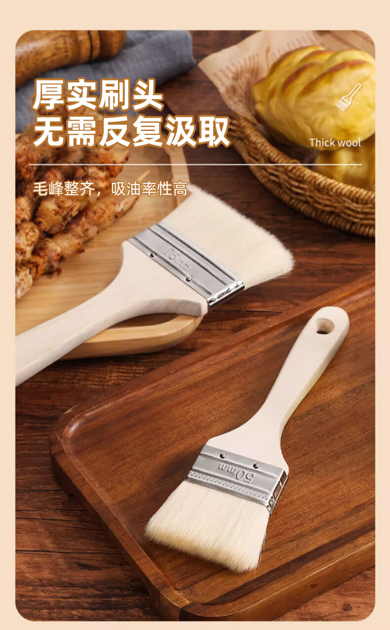 Kelibang Wool Brush Wooden Handle Mixed Bristle Paint Brush Interior Decoration Traceless Paint Latex Paint Brush Barbecue Brush Soft Bristle Cleaning Brush 4 Inches 2 Pack KB3207