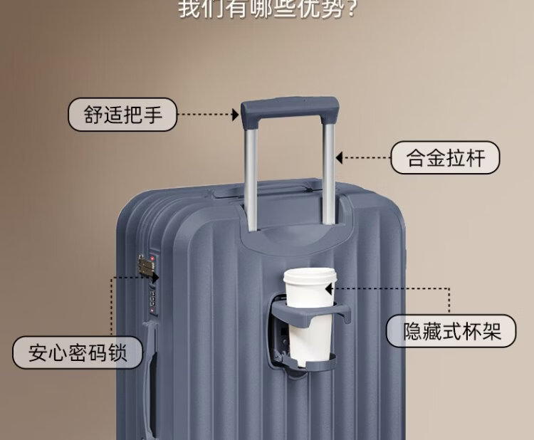 Pull back suitcase women's trolley case with cup holder men's leather case lightweight student password box suitcase 24 inches starry sky gray