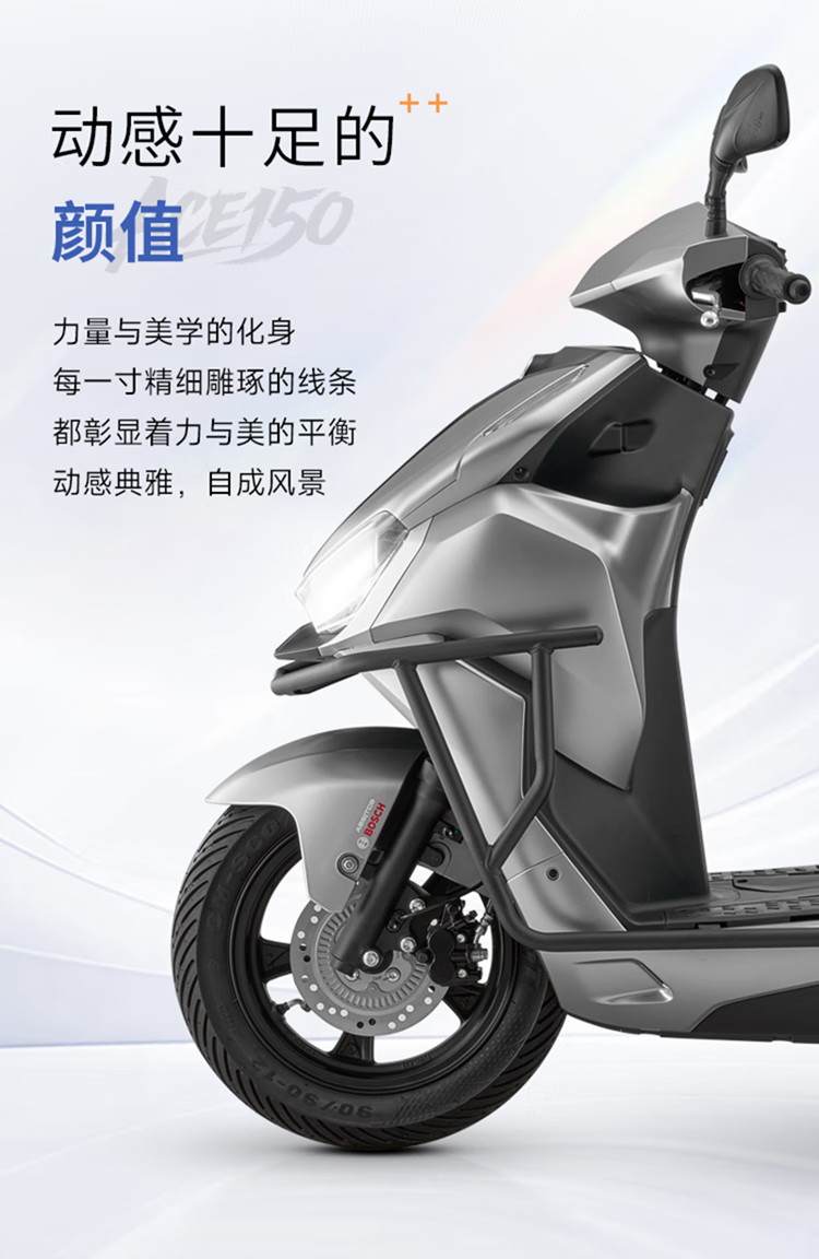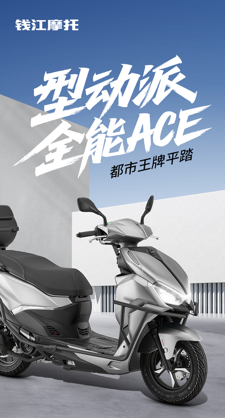 Qianjiang ACE150 fuel scooter commuter smart double disc brake ABS bumper + tail box matte silver gray 25 models